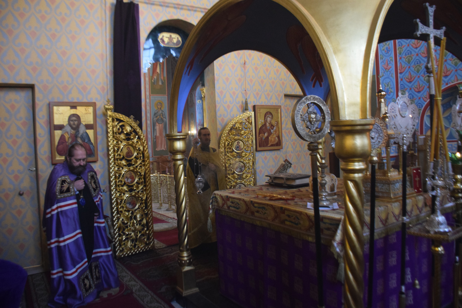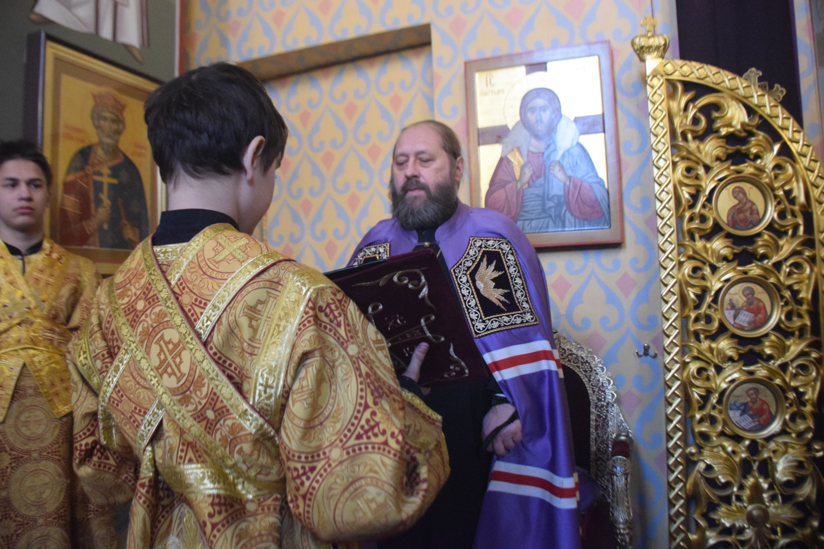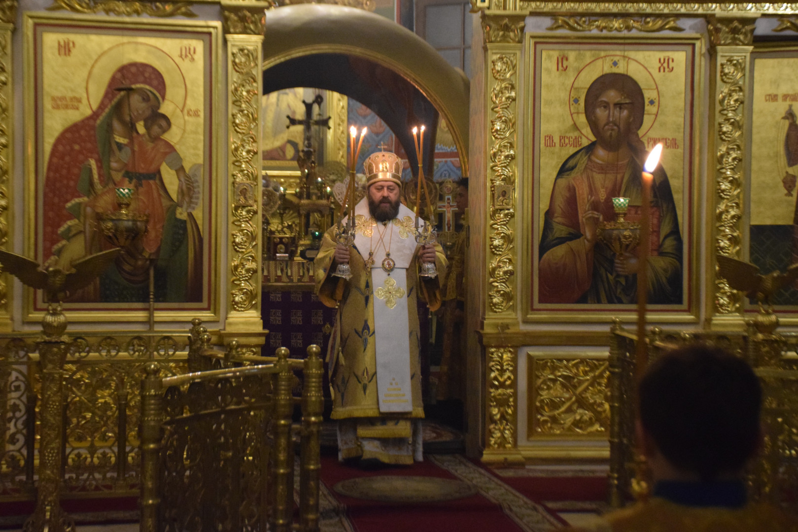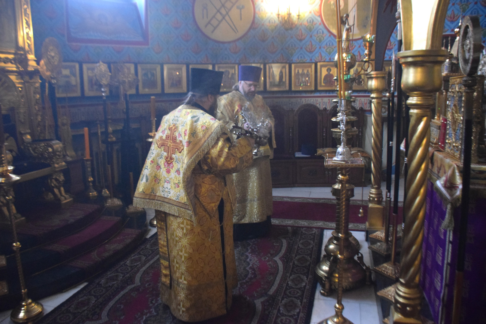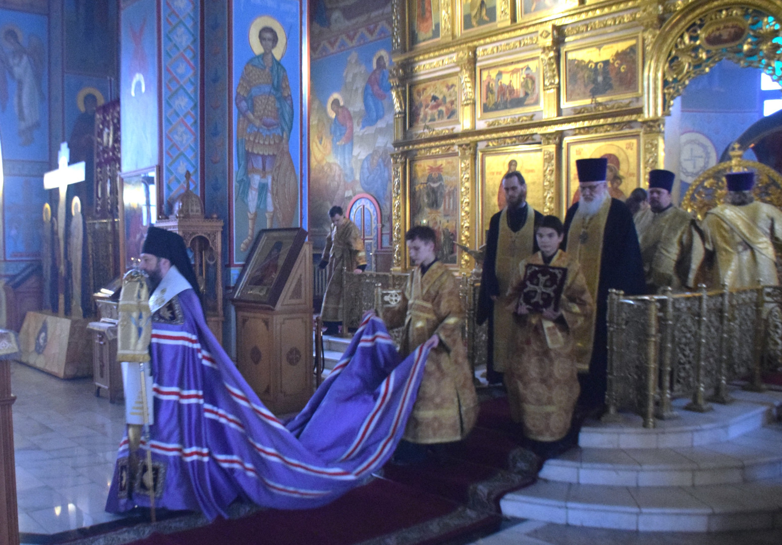 Архипастырю сослужили протоиерей Олег Попов, священники Николай Пугин и Евгений Девятов. Диаконский чин составили протодиакон Андрей Ермаков, диаконы Сергий Симонов, Владислав Бойченко и иеродиакон Нестор (Рыбин). Песнопения Всенощного бдения исполнил архиерейский хор под управлением М. Ермаковой.