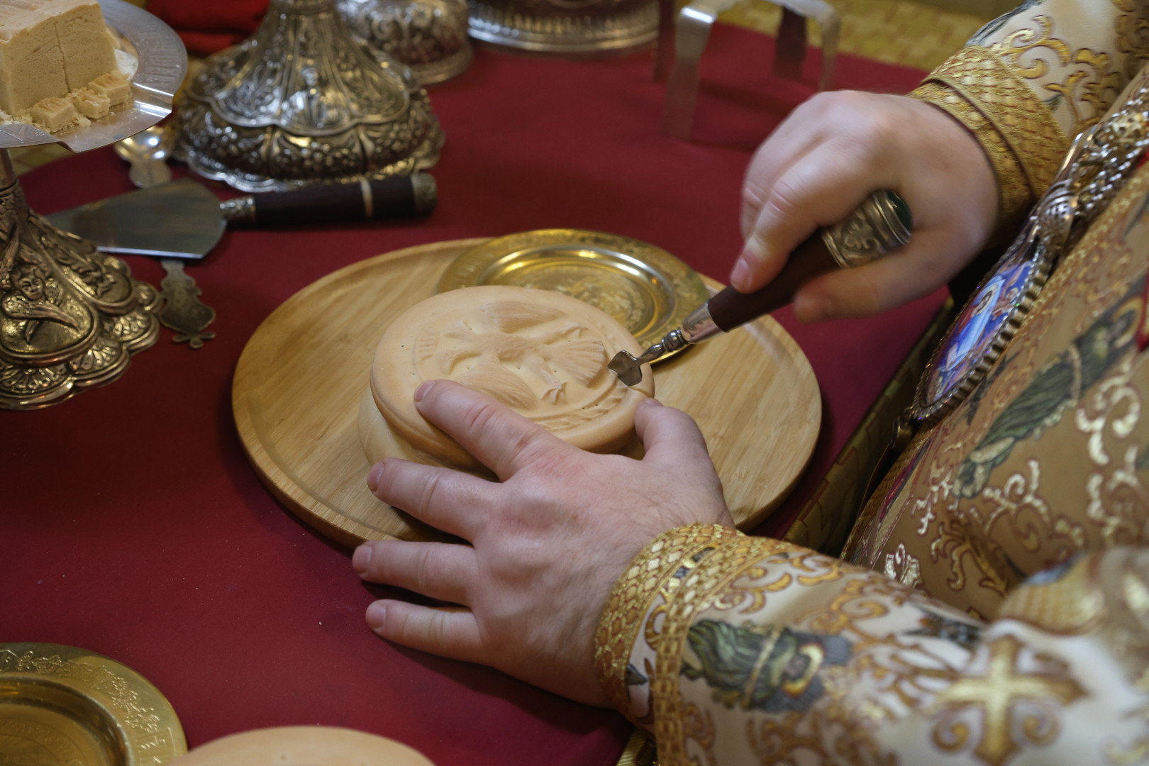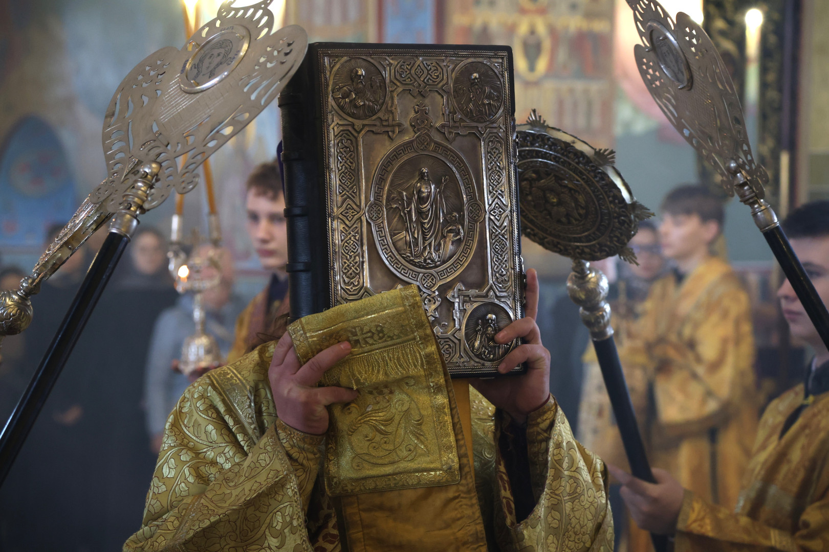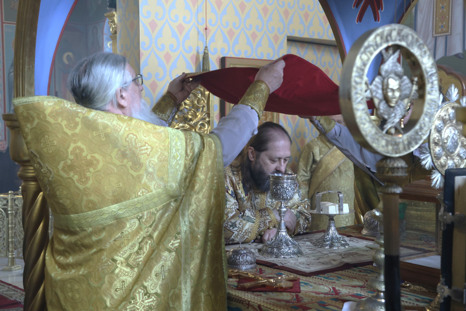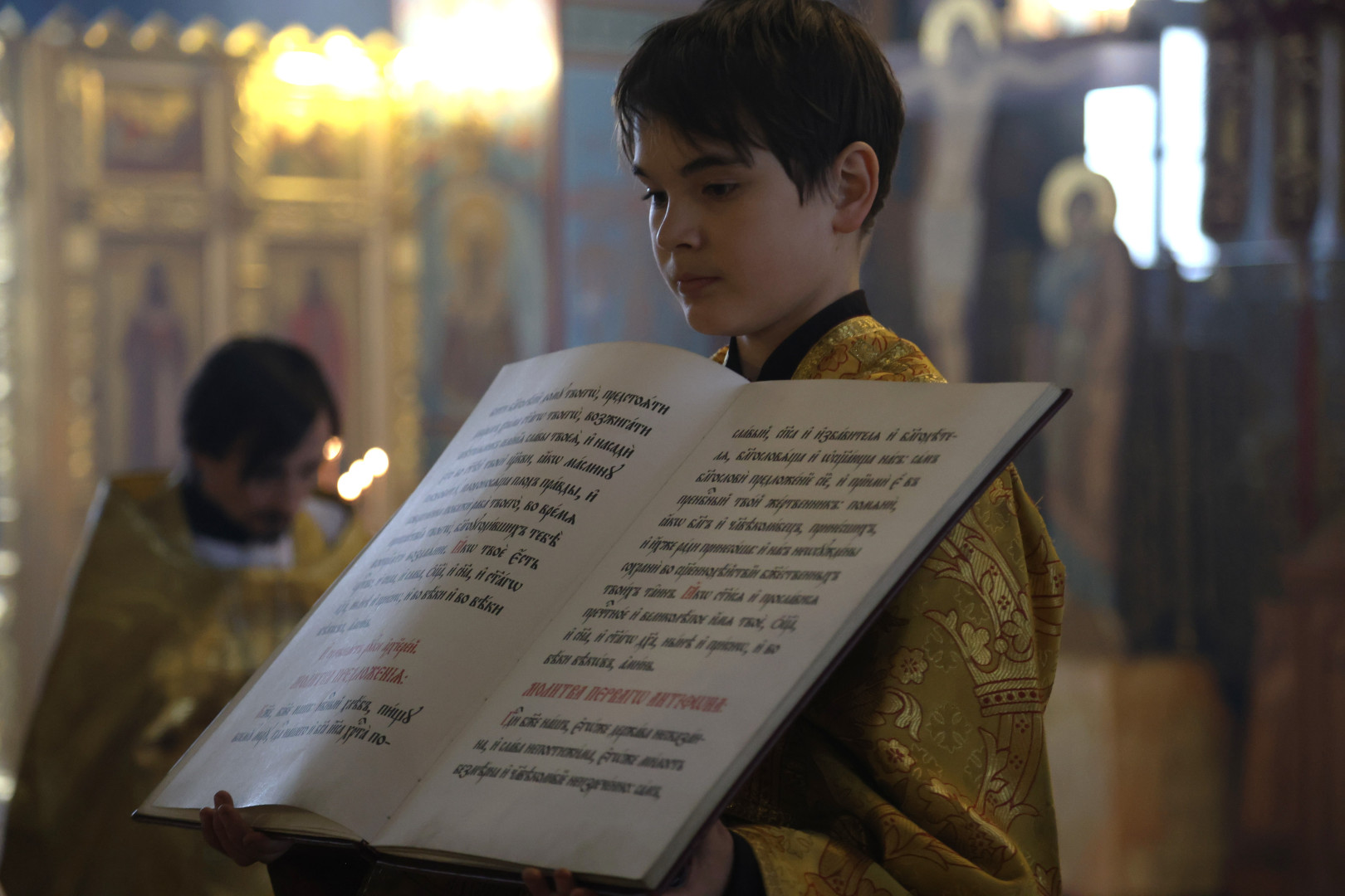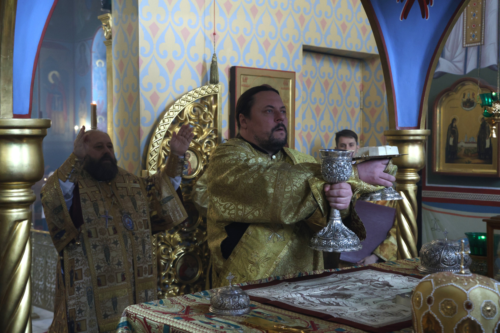 Владыке сослужили протоиерей Олег Попов и священник Евгений Девятов. Диаконский чин составили протодиакон Андрей Ермаков, диаконы Сергий Симонов, Владислав Бойченко Михаил Луцик и иеродиакон Нестор (Рыбин). Богослужебные песнопения исполнил архиерейский хор собора под управлением Марии Ермаковой.