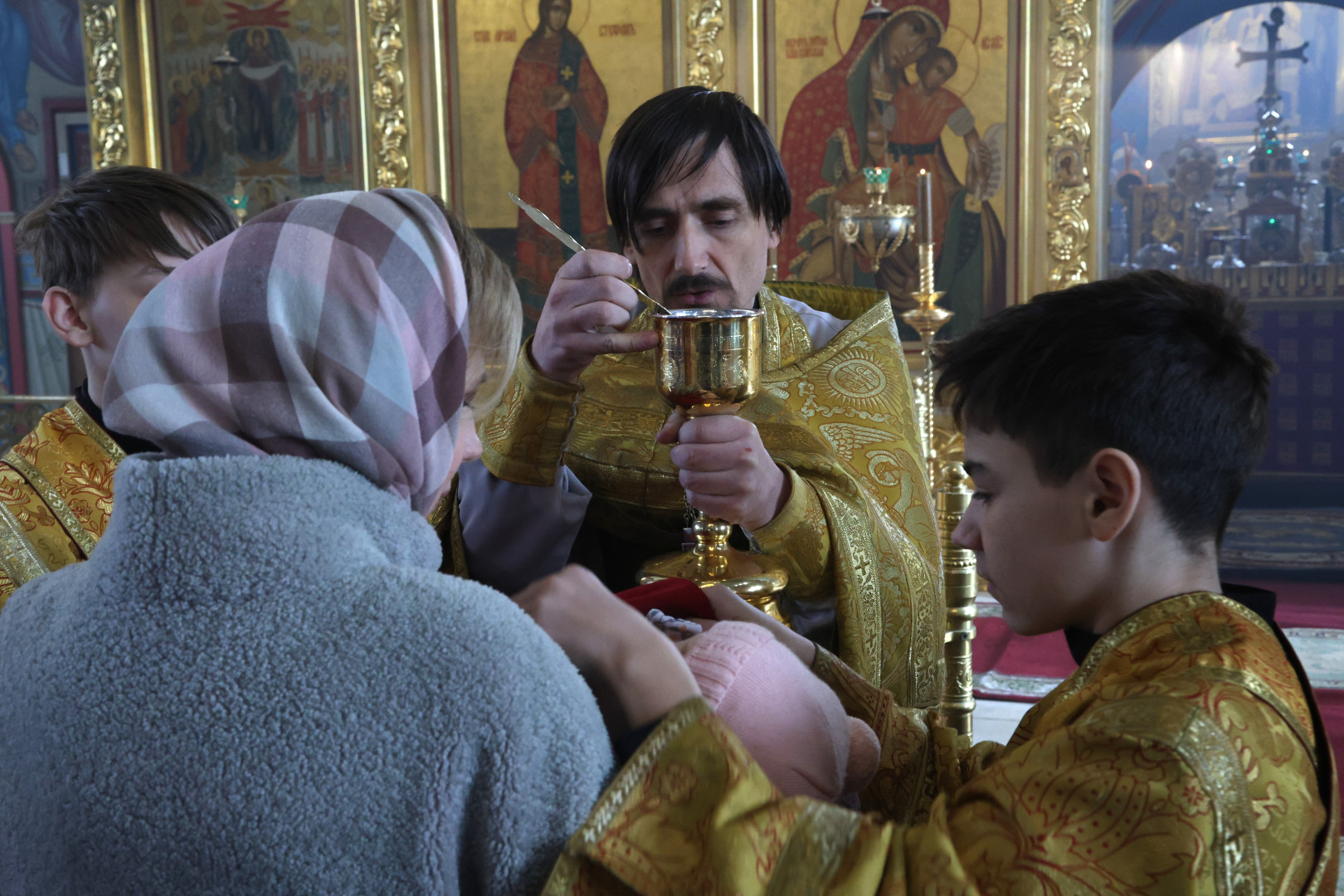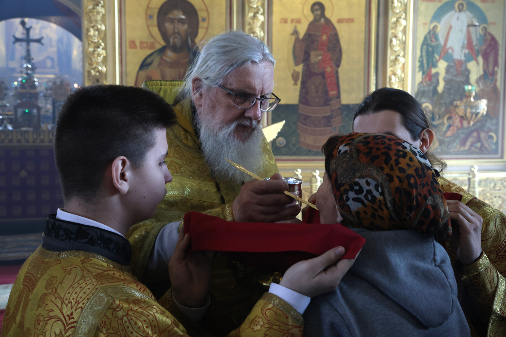 Проповедь перед причащением мирян произнес отец Андрей.