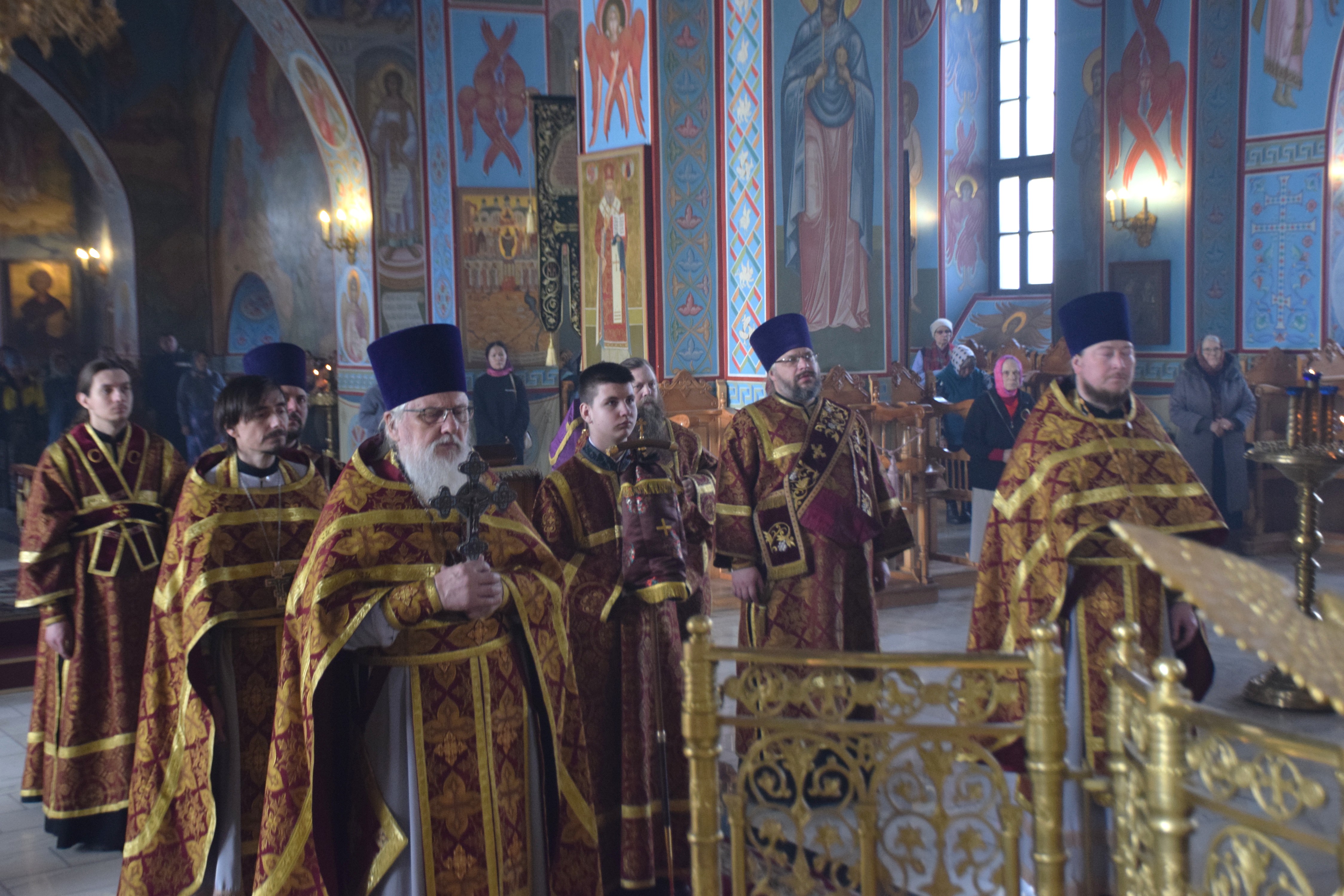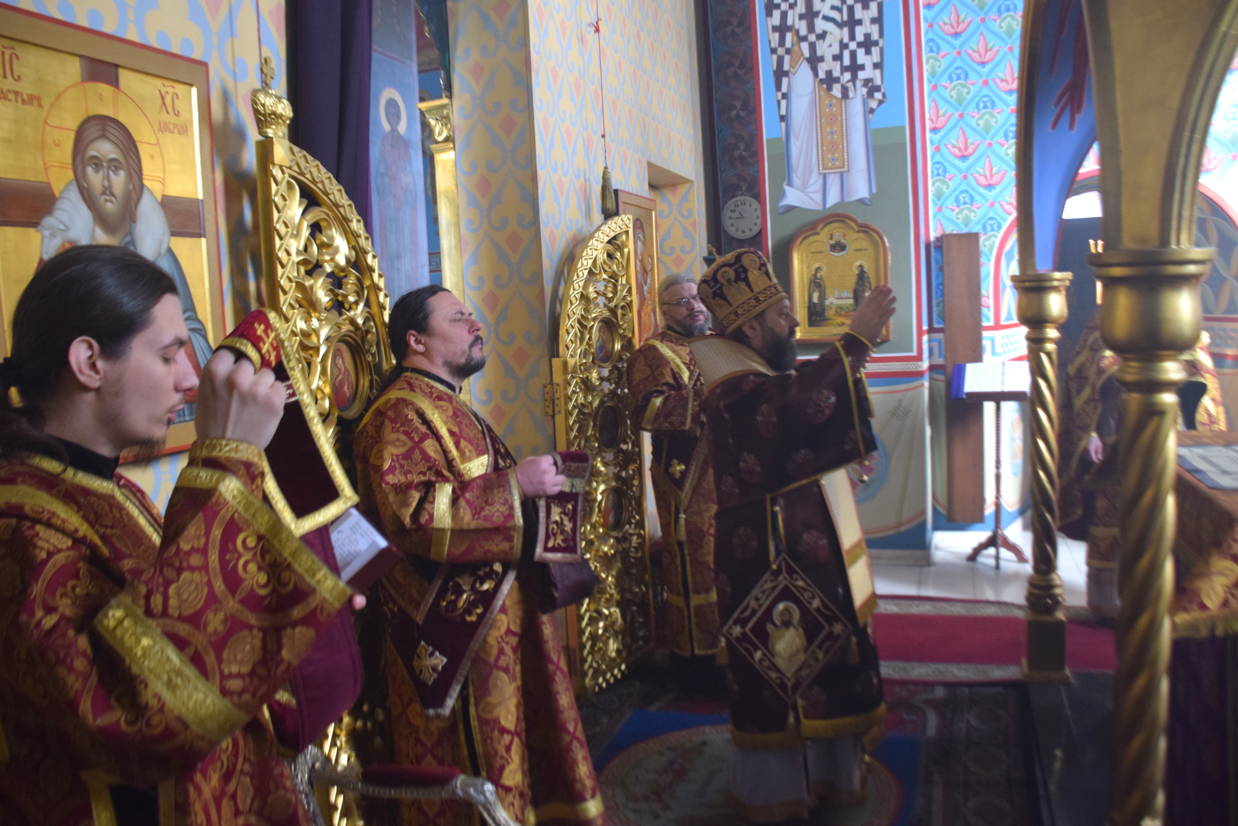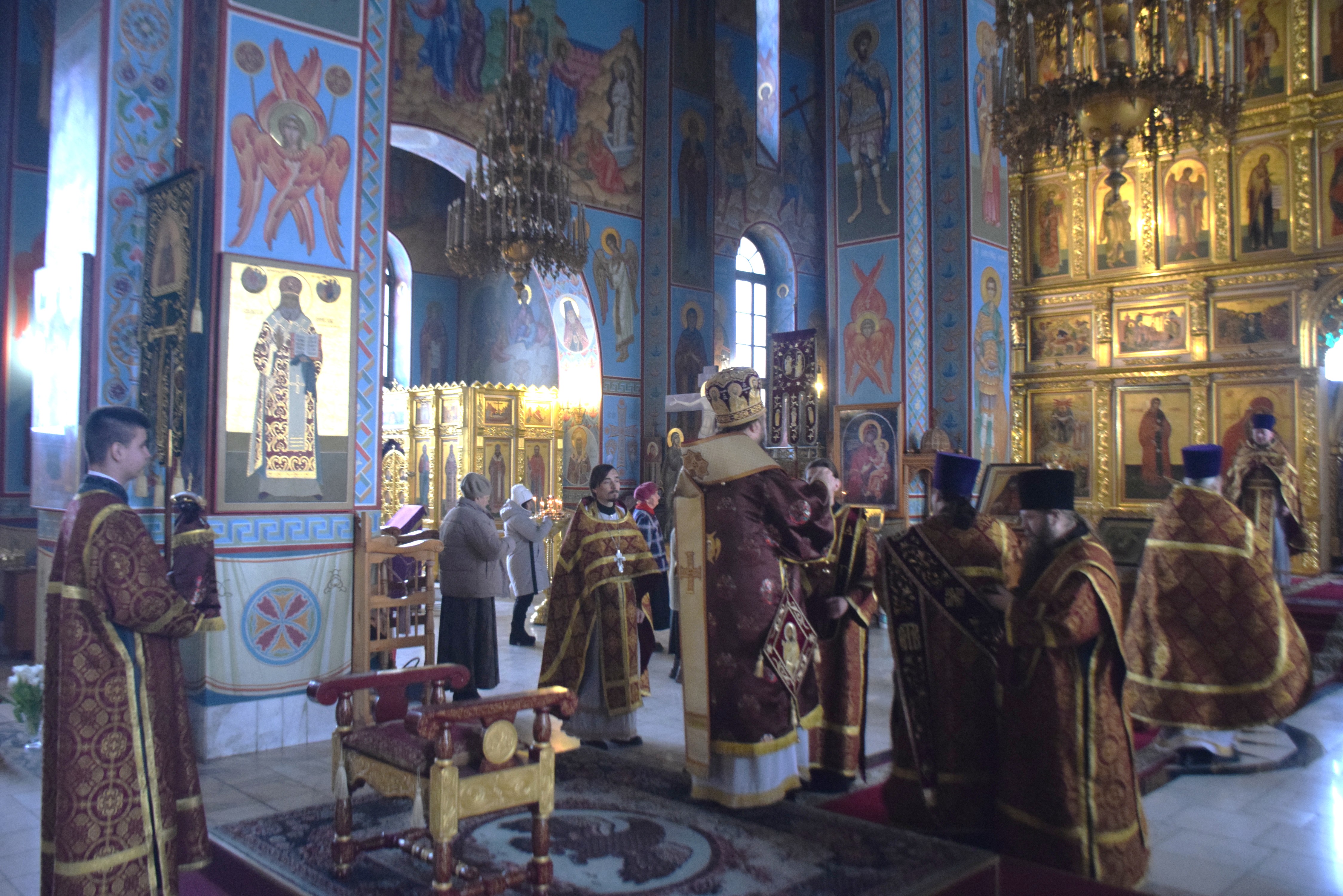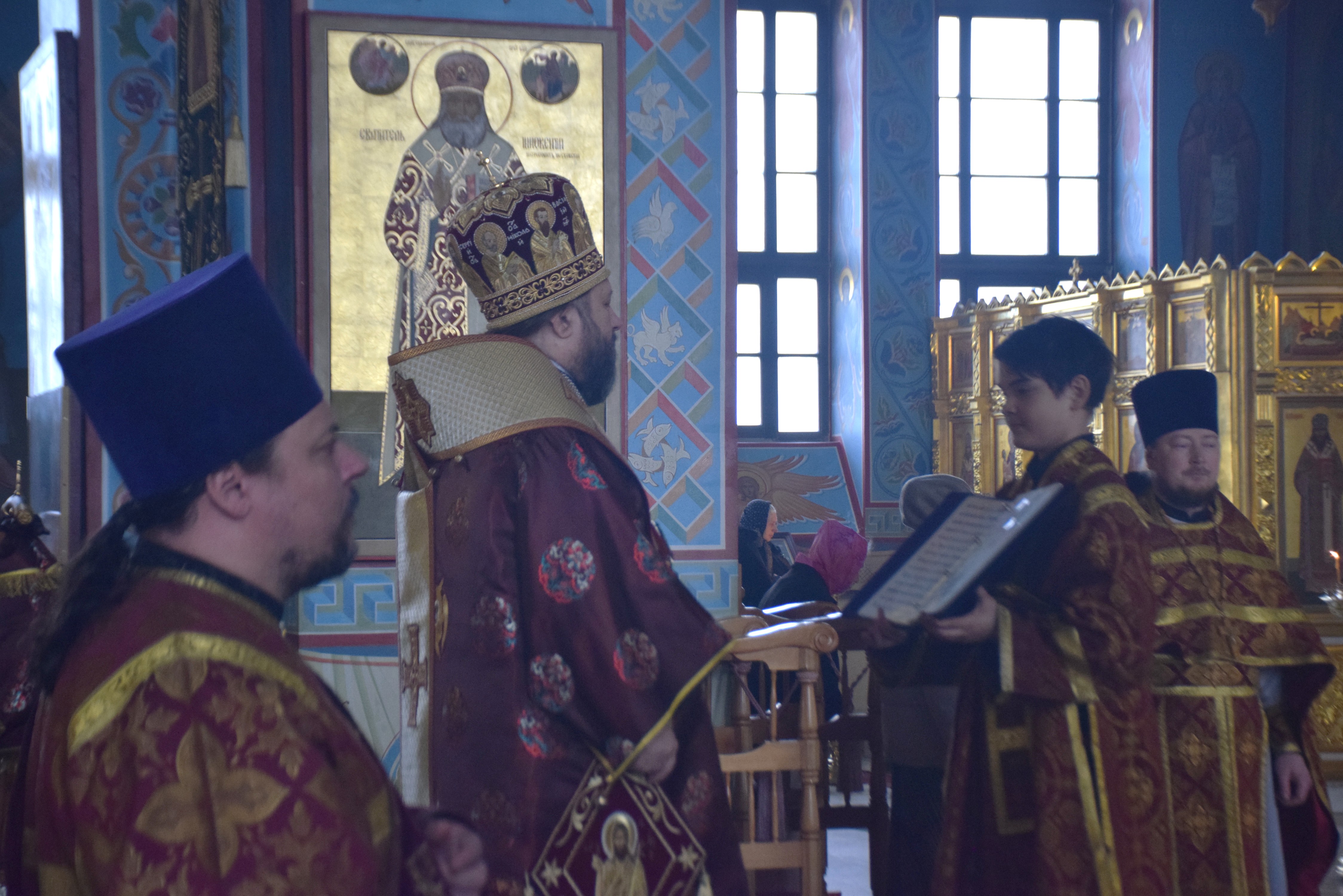 Владыке сослужили протоиерей Олег Попов, священники Андрей Спирин и Евгений Девятов. Диаконский чин составили протодиакон Андрей Ермаков, диаконы Сергий Симонов, Владислав Бойченко и иеродиакон Нестор (Рыбин). Богослужебные песнопения исполнил архиерейский хор собора под управлением Марии Ермаковой.