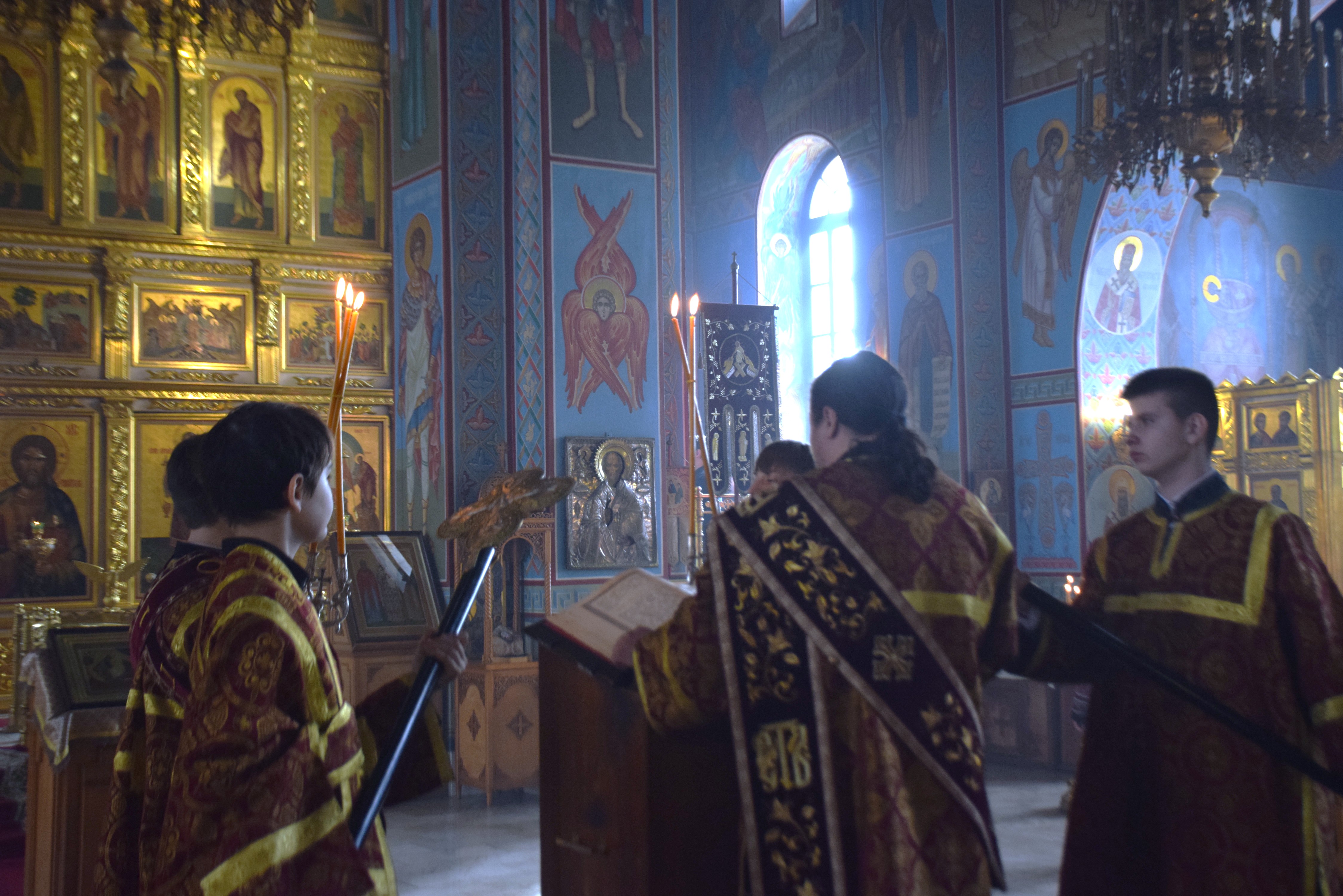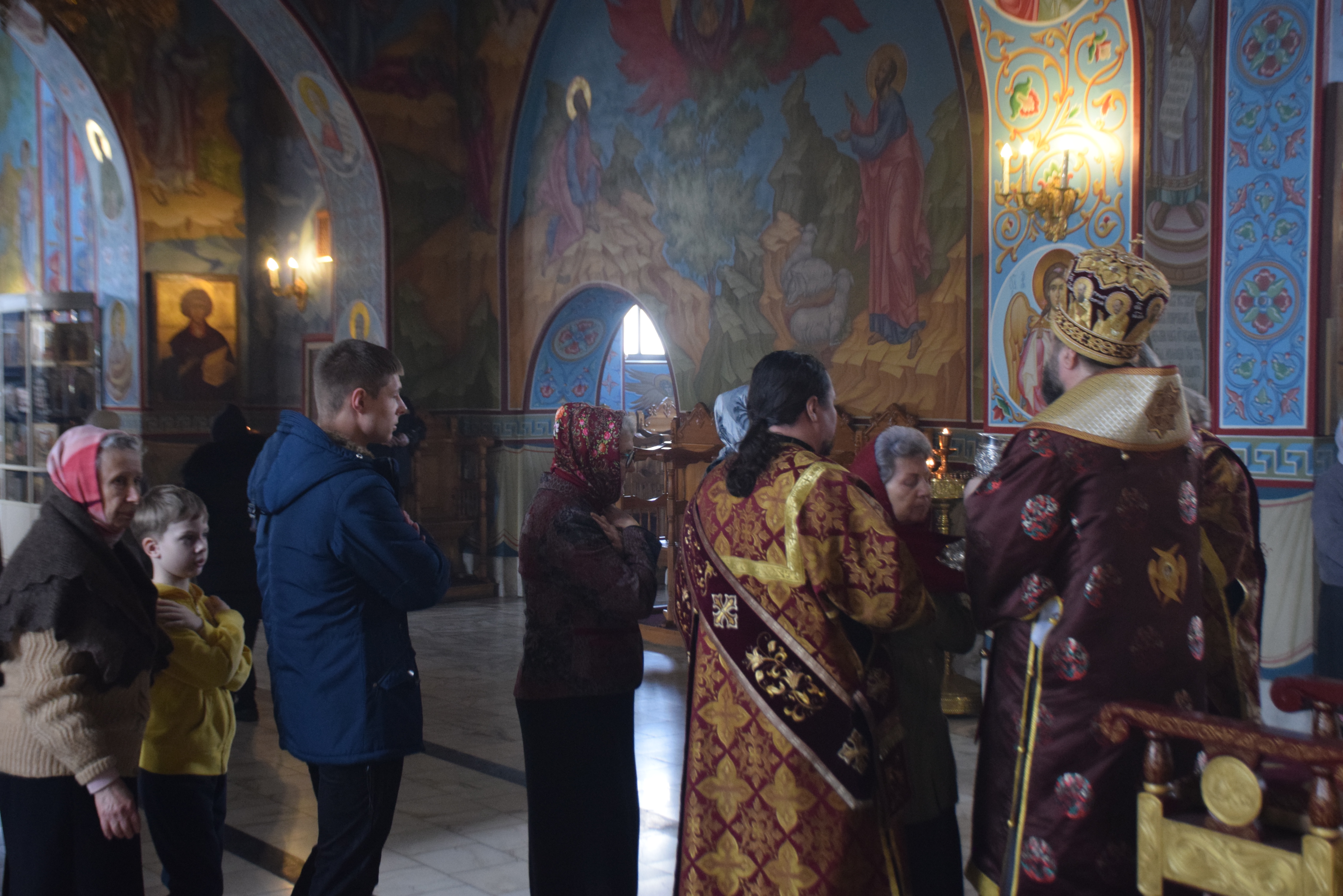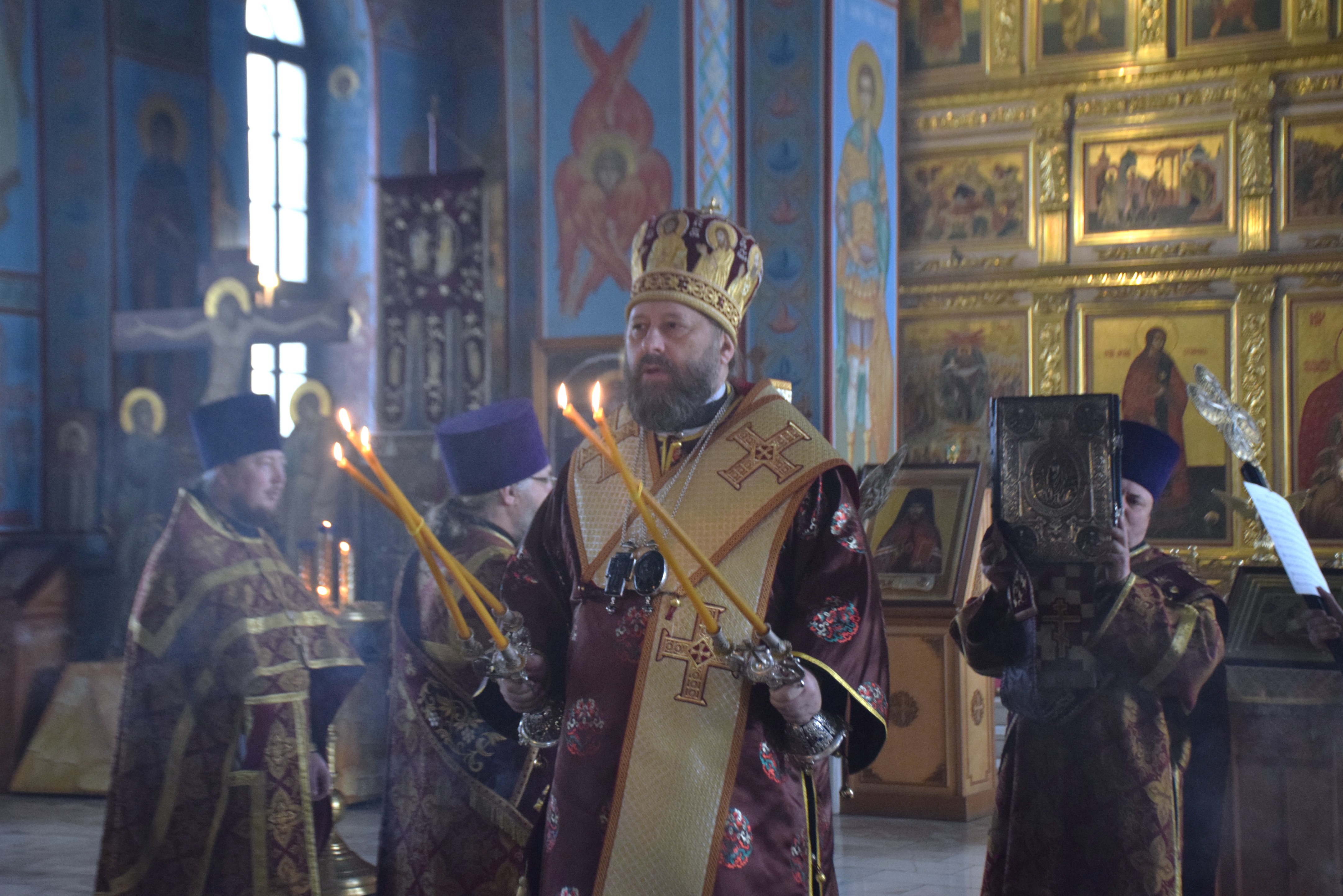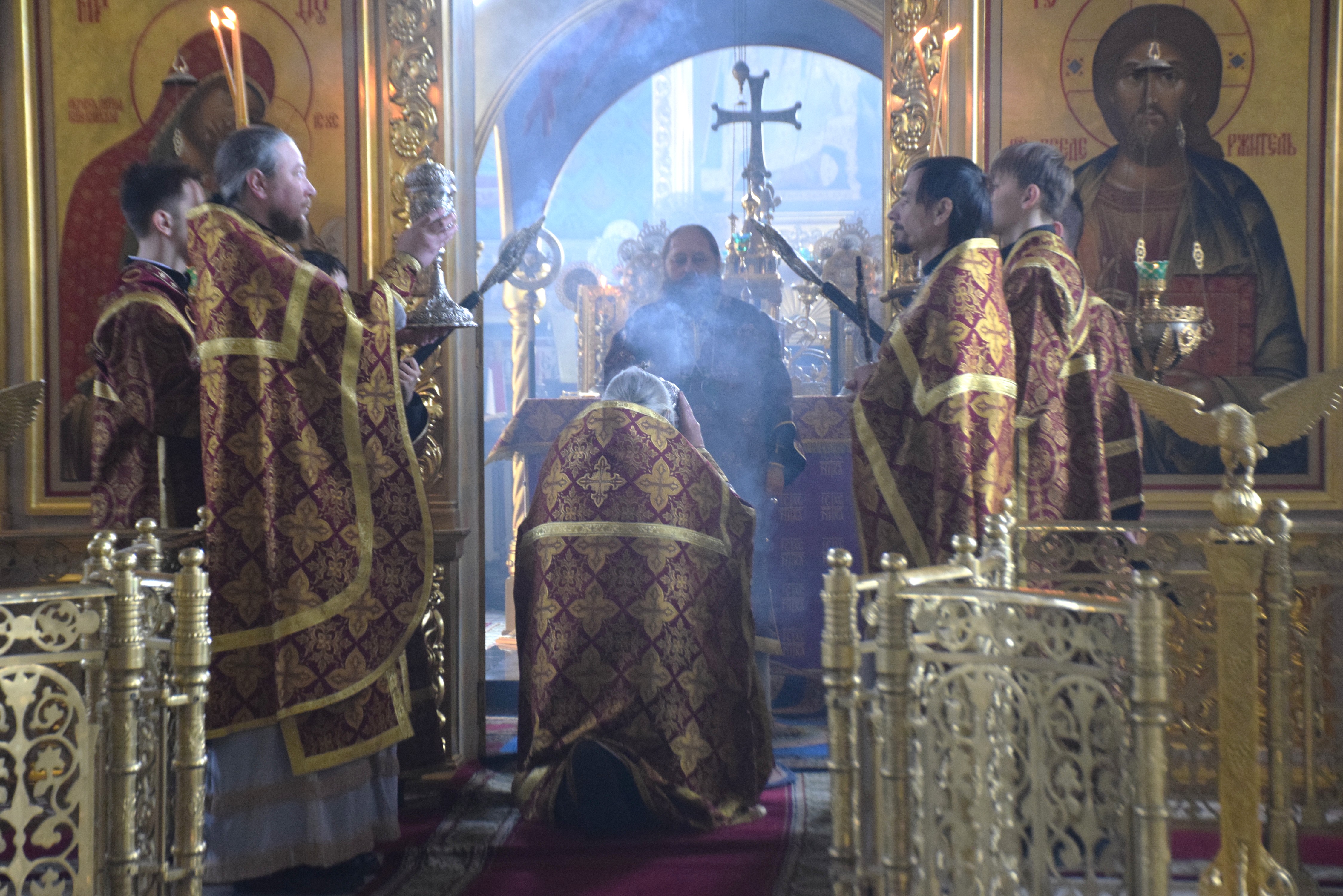 Владыке сослужили протоиерей Олег Попов, священники Андрей Спирин и Евгений Девятов. Диаконский чин составили протодиакон Андрей Ермаков, диаконы Сергий Симонов, Владислав Бойченко и иеродиакон Нестор (Рыбин). Богослужебные песнопения исполнил архиерейский хор собора под управлением Марии Ермаковой.
