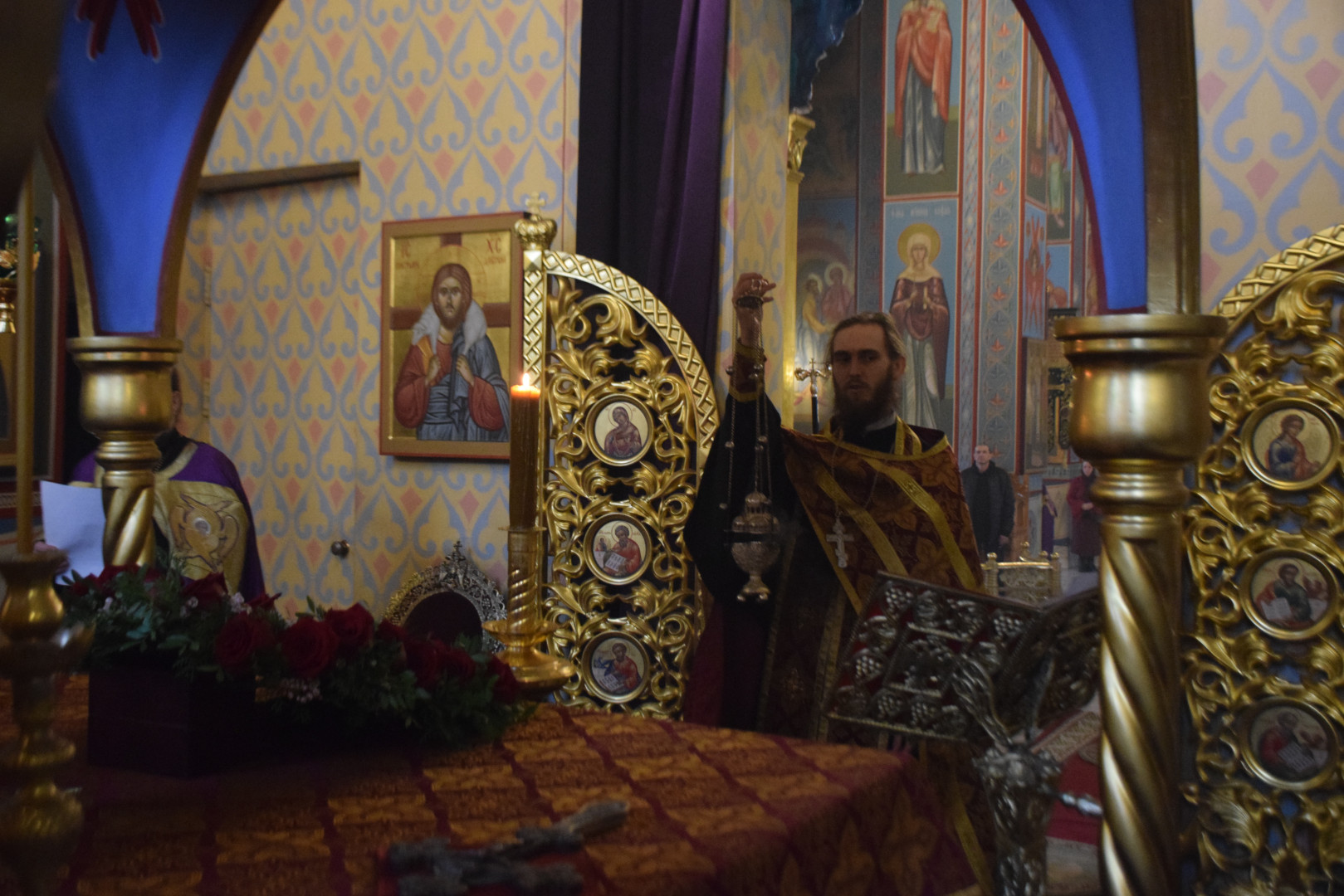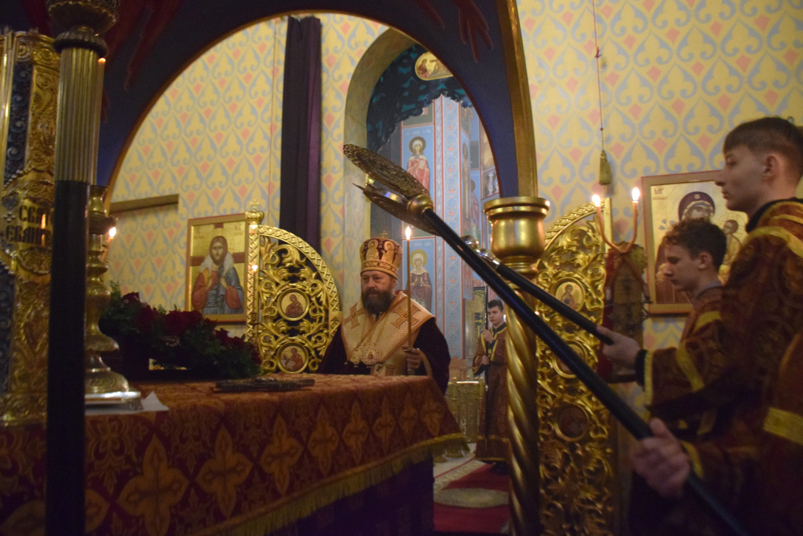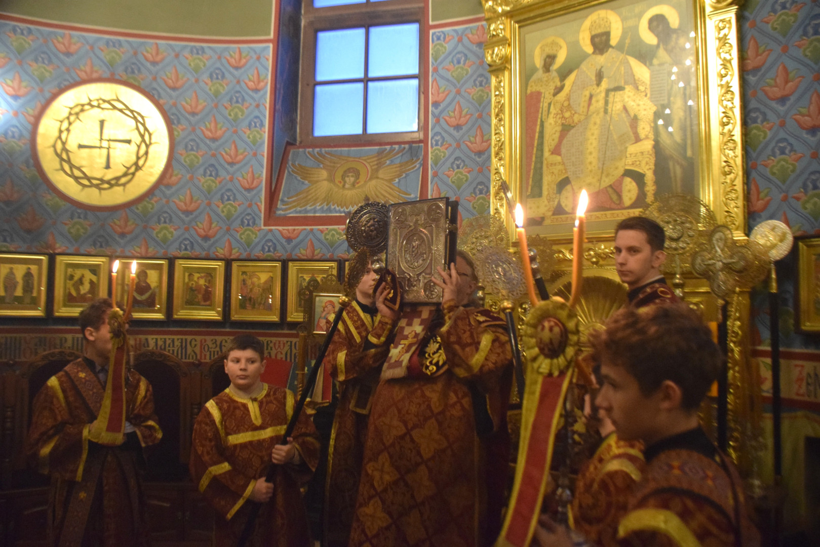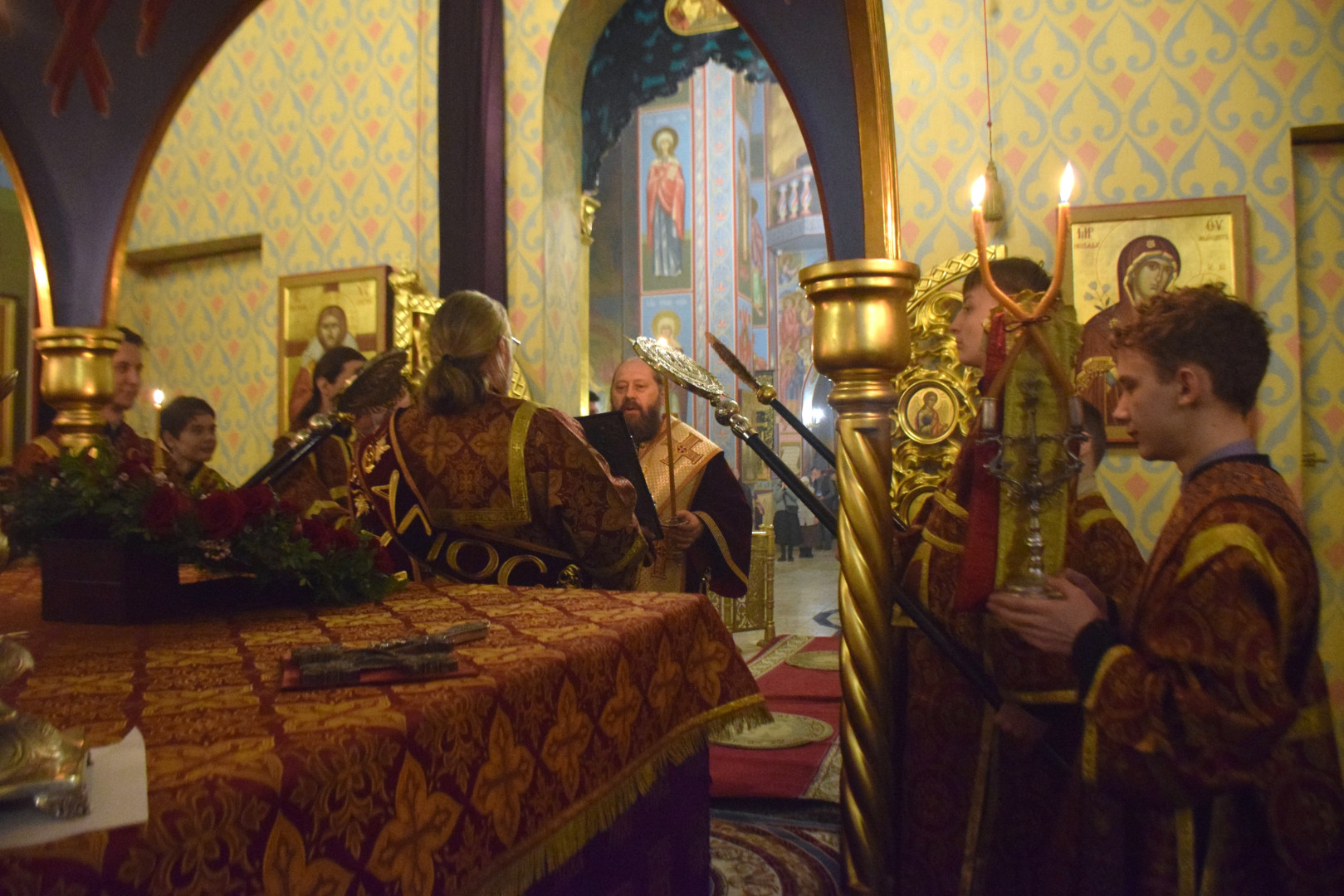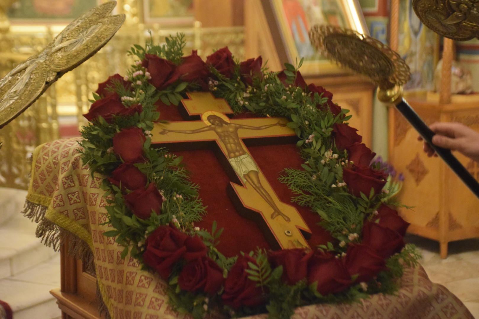 Полиелей совершался в алтаре, перед престолом, на котором находился Честной Крест с частицей Животворящего Древа Креста Господня.