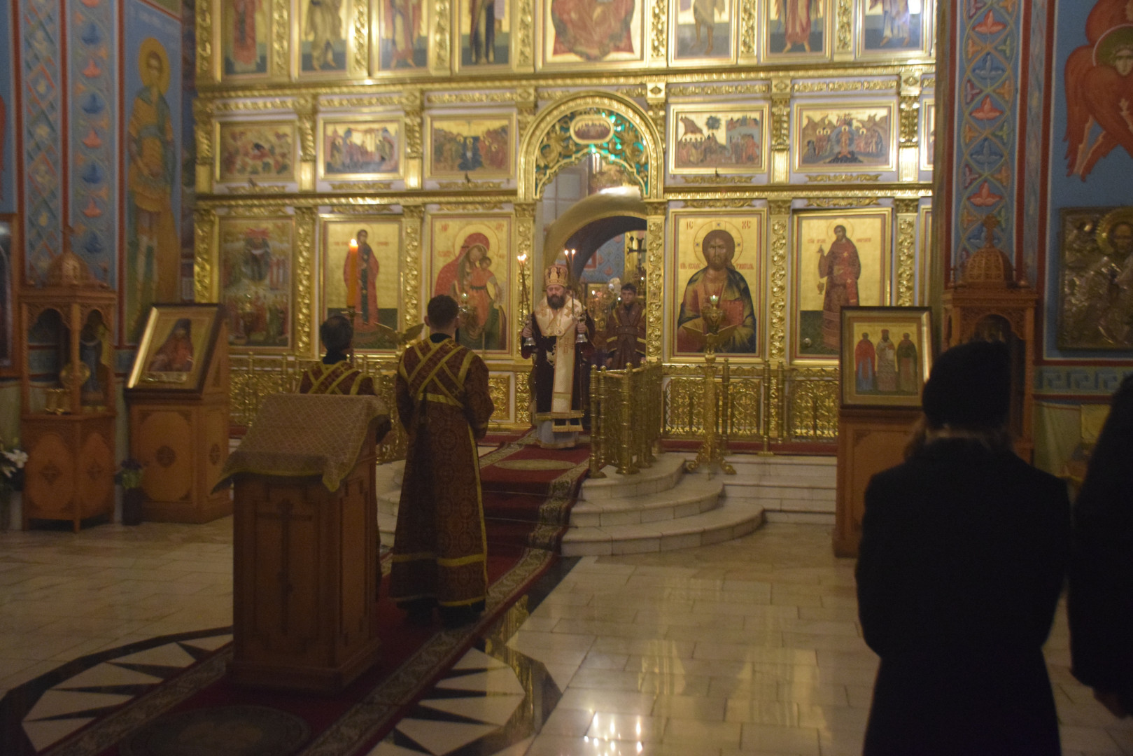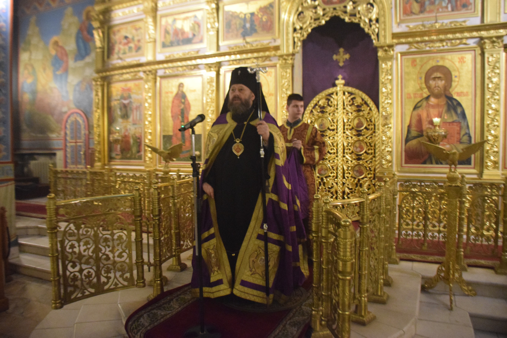 После первого часа и поклонения Кресту архипастырь обратился к молящимся с кратким словом о духовном смысле изнесения Креста в середине Святой Четыредесятницы.