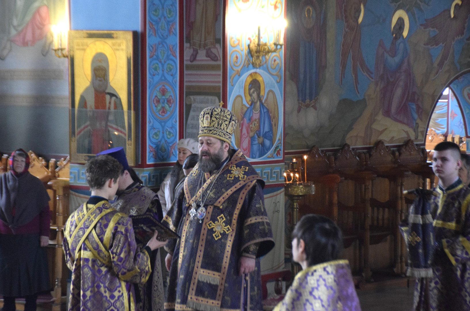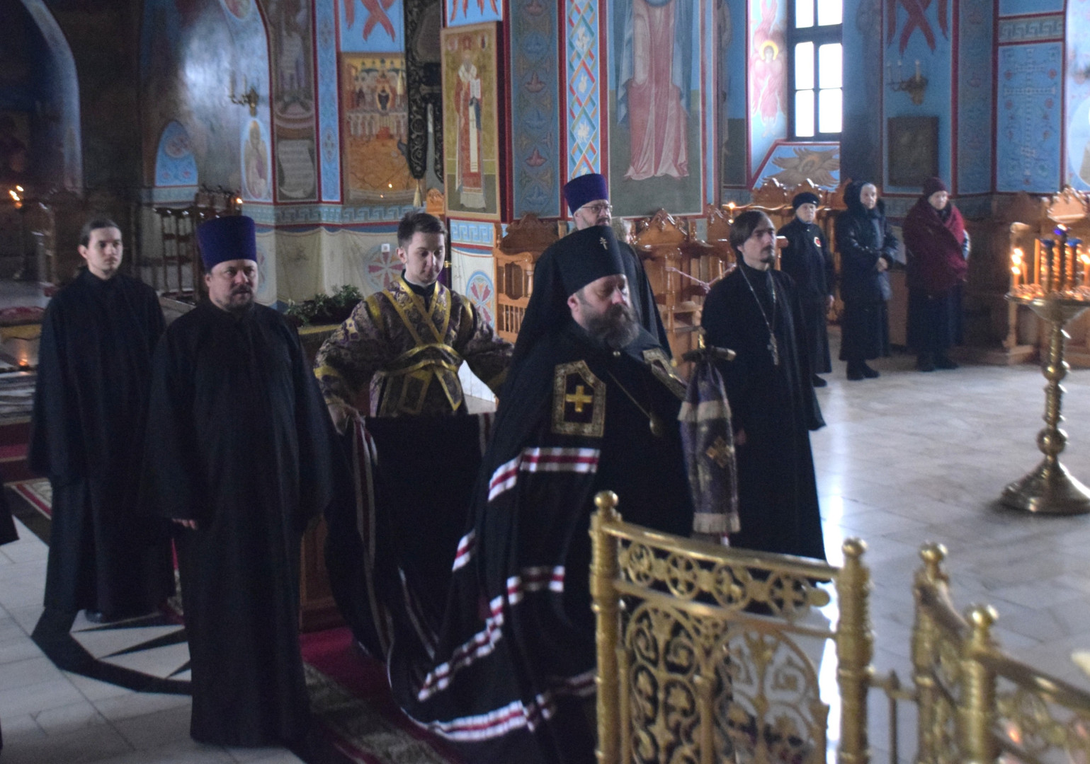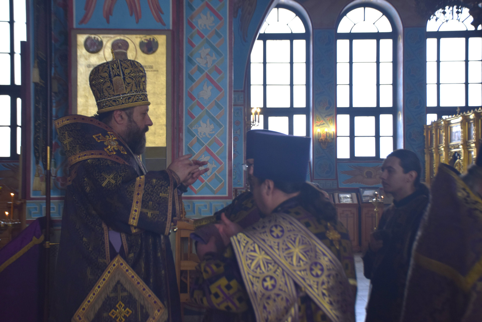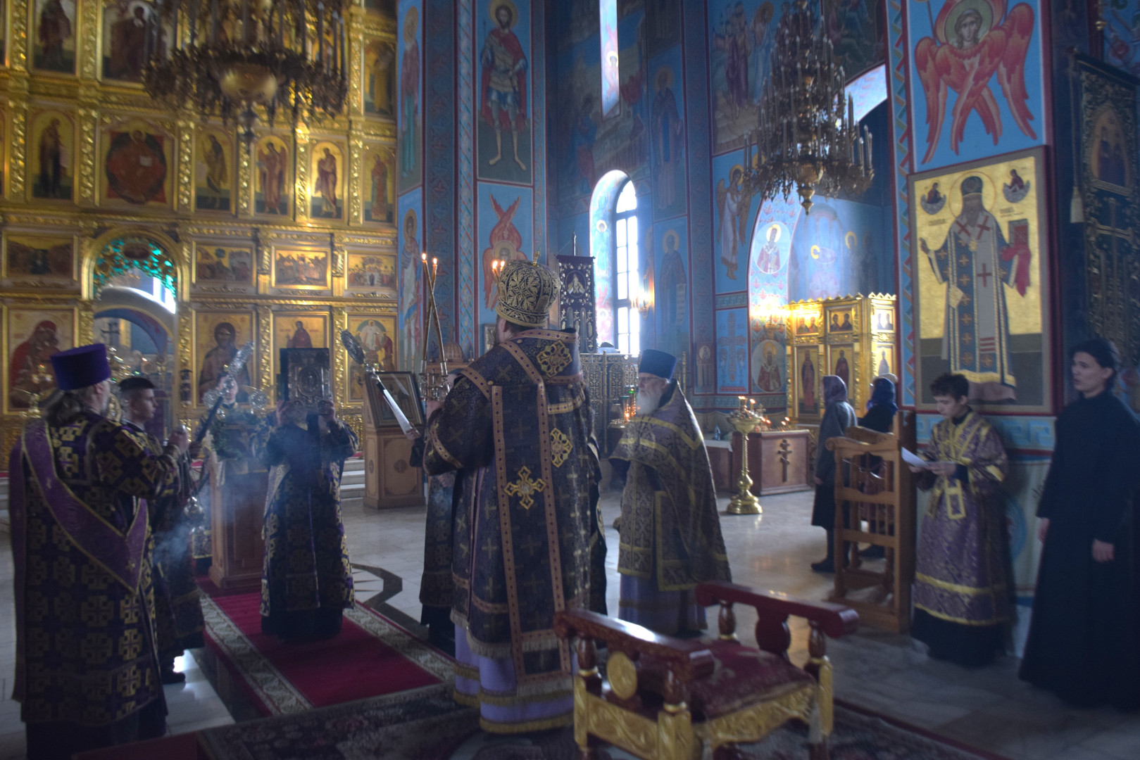 Архипастырю сослужили протоиерей Олег Попов и священник Евгений Девятов. Диаконский чин составили протодиакон Андрей Ермаков и соборные диаконы.