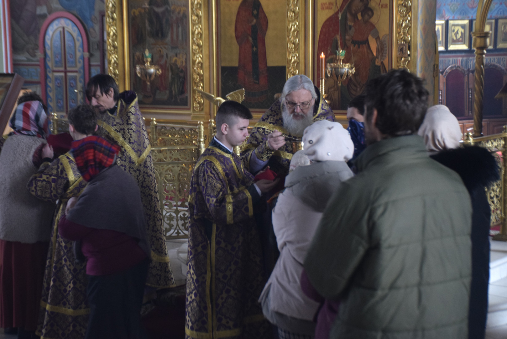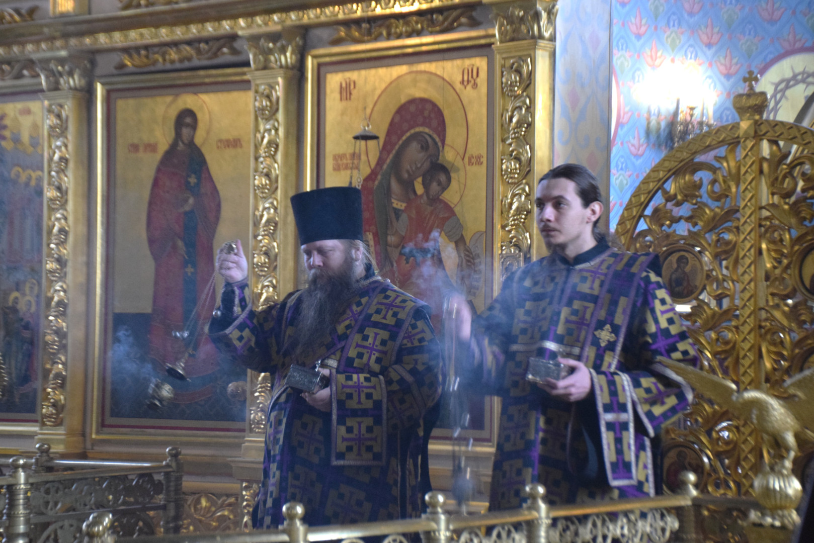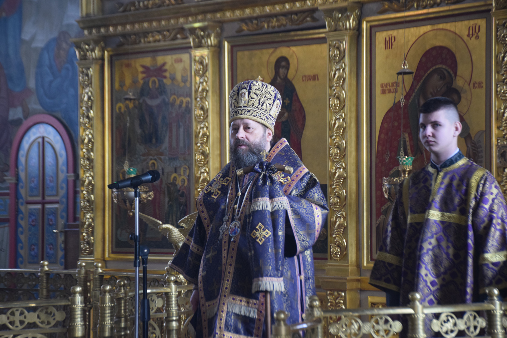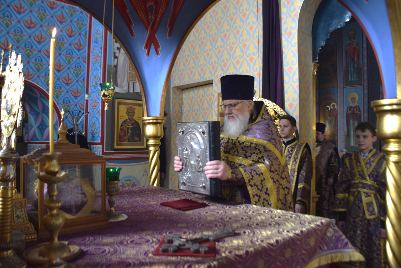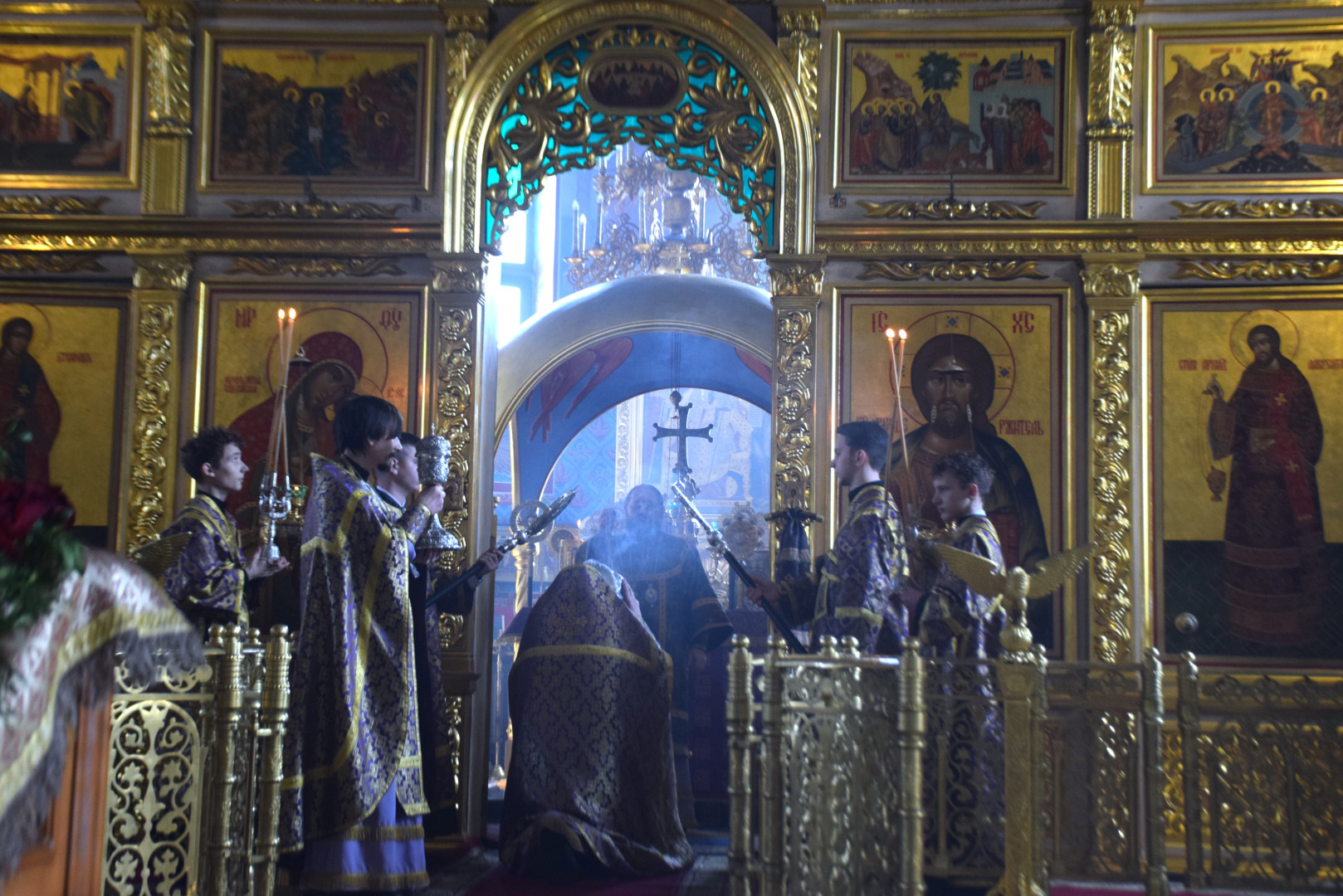 Архипастырю сослужили протоиерей Олег Попов и священник Евгений Девятов. Диаконский чин составили протодиакон Андрей Ермаков и соборные диаконы.
