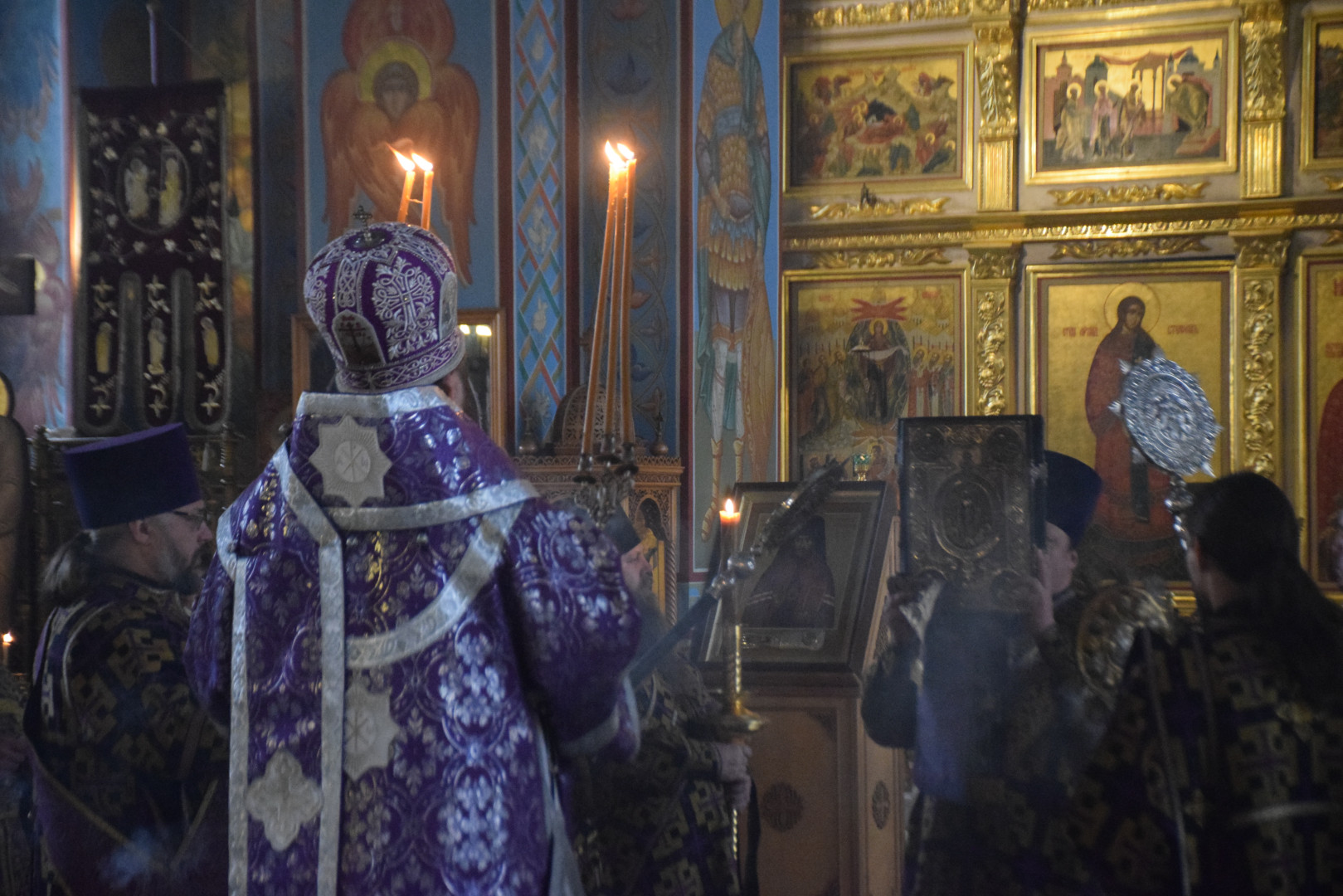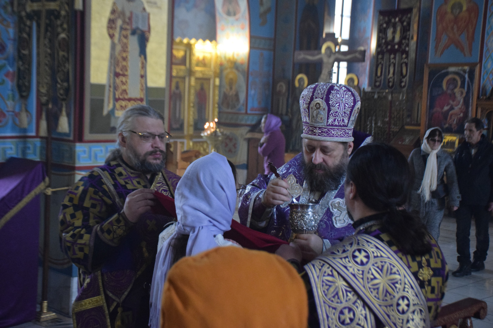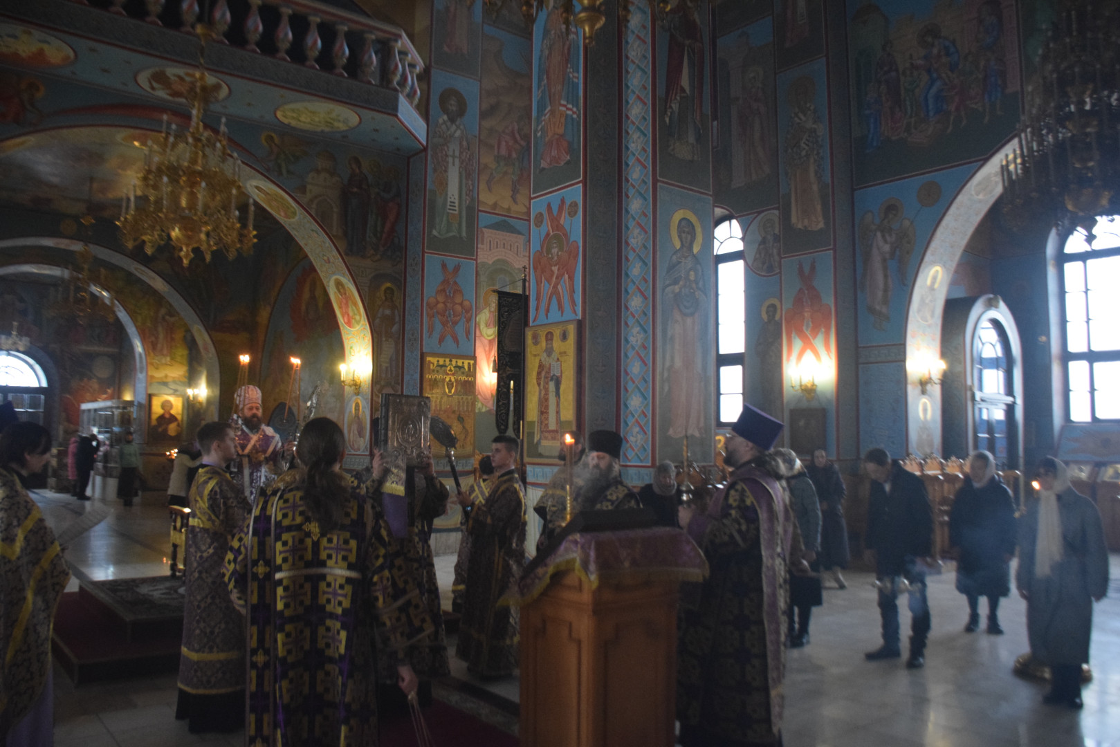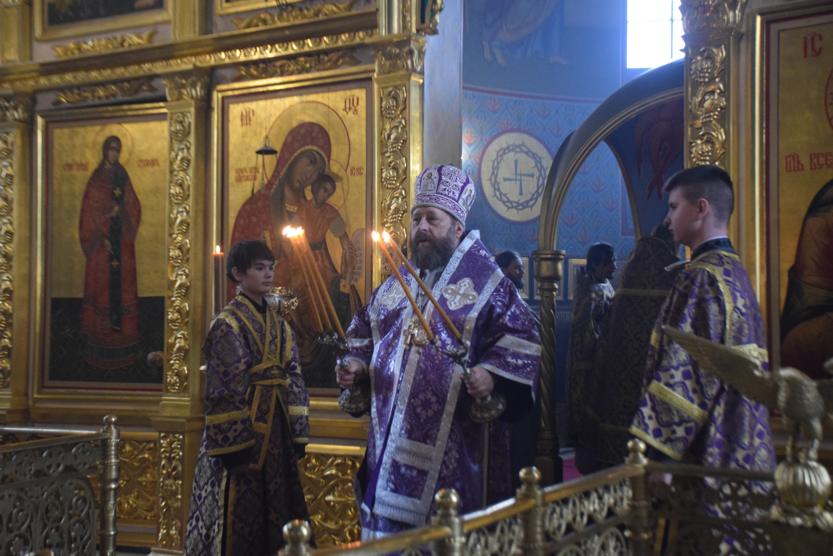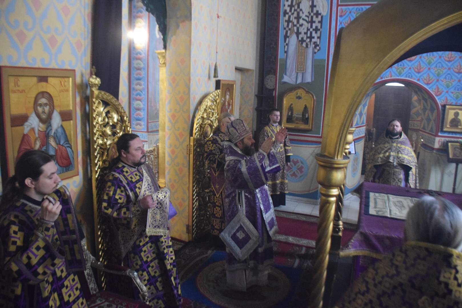 Владыке сослужили протоиерей Олег Попов, священники Евгений Мотькин, Евгений Девятов и соборные диаконы.