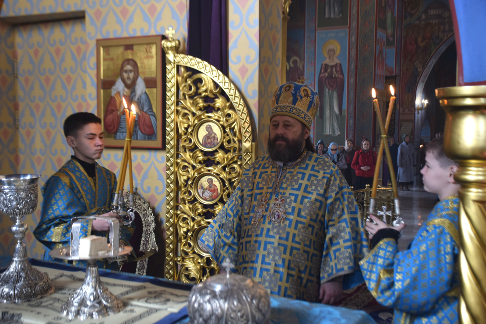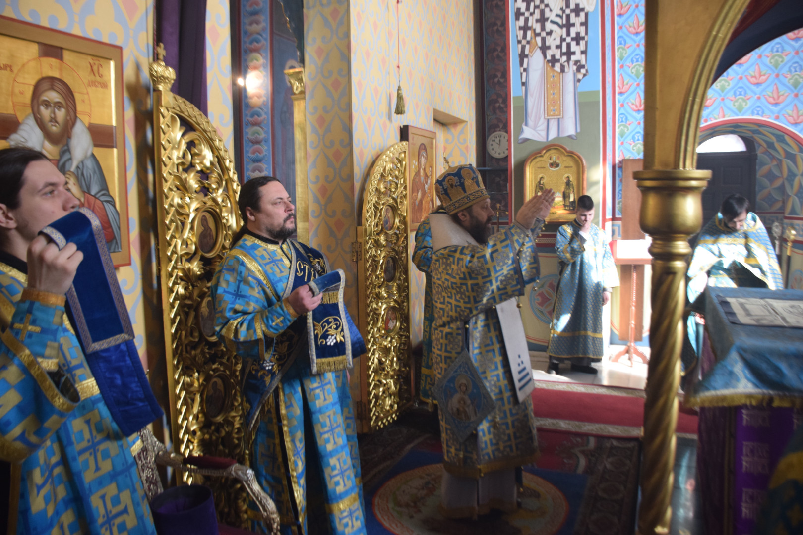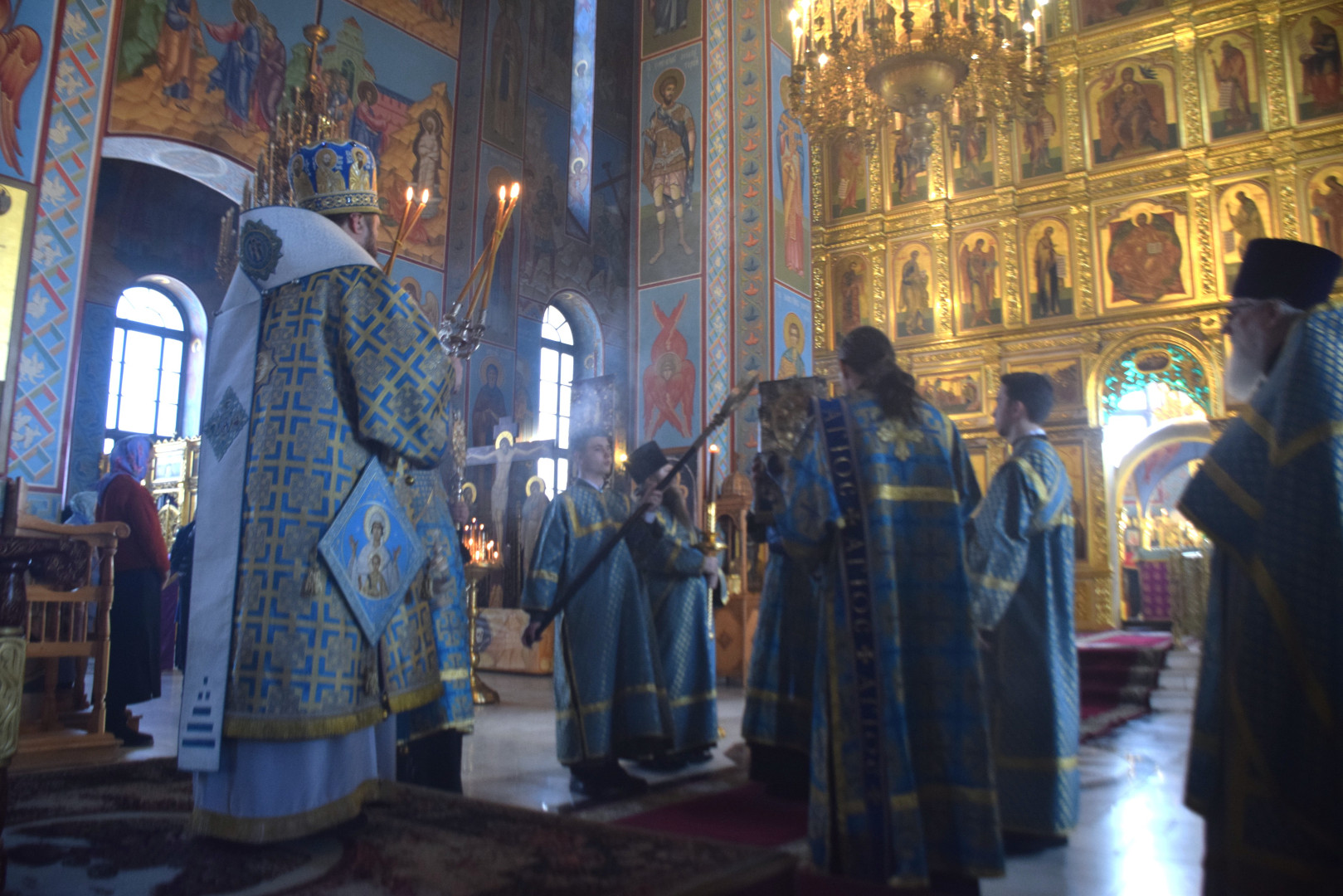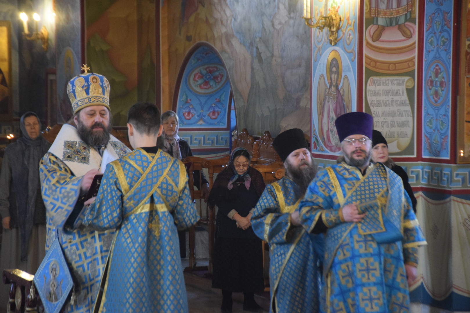 Завершая Литургию, Владыка проповедовал, рассказав об истории установления праздника, подробно остановясь о появлении в православной гимнографии кондаков, и в частности, Великого Акафиста.