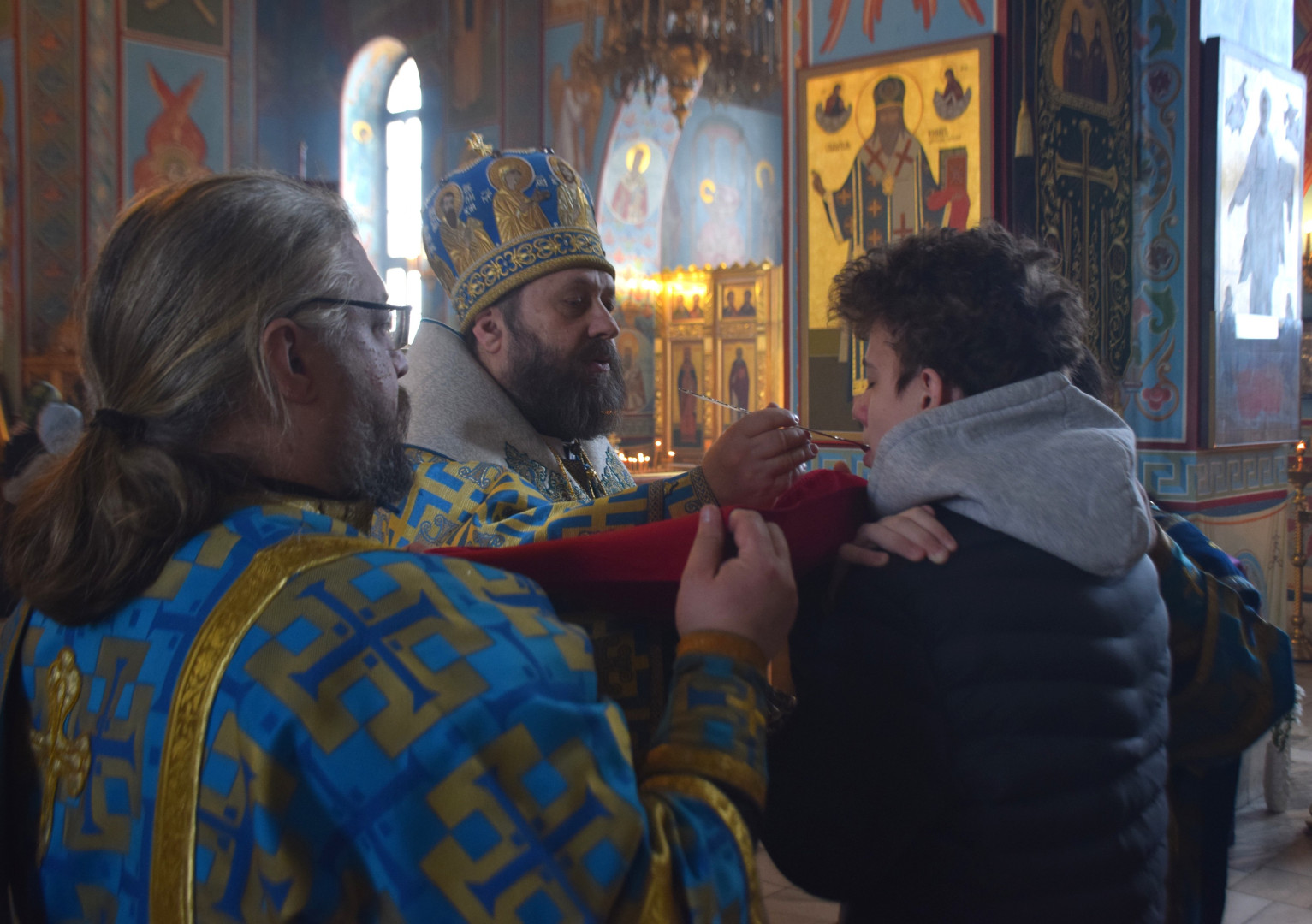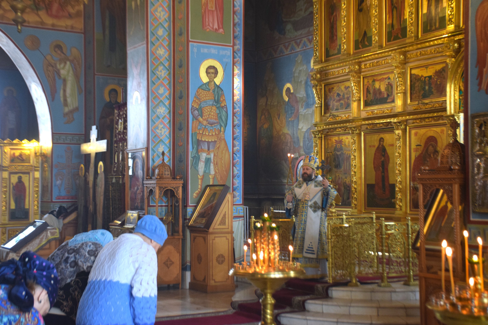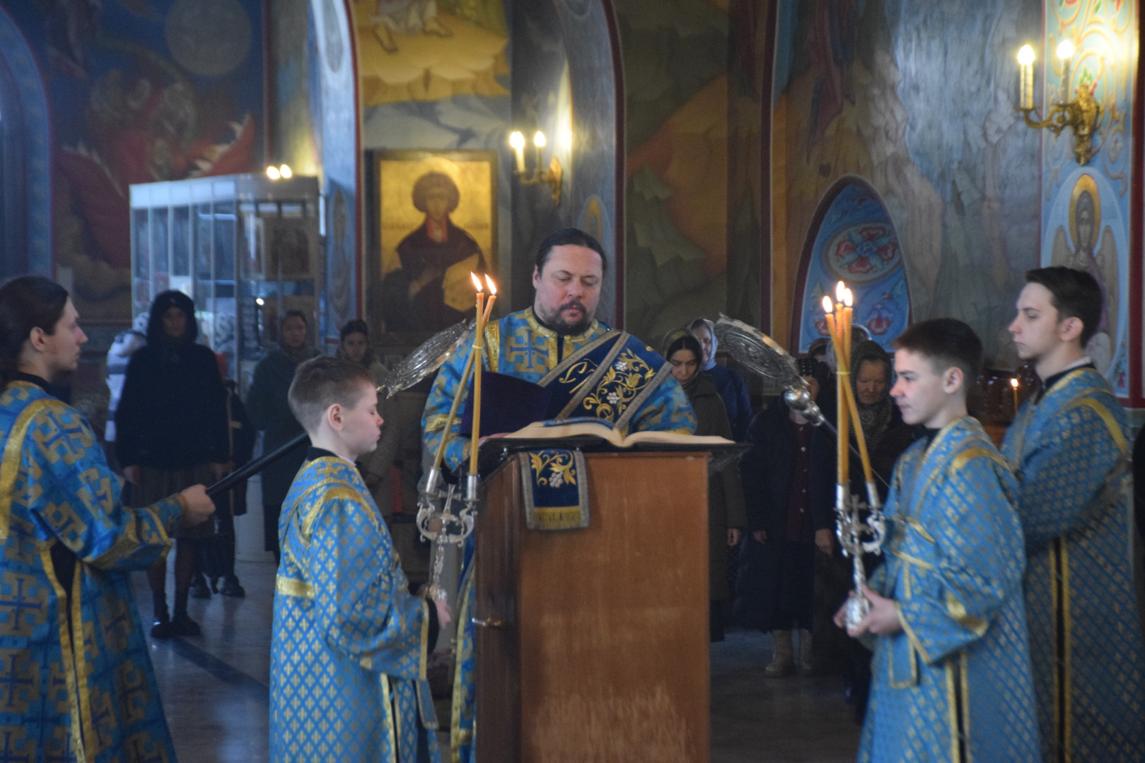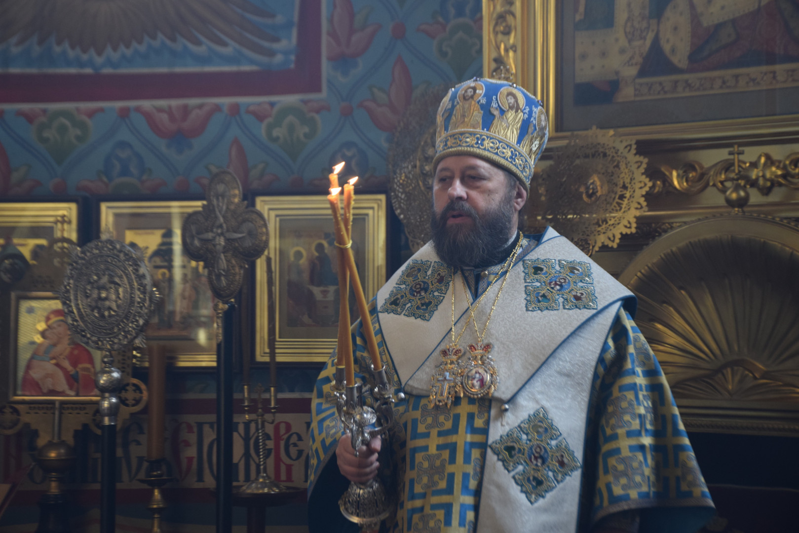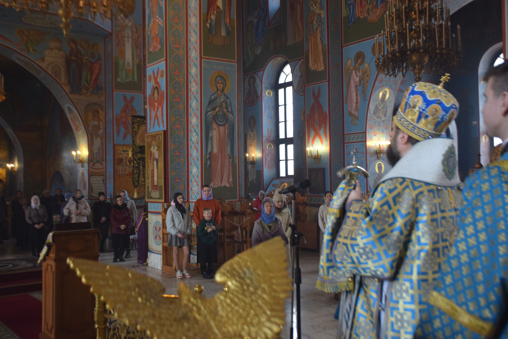 Завершая Литургию, Владыка проповедовал, рассказав об истории установления праздника, подробно остановясь о появлении в православной гимнографии кондаков, и в частности, Великого Акафиста.