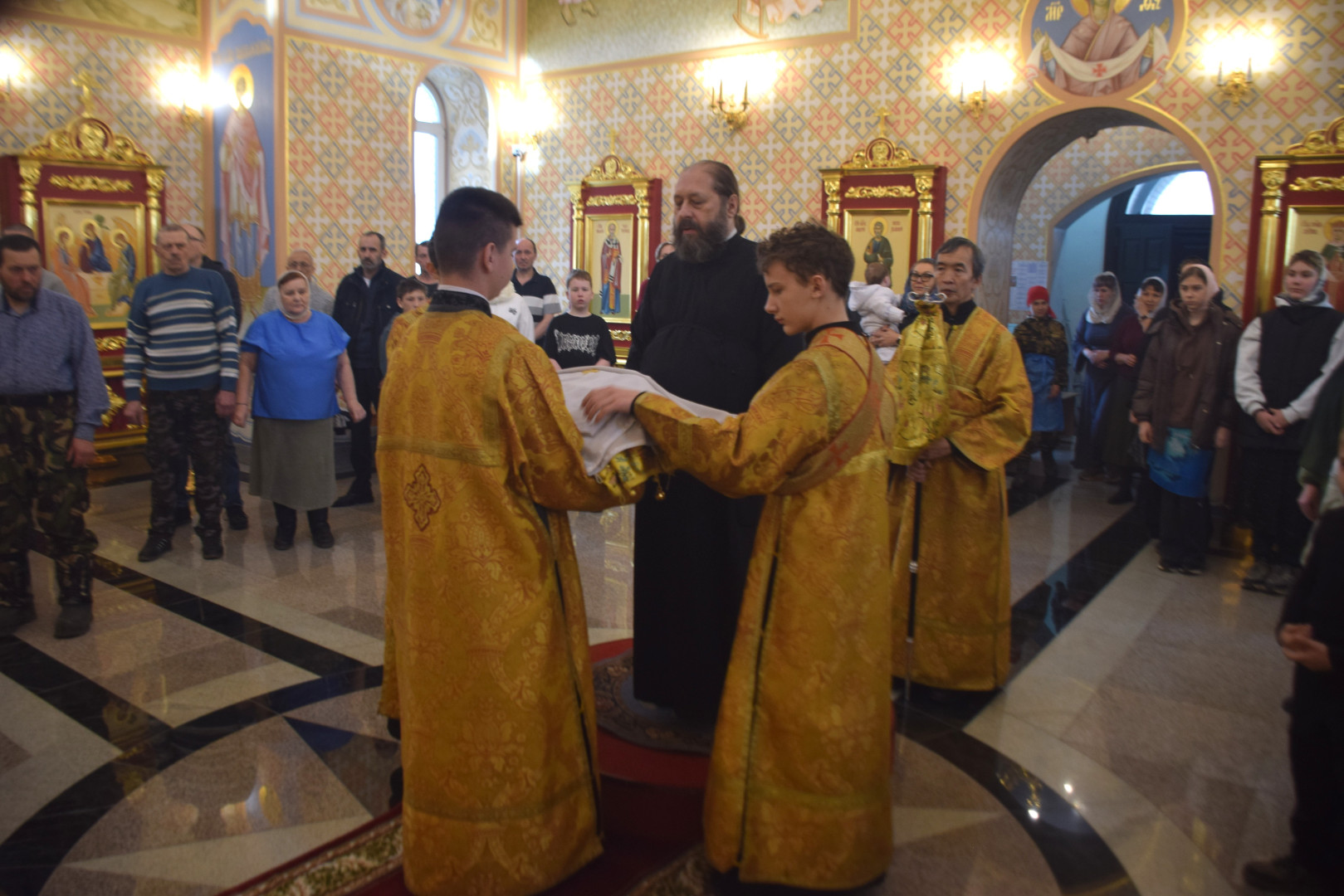 29 марта 2026 года, в Неделю 5-ю Великого поста, в день памяти преподобной Марии Египетской, Преосвященный архиепископ Абаканский и Хакасский Ионафан совершил Божественную Литургию святителя Василия Великого в храме Святой и Живоначальной Троицы в селе Пушное Боградского района Республики Хакасия.