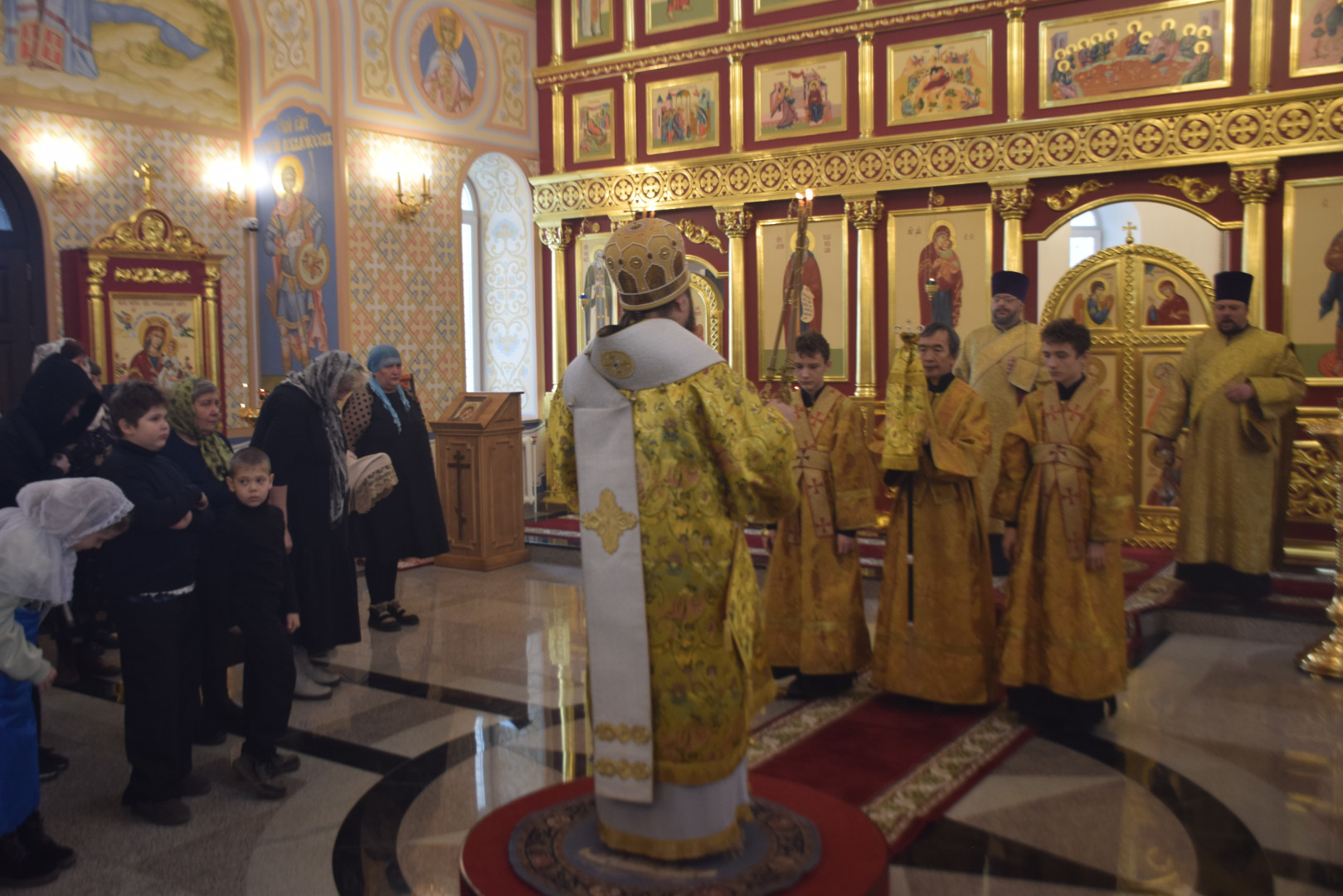 По отпусте архипастырь проповедовал на тему прочитанного на Литургии Евангелия, а также благословлял молящихся.