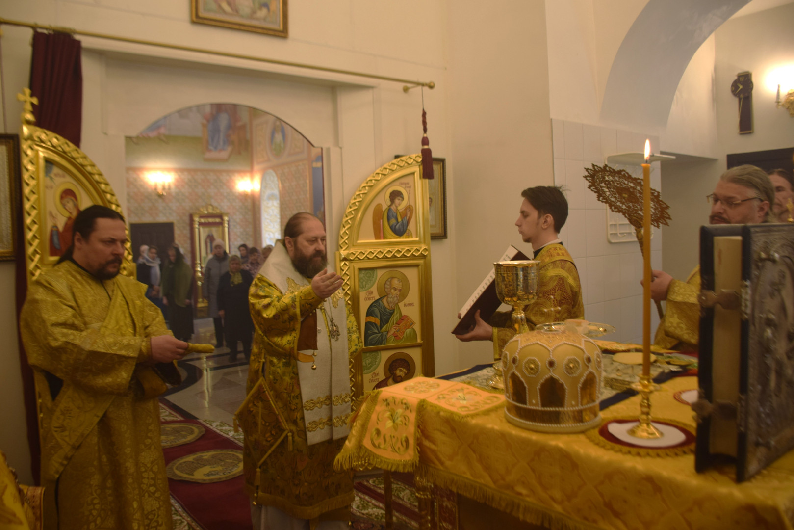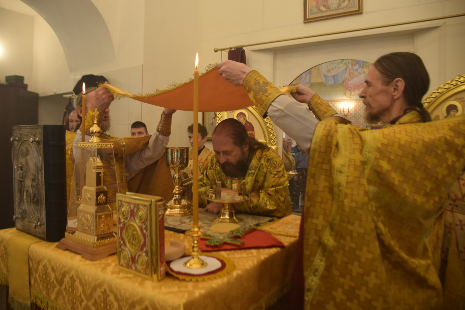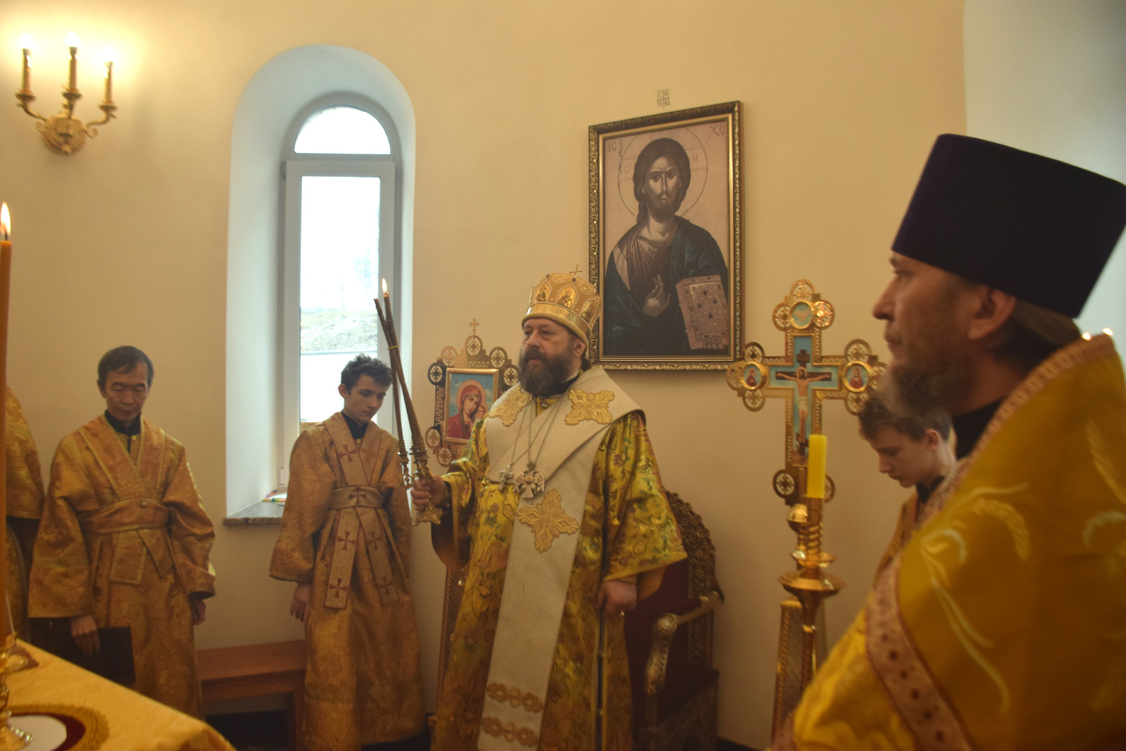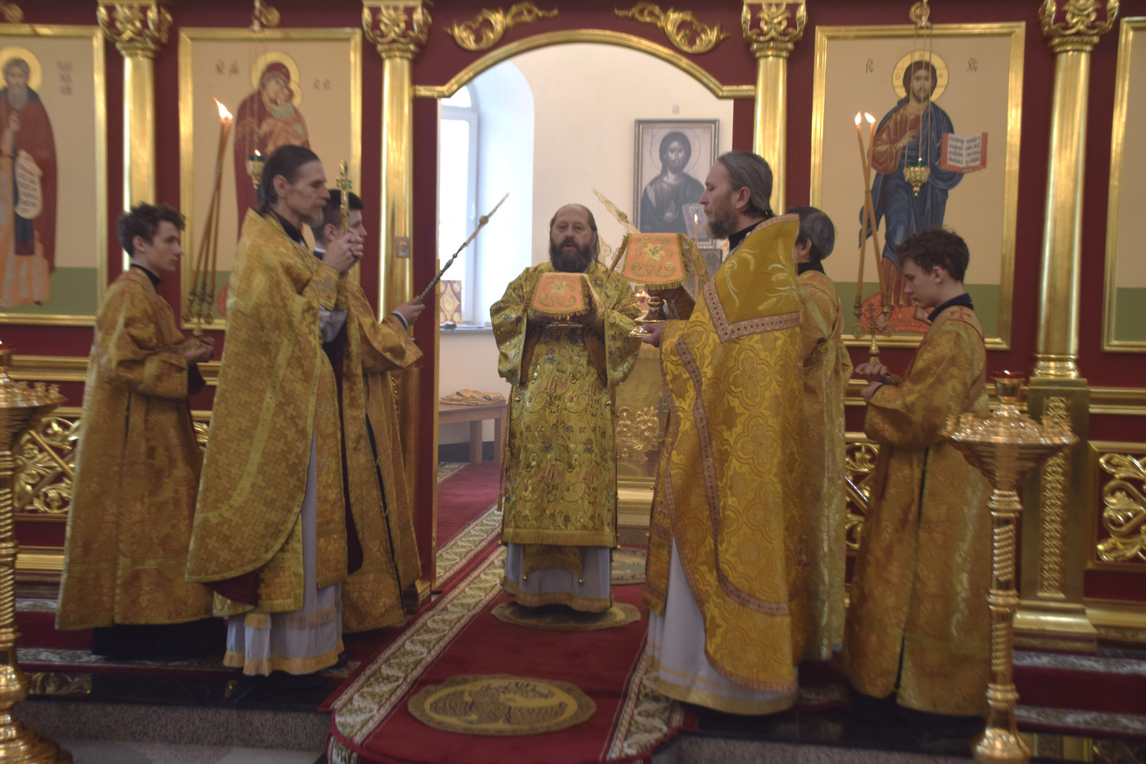 Архипастырю сослужили протоиерей Димитрий Ляпустин и священник Павел Кузьмин. Диаконское служение совершали протодиакон Андрей Ермаков и диакон Сергий Симонов. Песнопения Литургии исполнила группа архиерейского хора под управлением Марии Ермаковой.