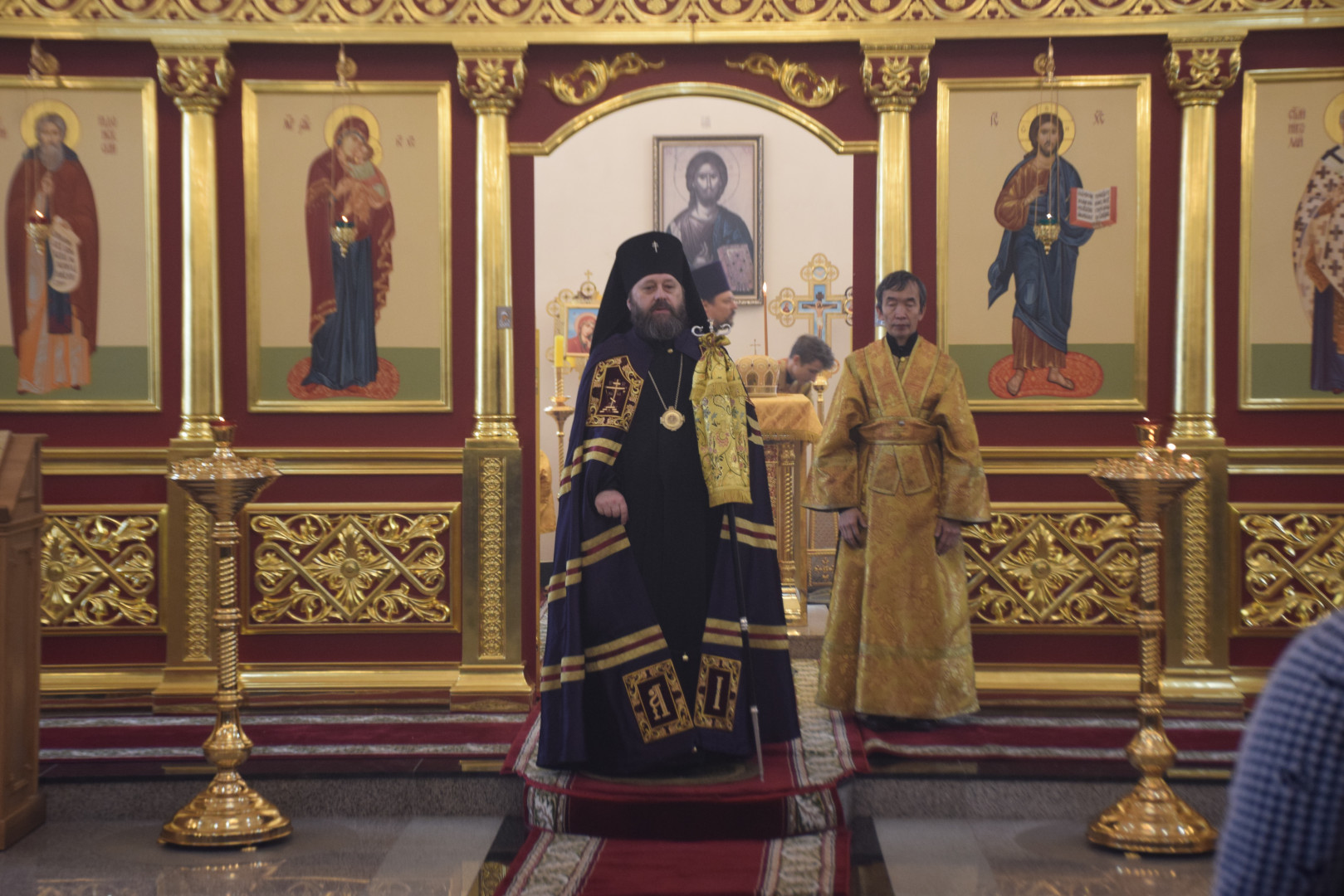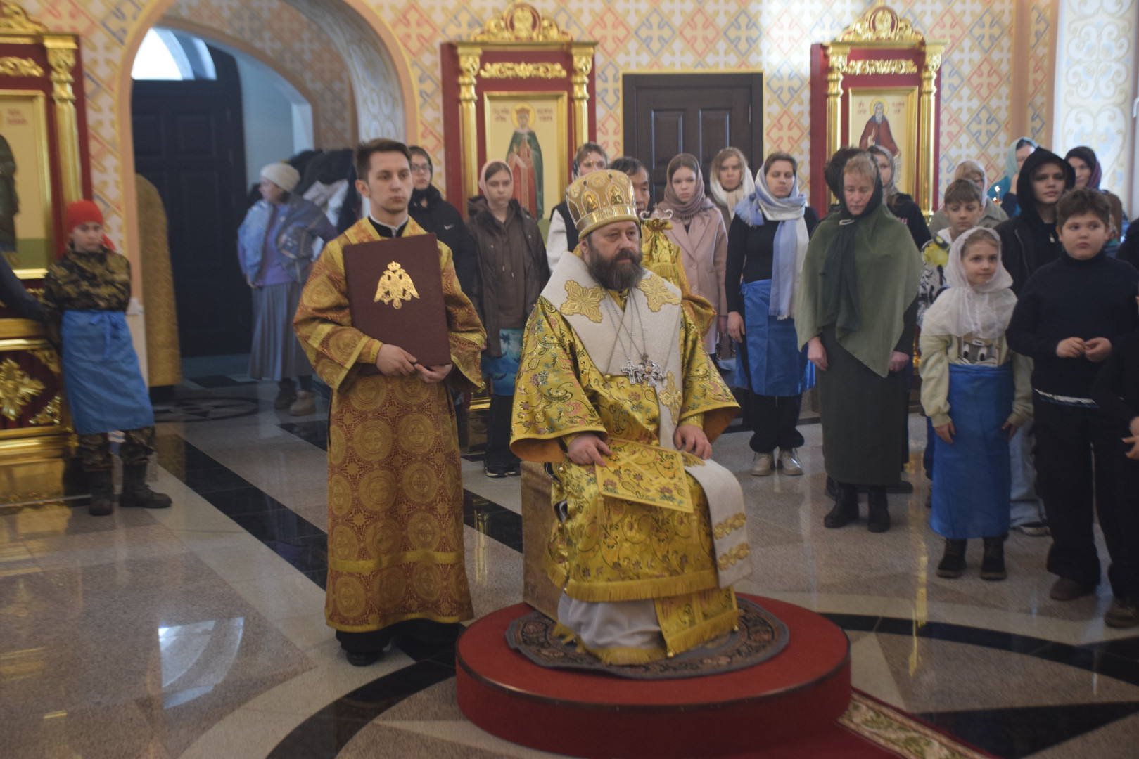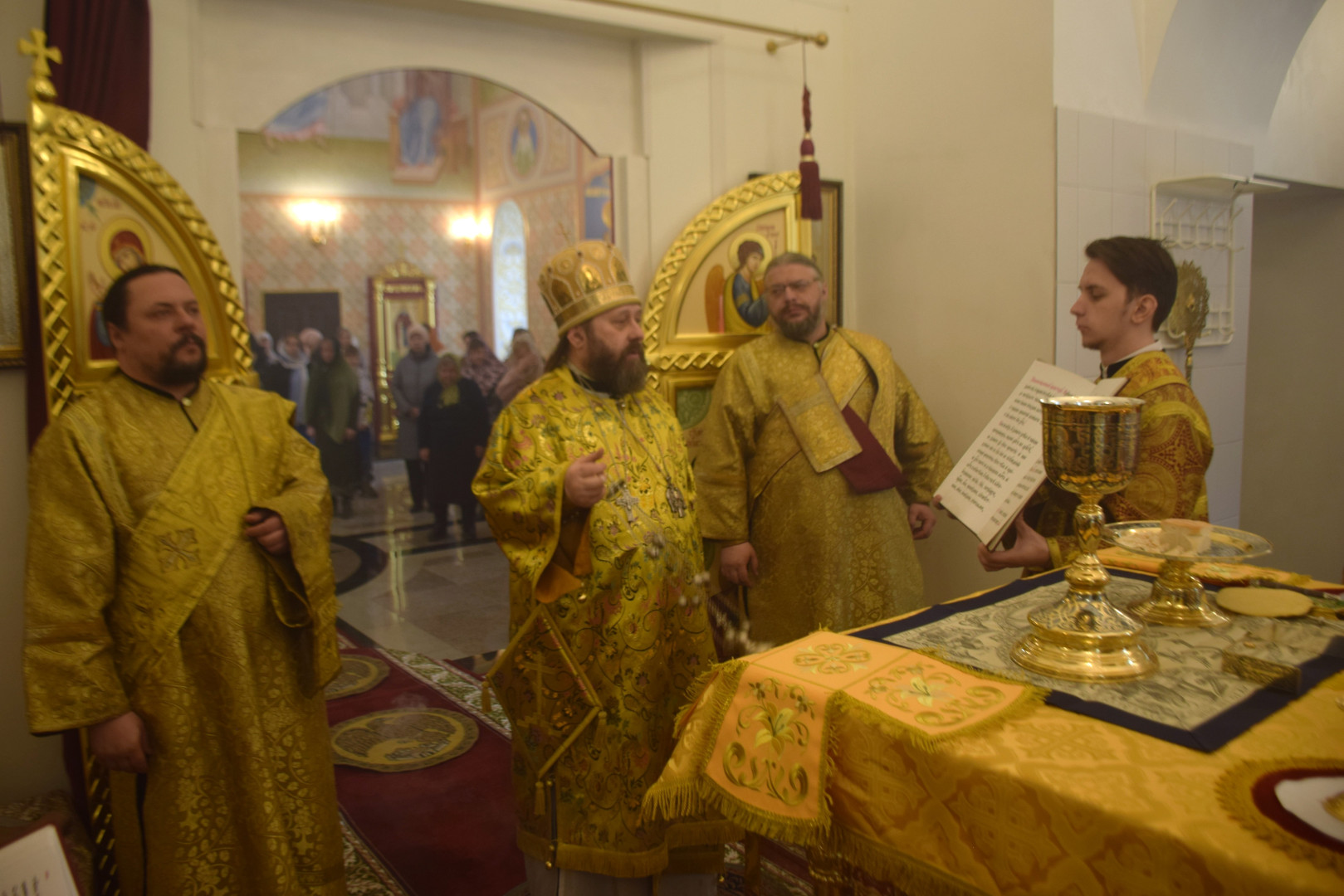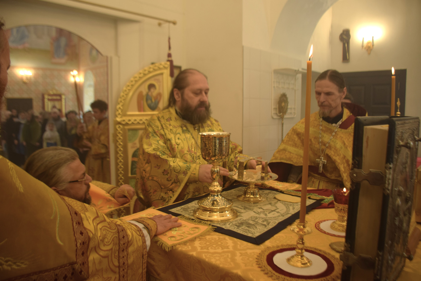 Архипастырю сослужили протоиерей Димитрий Ляпустин и священник Павел Кузьмин. Диаконское служение совершали протодиакон Андрей Ермаков и диакон Сергий Симонов. Песнопения Литургии исполнила группа архиерейского хора под управлением Марии Ермаковой.