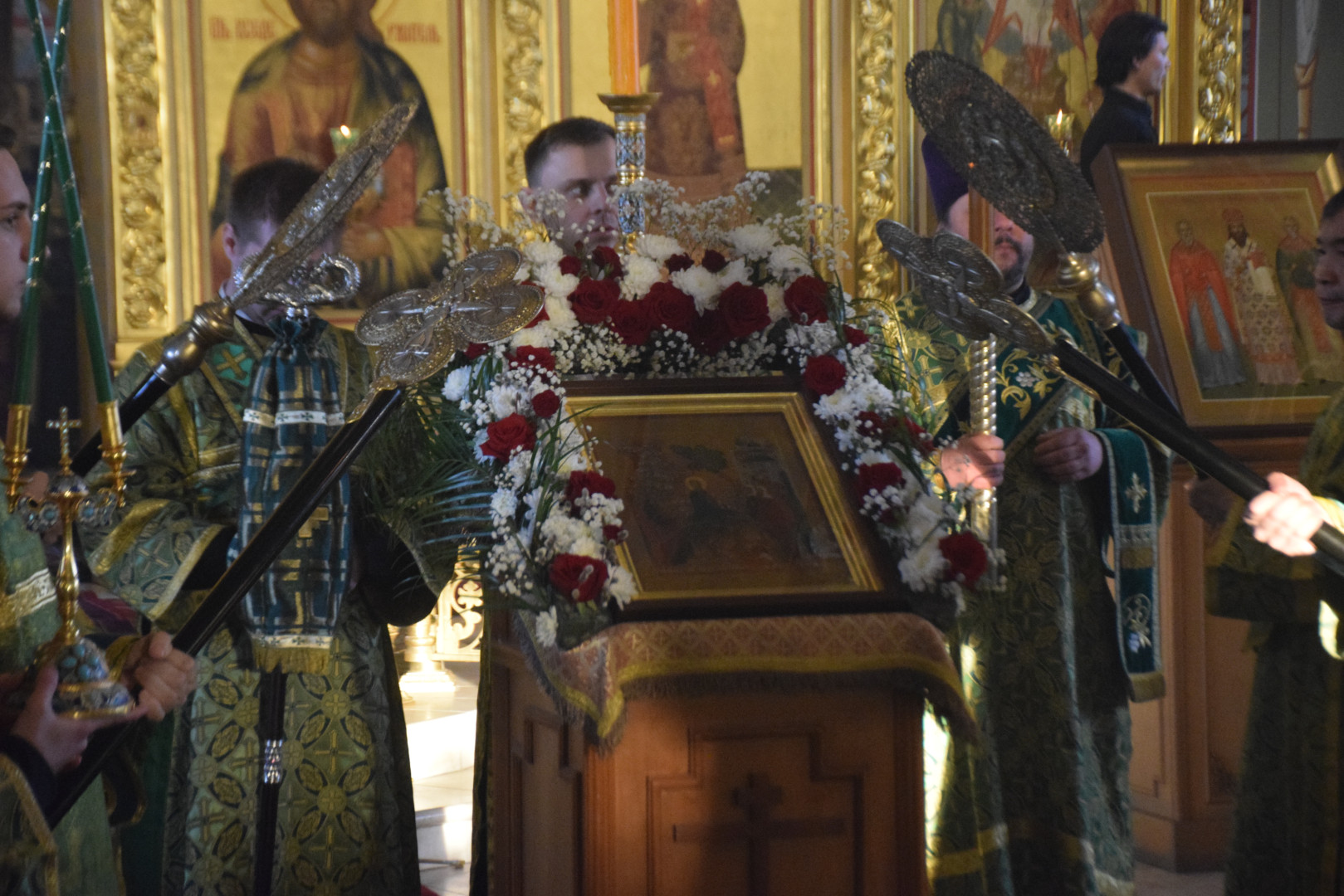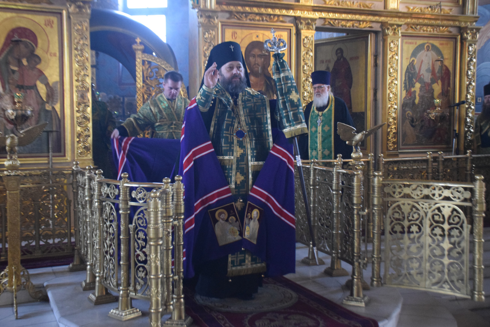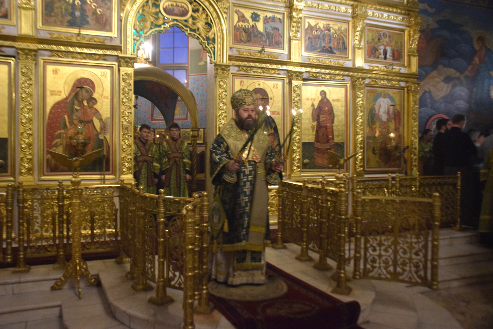 Архипастырю сослужили протоиереи Олег Попов, священники Павел Кузьмин, Николай Пугин и Евгений Девятов. Диаконский чин составили протодиакон Андрей Ермаков, диаконы Cергий Симонов, Владислав Бойченко и иеродиакон Нестор (Рыбин).