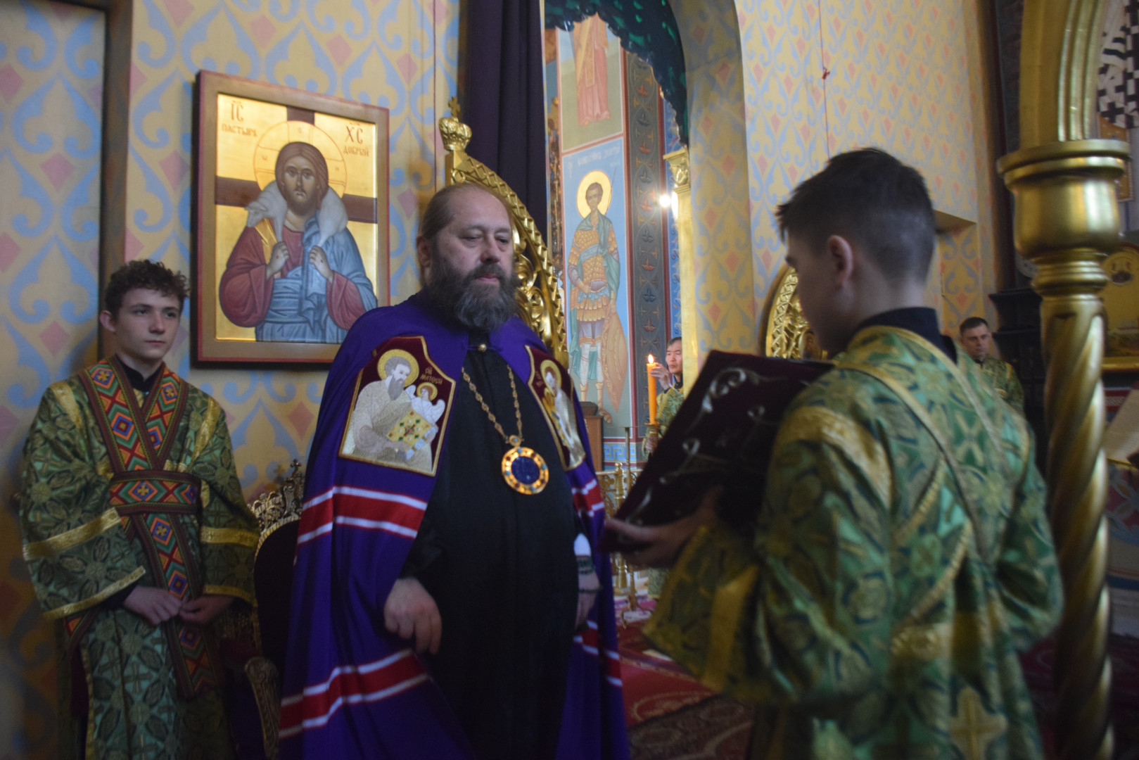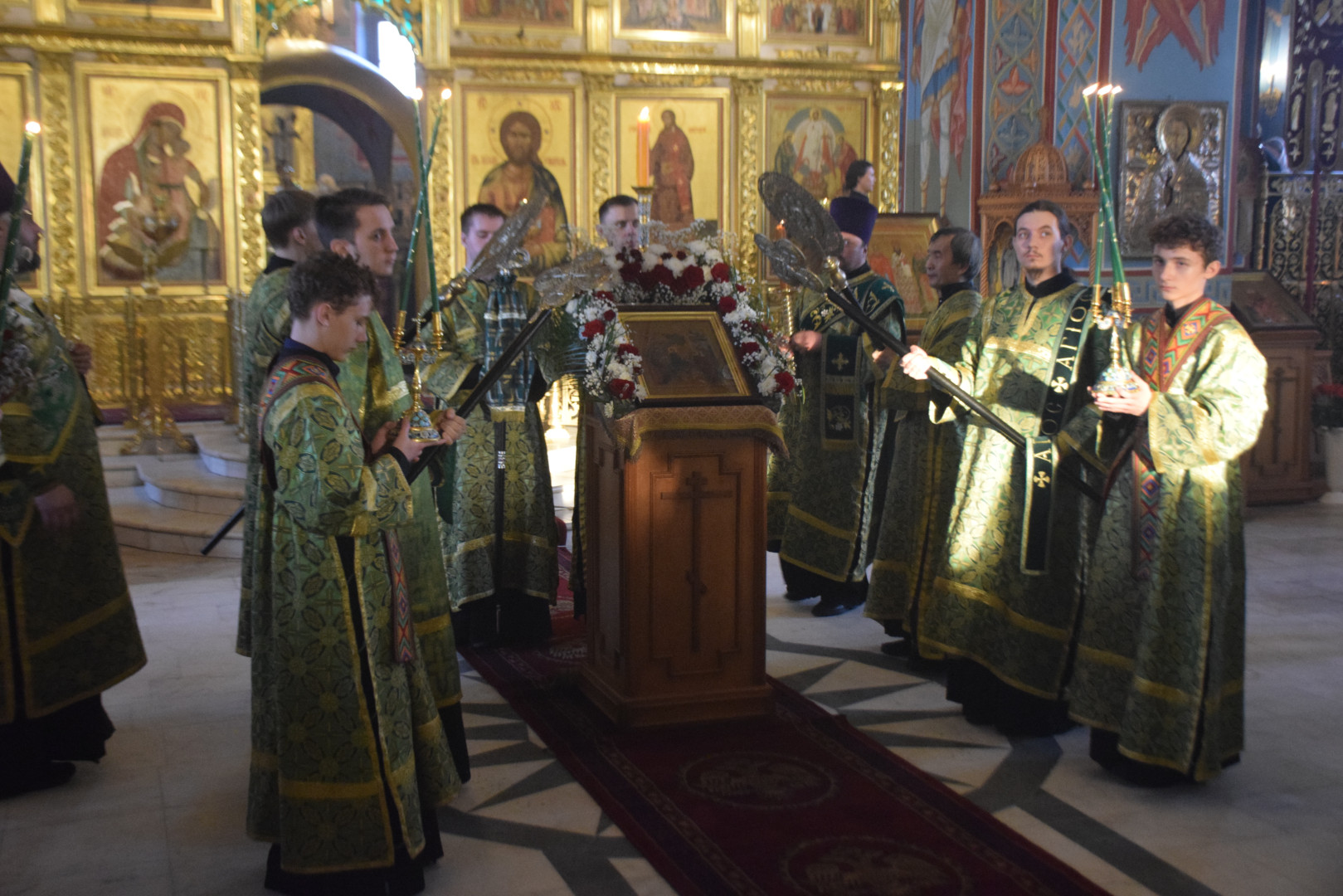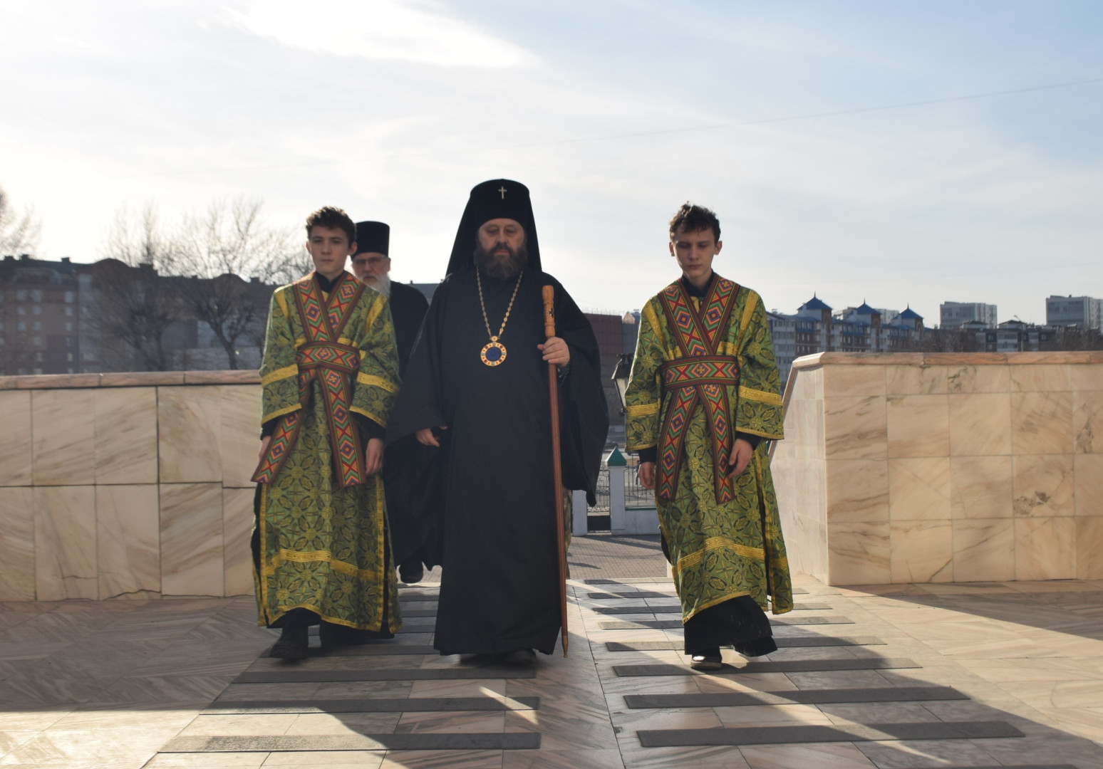 Архипастырю сослужили протоиереи Олег Попов, священники Павел Кузьмин, Николай Пугин и Евгений Девятов. Диаконский чин составили протодиакон Андрей Ермаков, диаконы Cергий Симонов, Владислав Бойченко и иеродиакон Нестор (Рыбин).