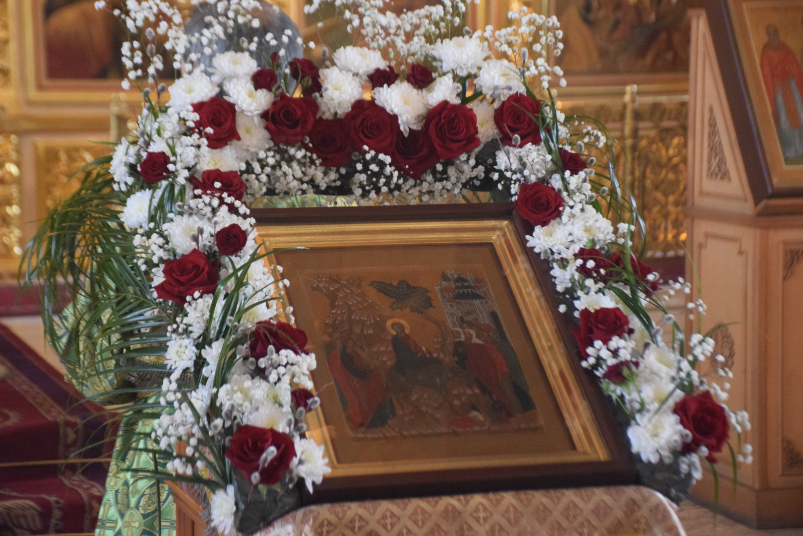 На полиелее прозвучало величание праздника: Величаем Тя, Живодавче Христе, осанна в вышних, и мы Тебе вопием: благословен Грядый во имя Господне.