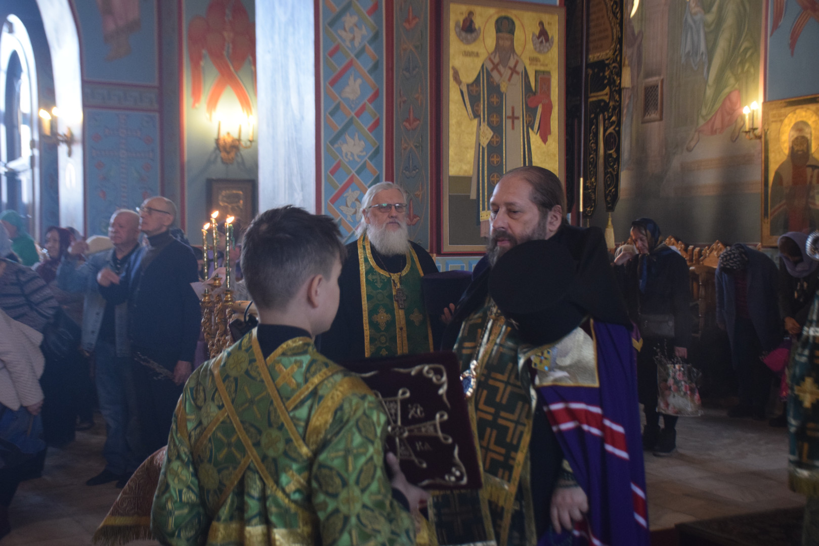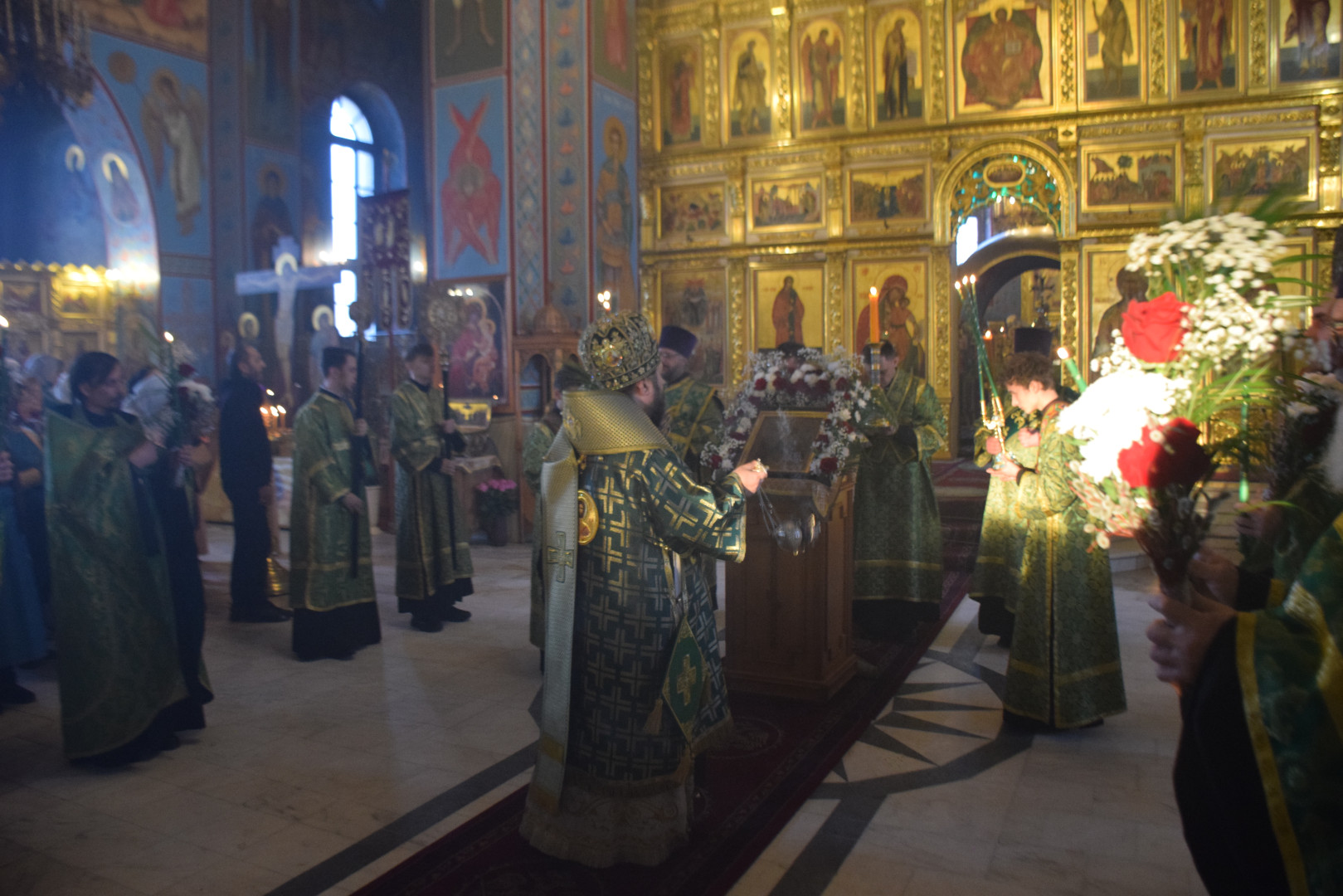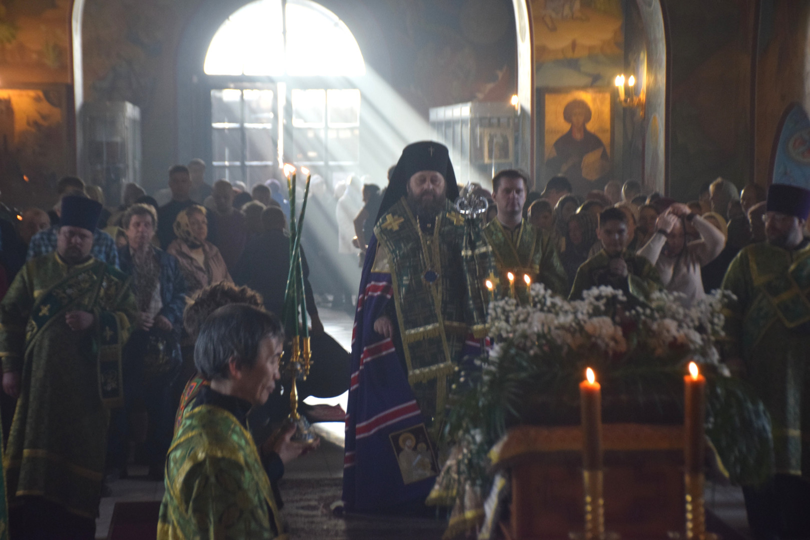 На чтении праздничного канона Преосвященный Владыка помазывал молящихся освященным елеем. Число подошедших к елеопомазанию составило 247 человек.