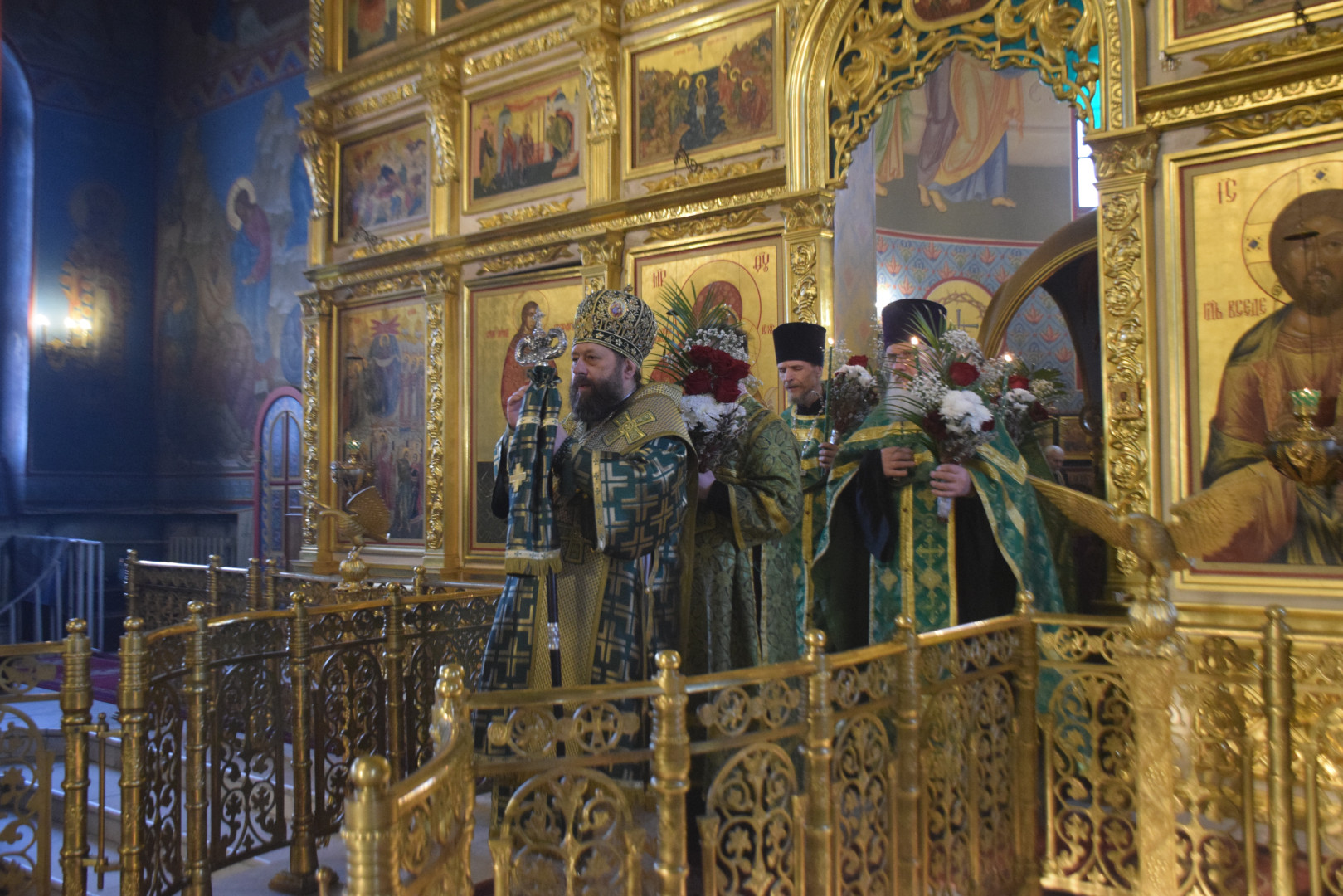4 апреля 2026 года, накануне праздника Входа Господня в Иерусалим, Недели цветоносной,(Вербного воскресенья), Преосвященный архиепископ Абаканский и Хакасский Ионафан совершил праздничное Всенощное бдение с литией и освящением хлебов в Спасо-Преображенском кафедральном соборе столицы Хакасии.