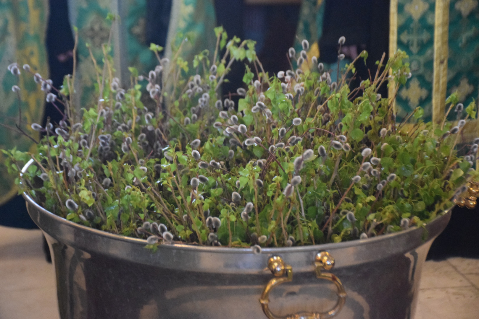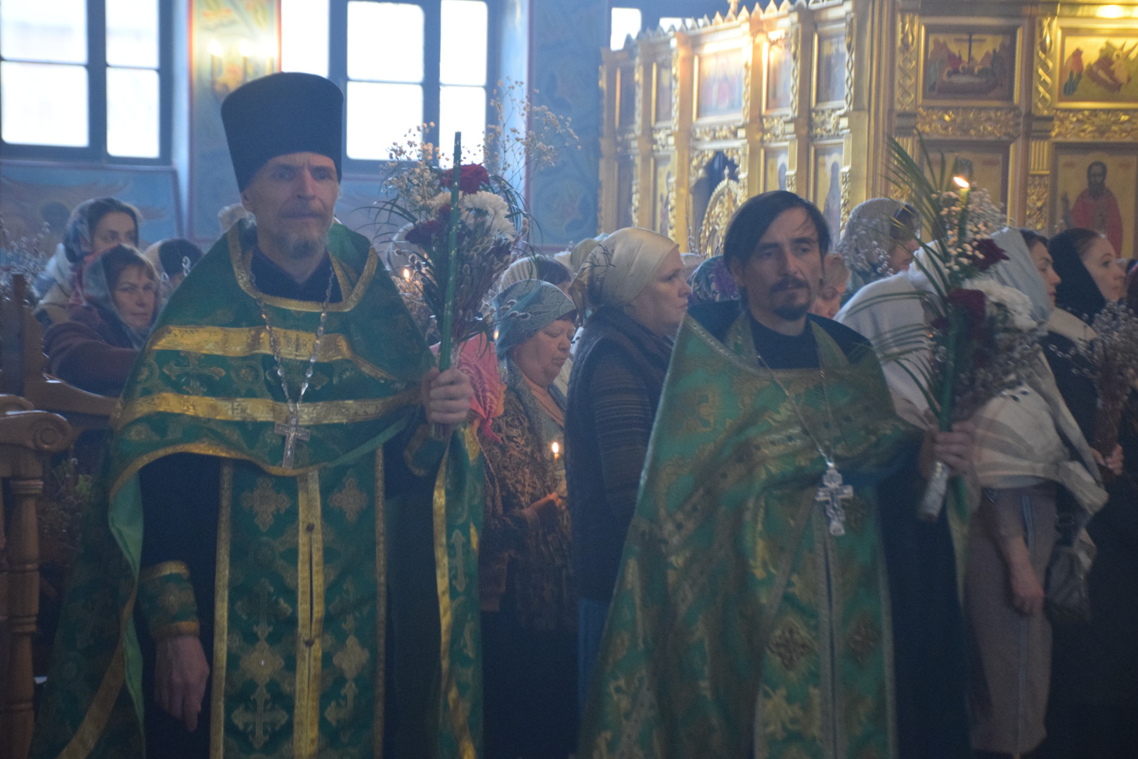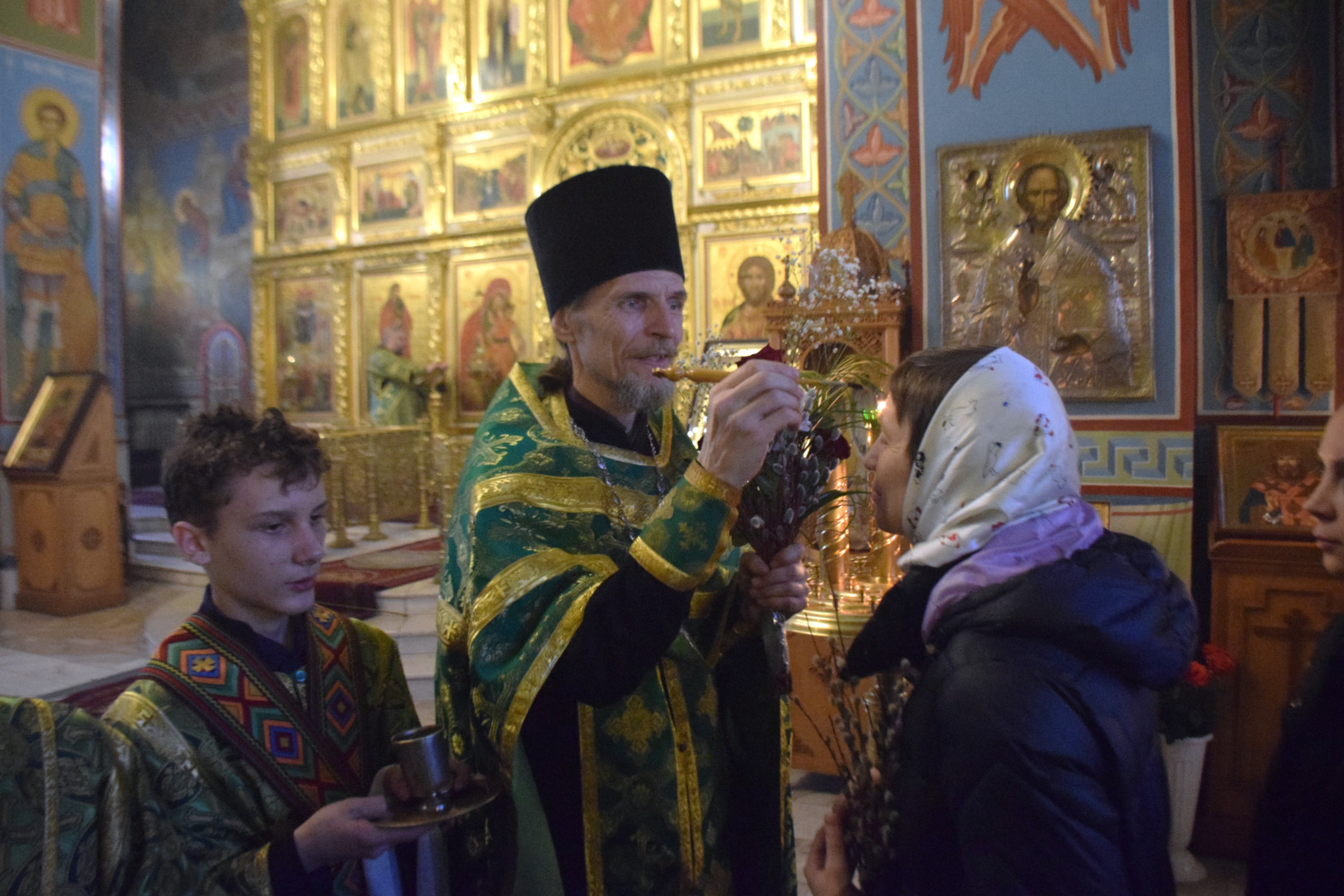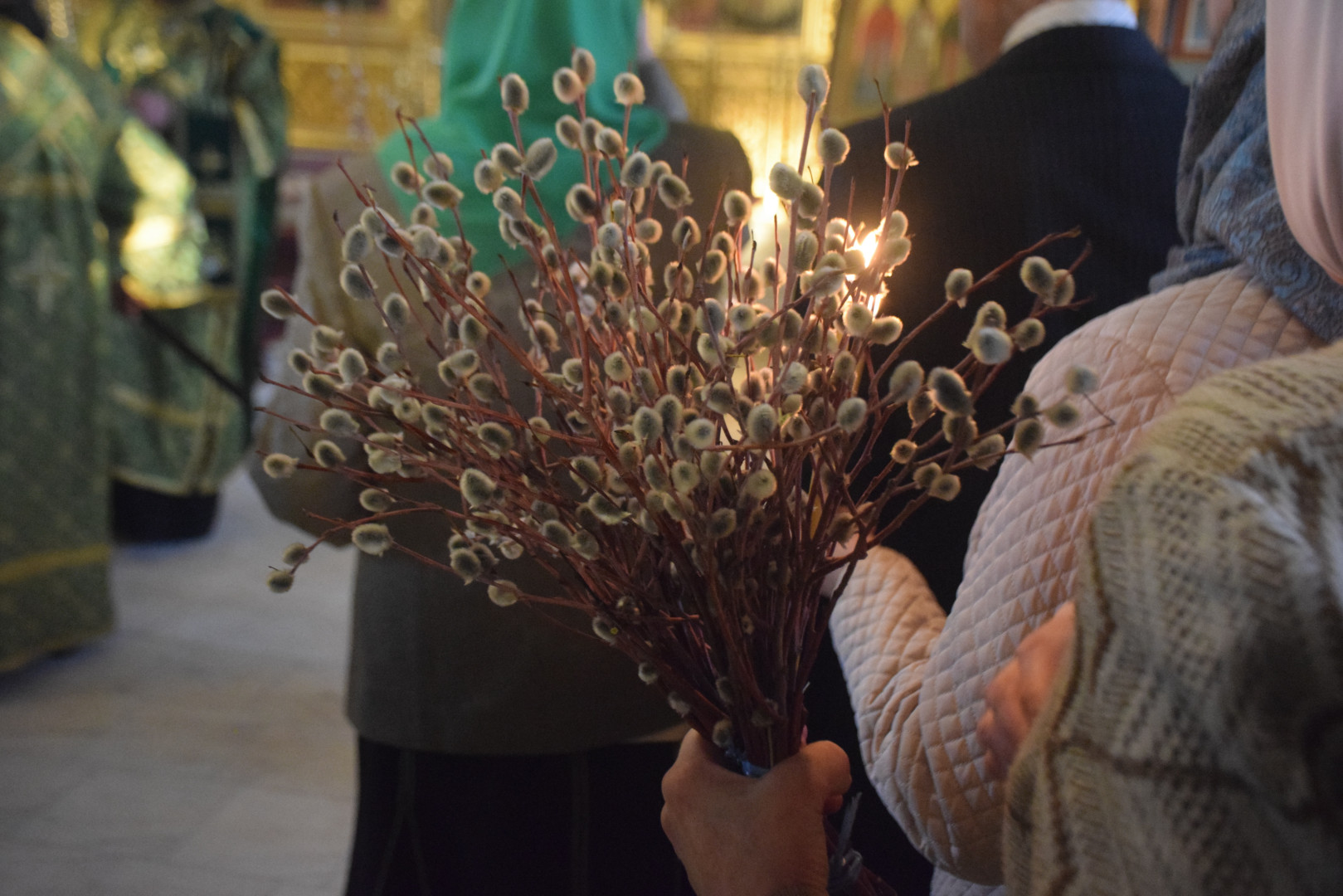 По прочтении Евангелия, согласно уставу, было совершено освящение верб.
