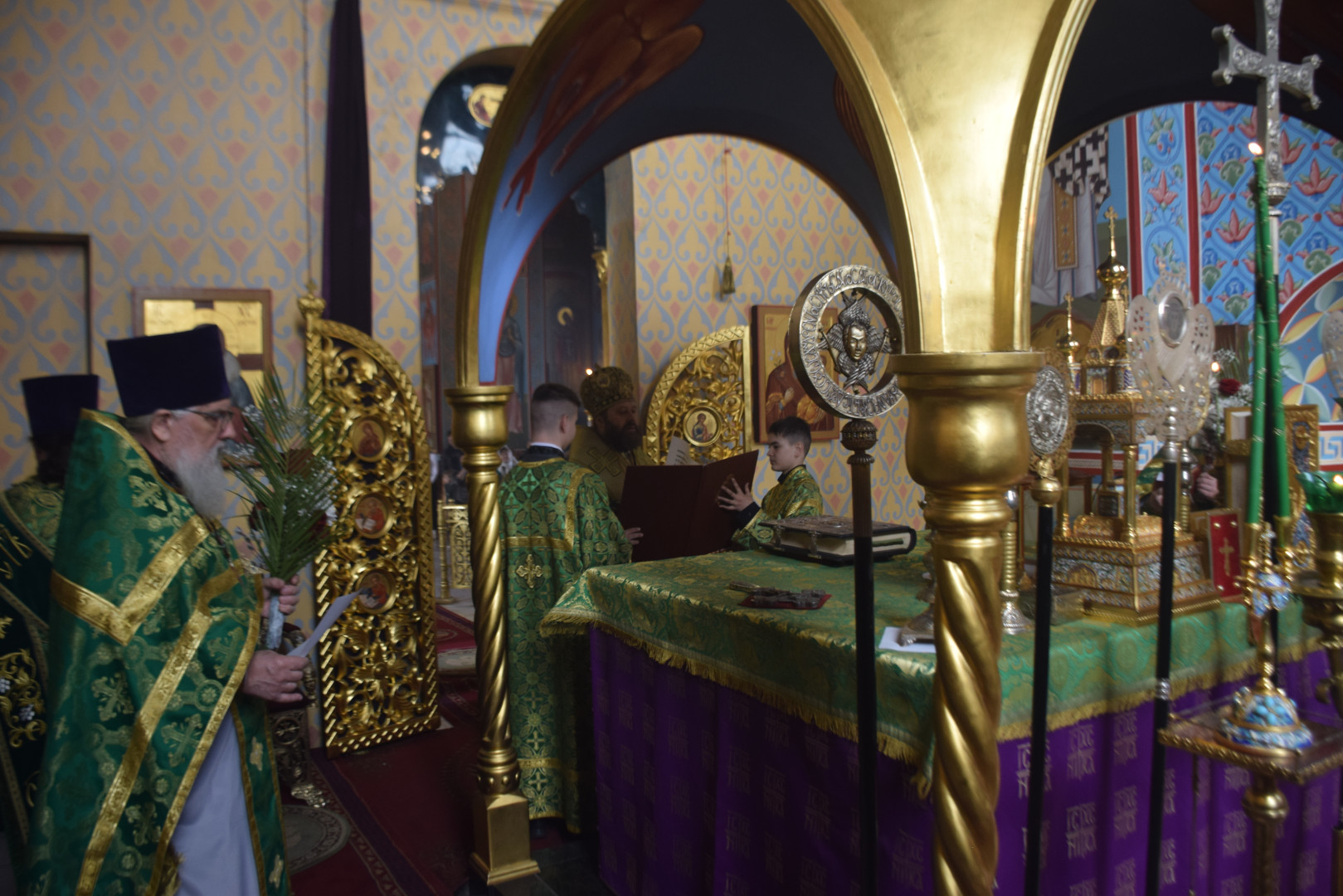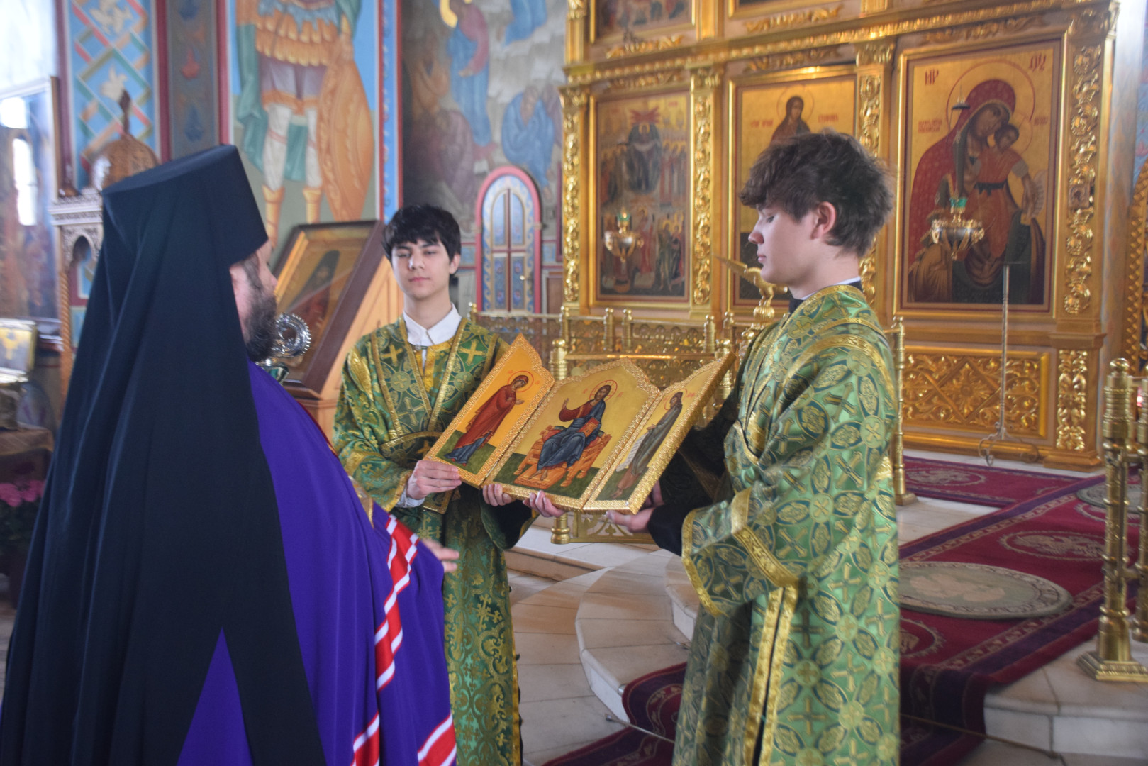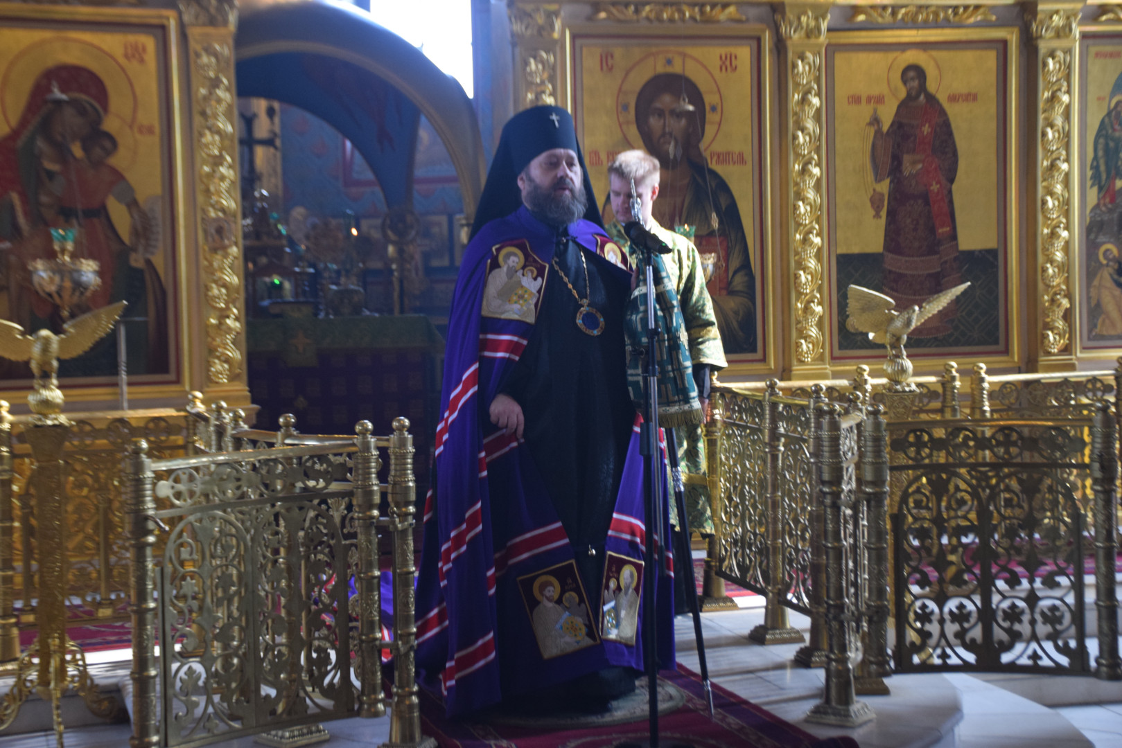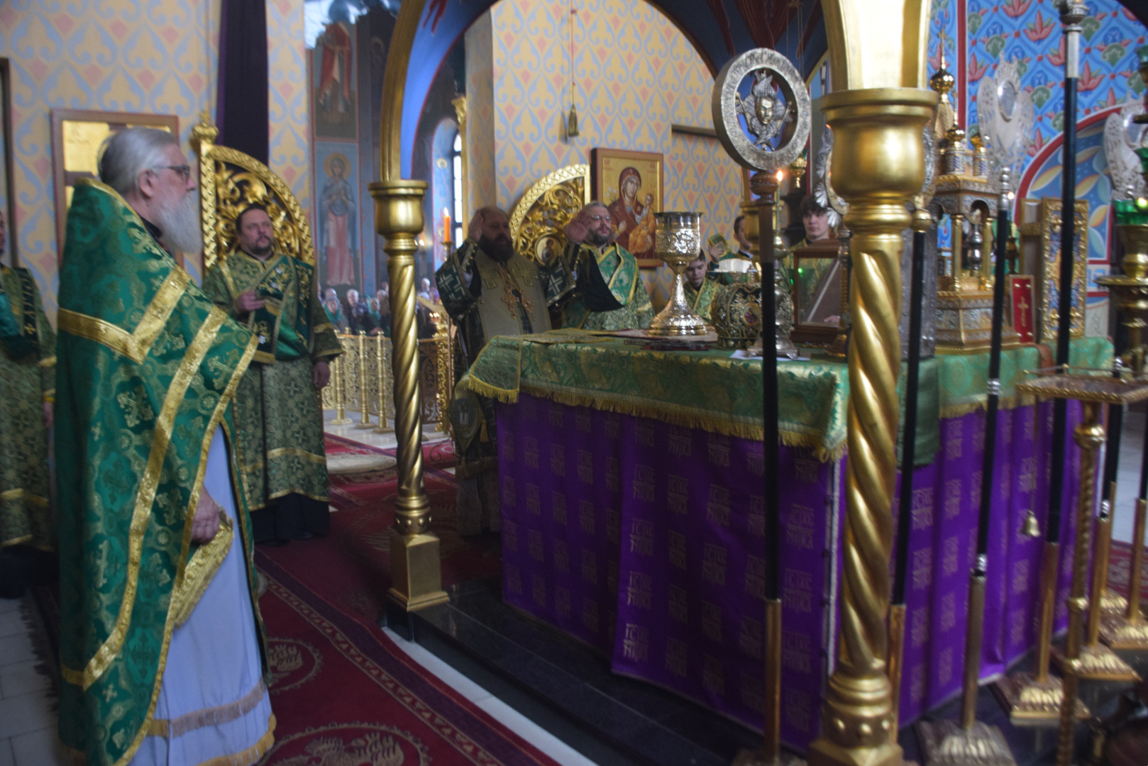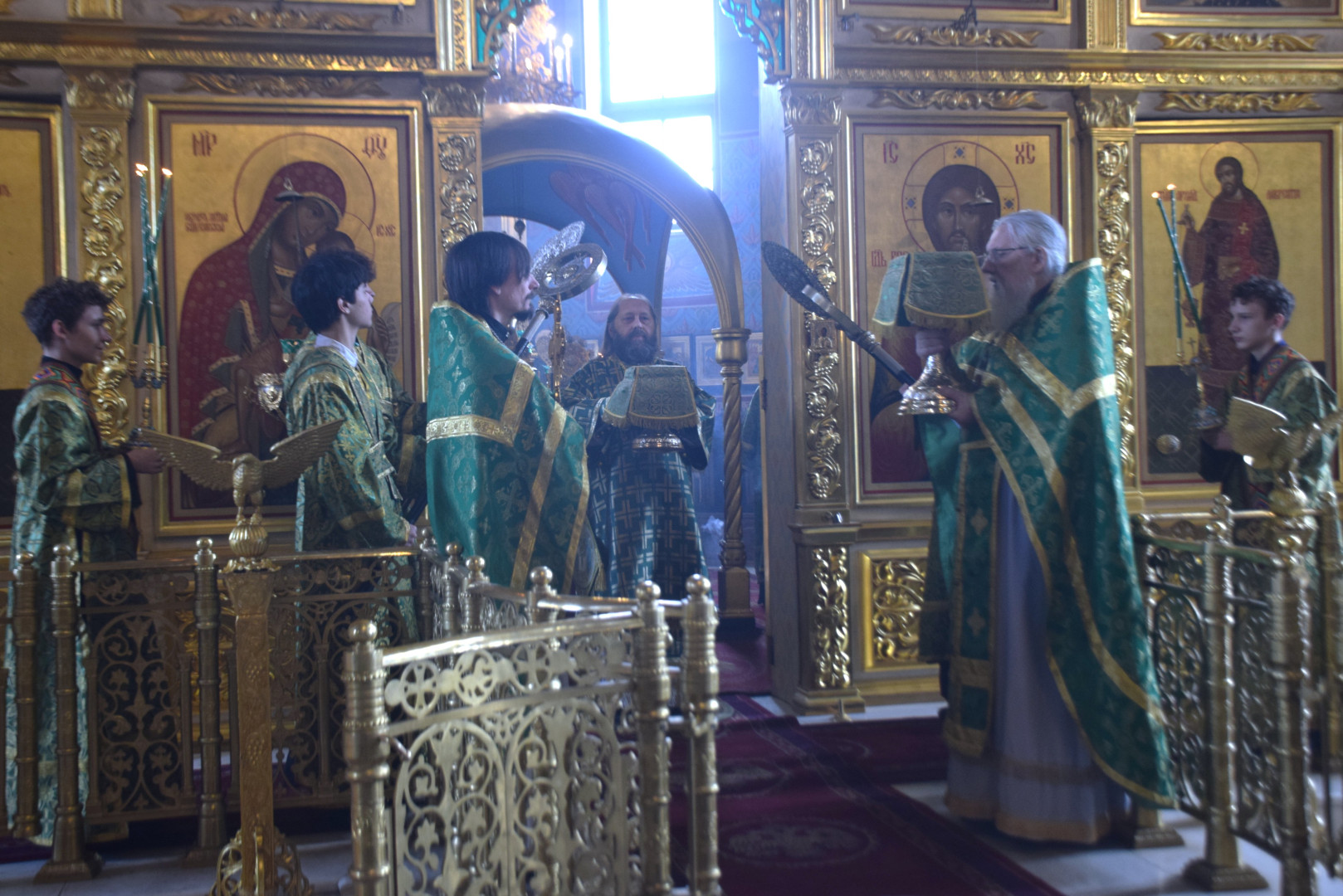 Владыке сослужили протоиерей Олег Попов и священник Николай Пугин. Диаконский чин составили протодиакон Андрей Ермаков, диаконы Сергий Симонов, Владислав Бойченко и иеродиакон Нестор (Рыбин). За Литургией пел архиерейский хор под управлением Марии Ермаковой.
