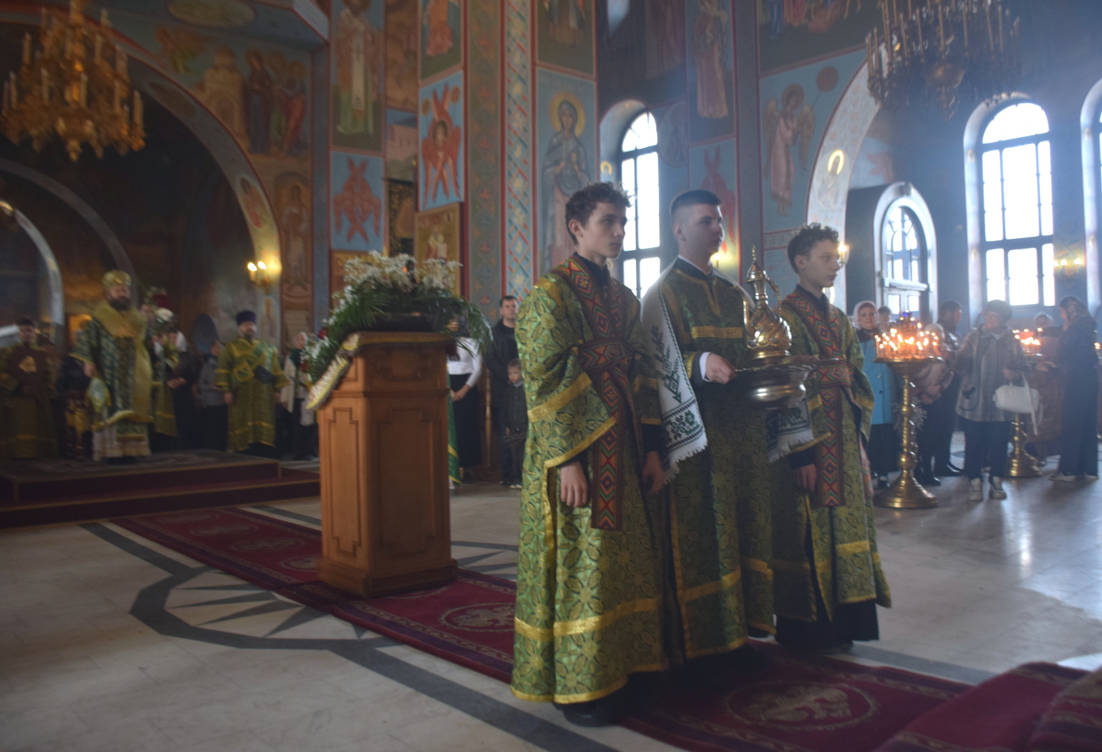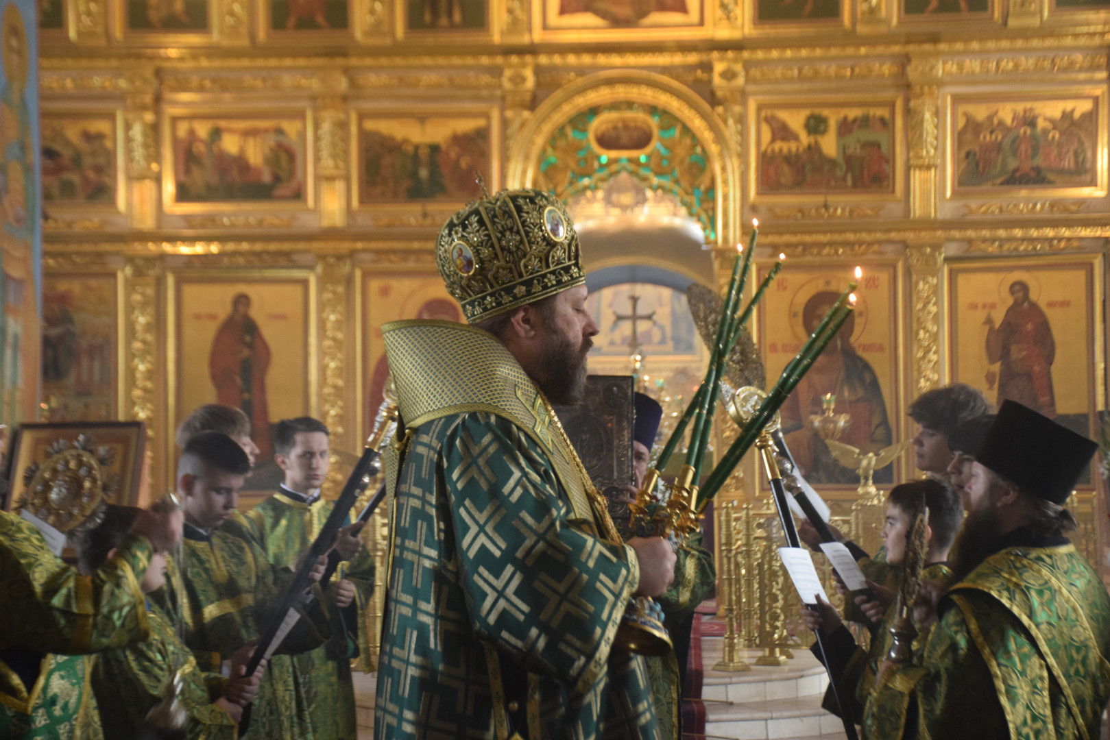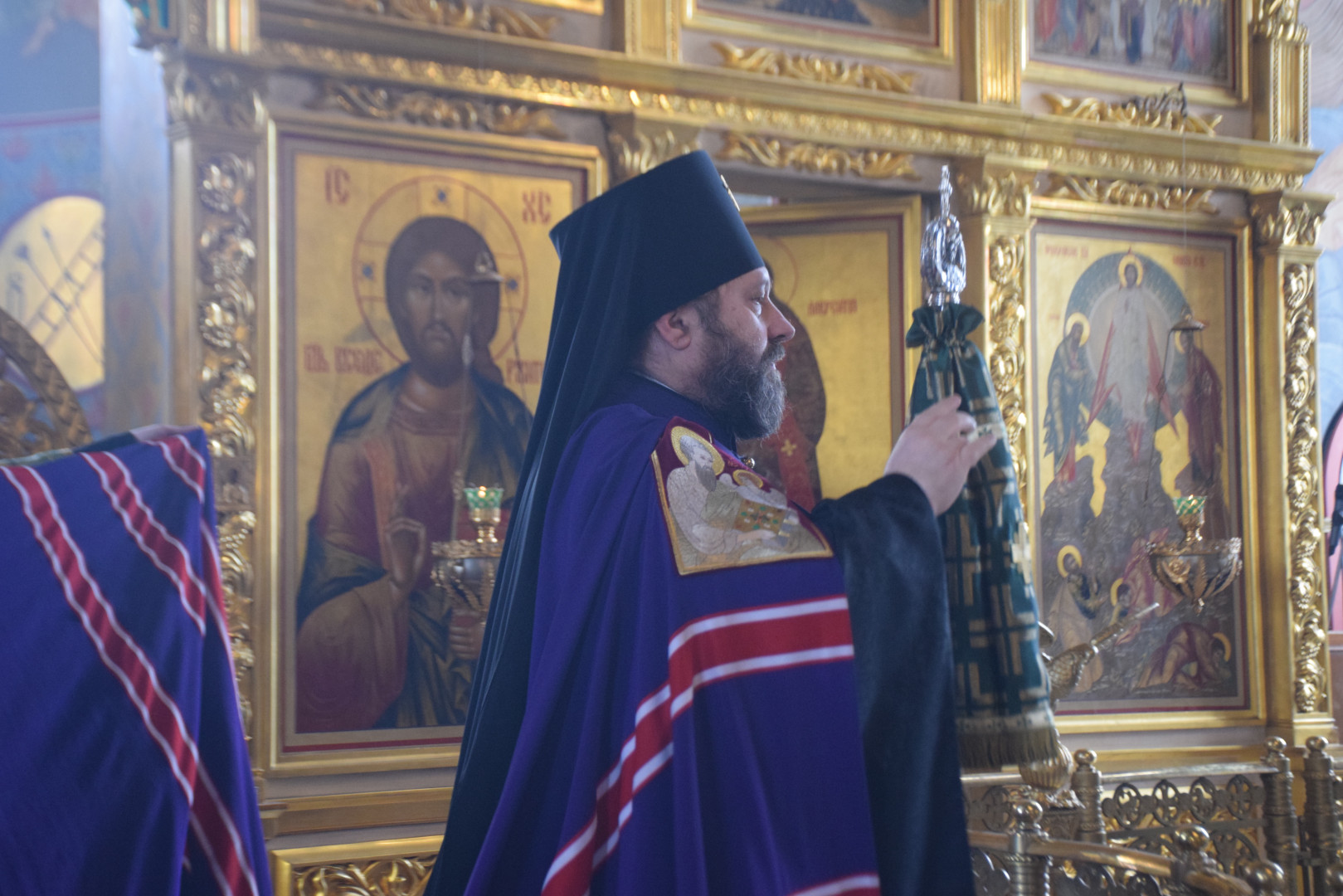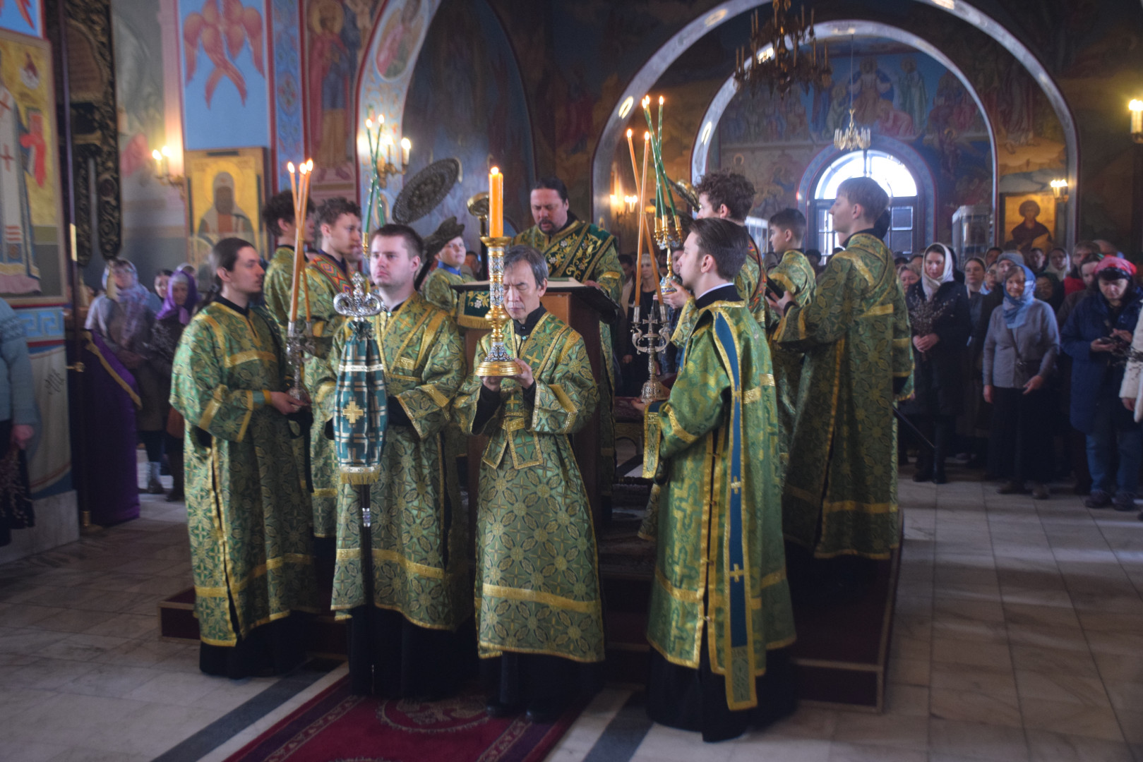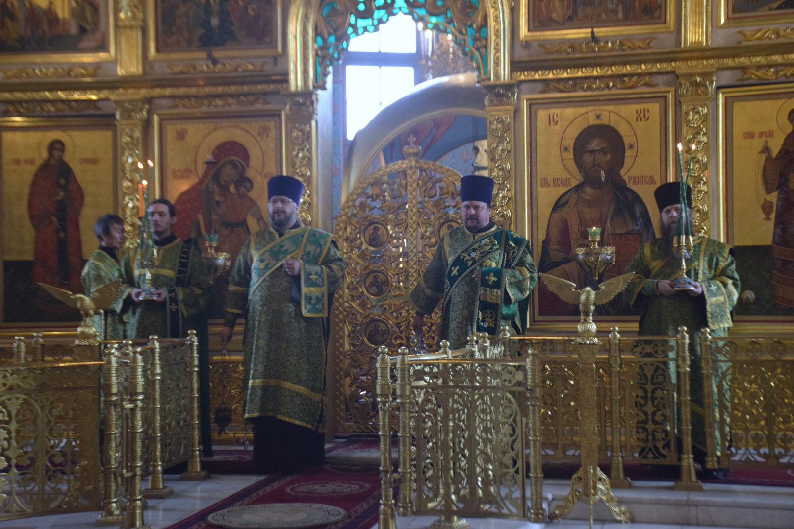 Владыке сослужили протоиерей Олег Попов и священник Николай Пугин. Диаконский чин составили протодиакон Андрей Ермаков, диаконы Сергий Симонов, Владислав Бойченко и иеродиакон Нестор (Рыбин). За Литургией пел архиерейский хор под управлением Марии Ермаковой.