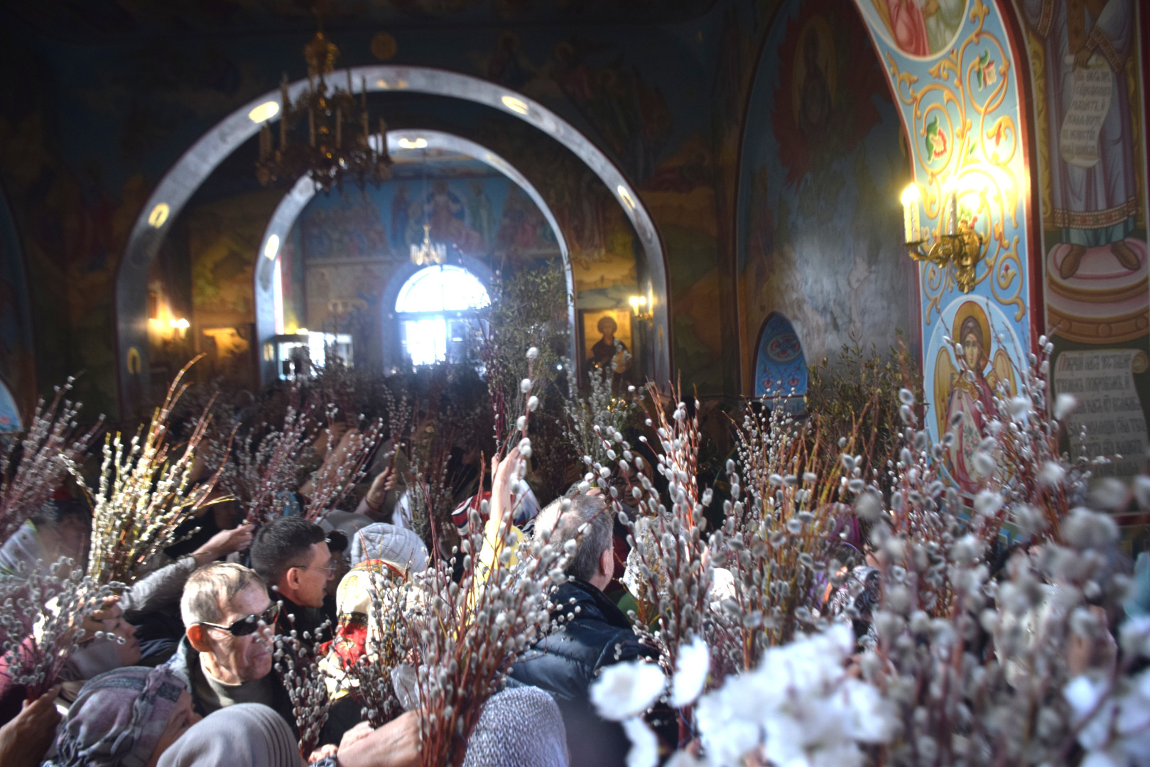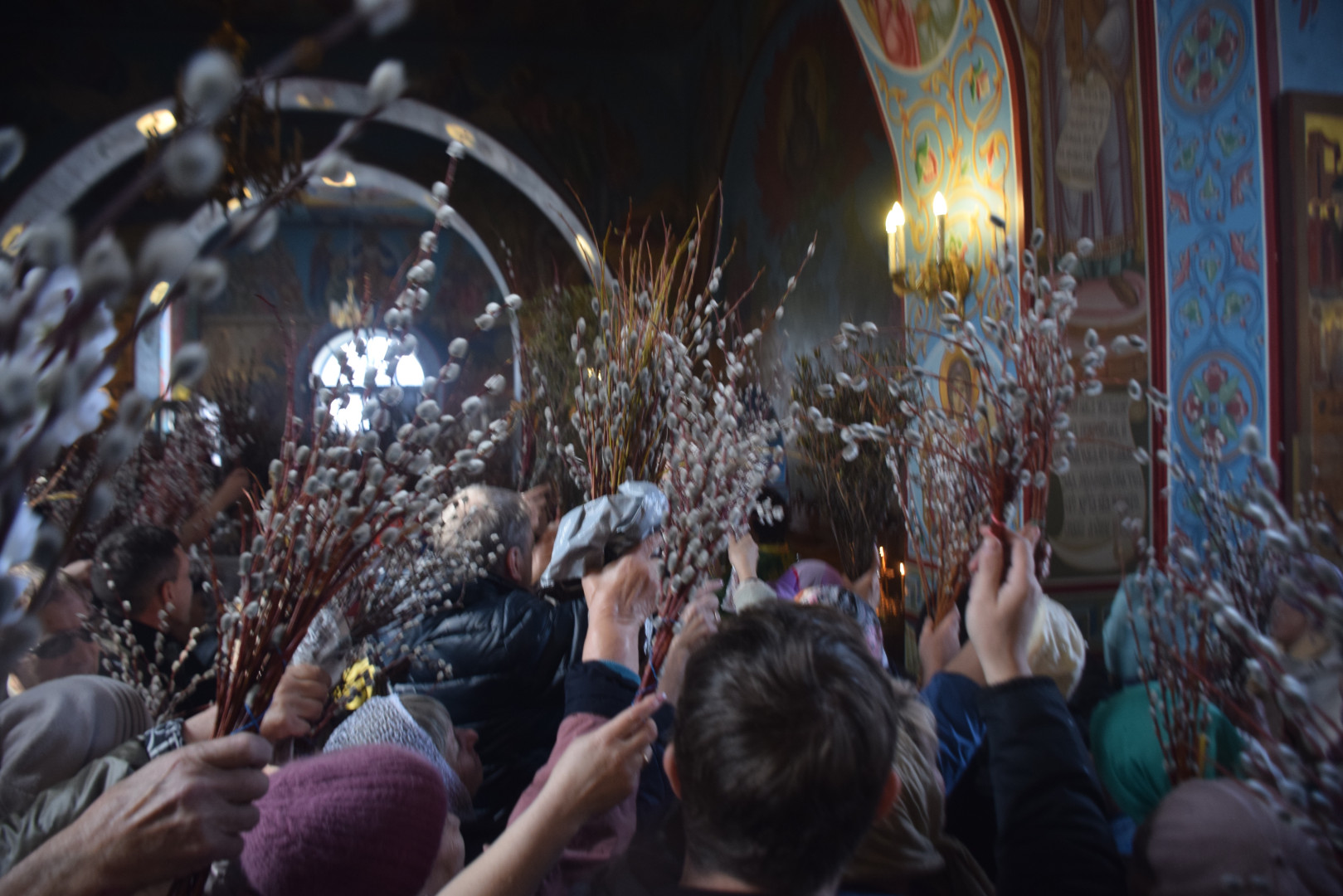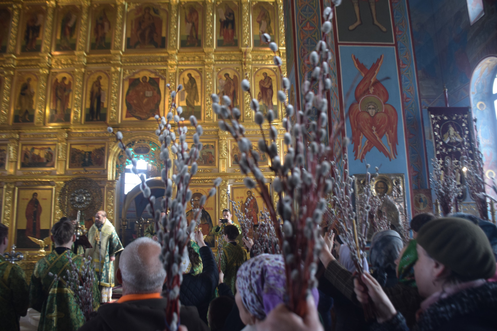 По заамвонной молитве был повторен, по традиции, чин освящения верб, полагающийся накануне на Всенощном бдении. По отпусте было совершено славление праздника.