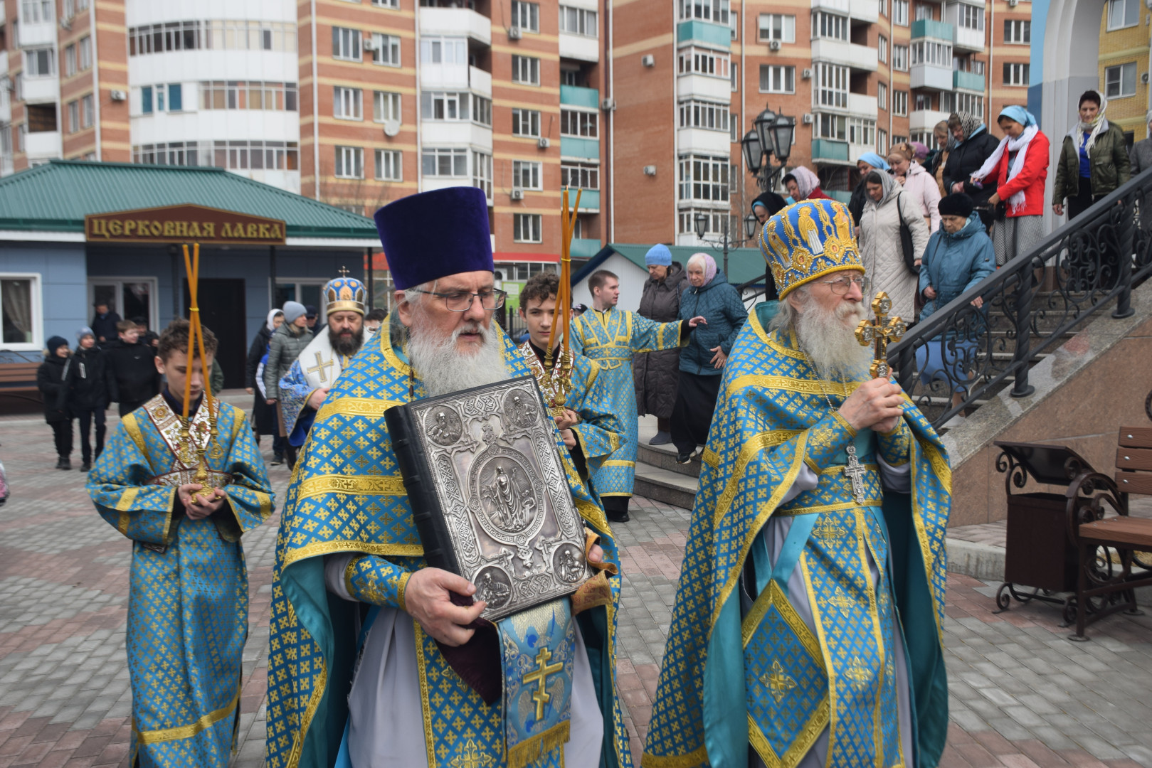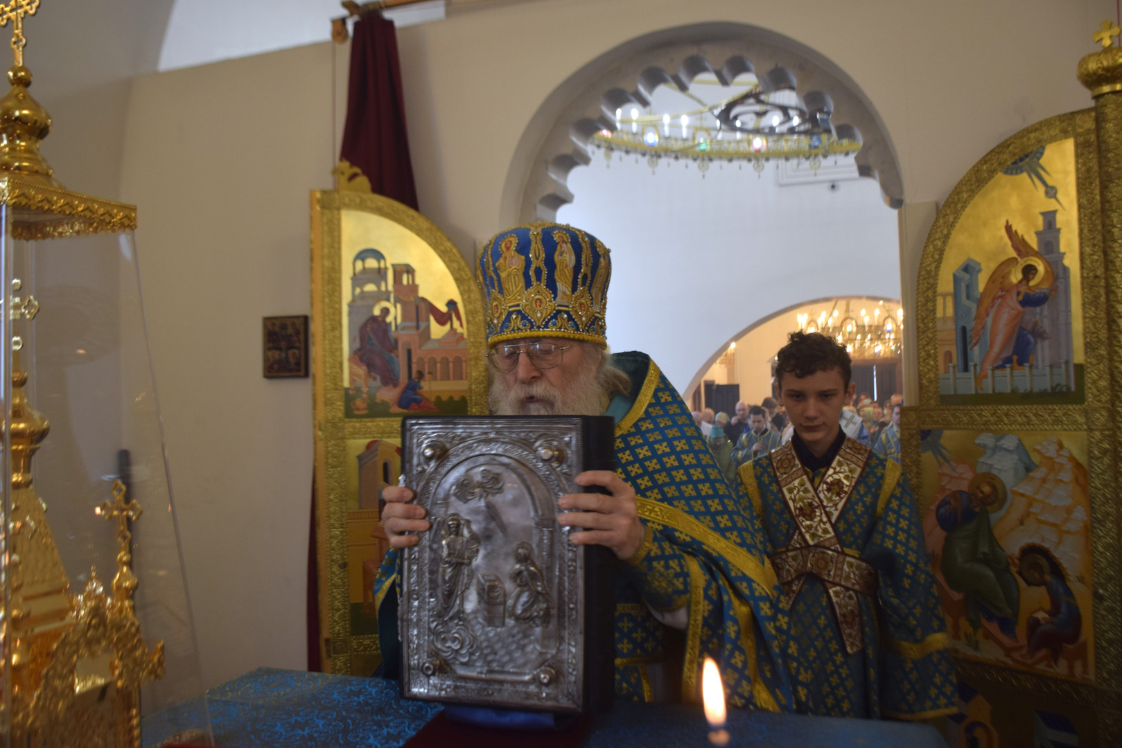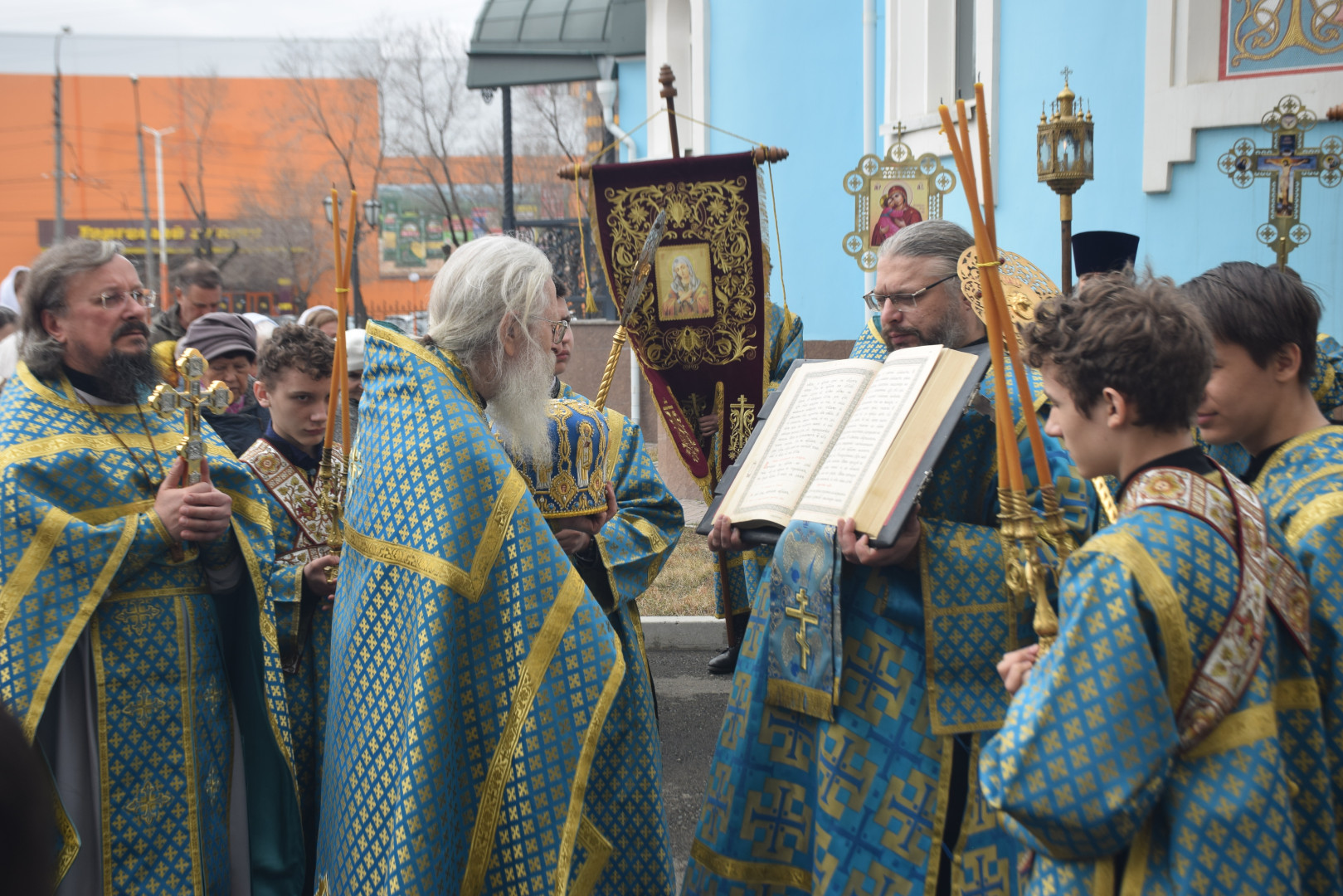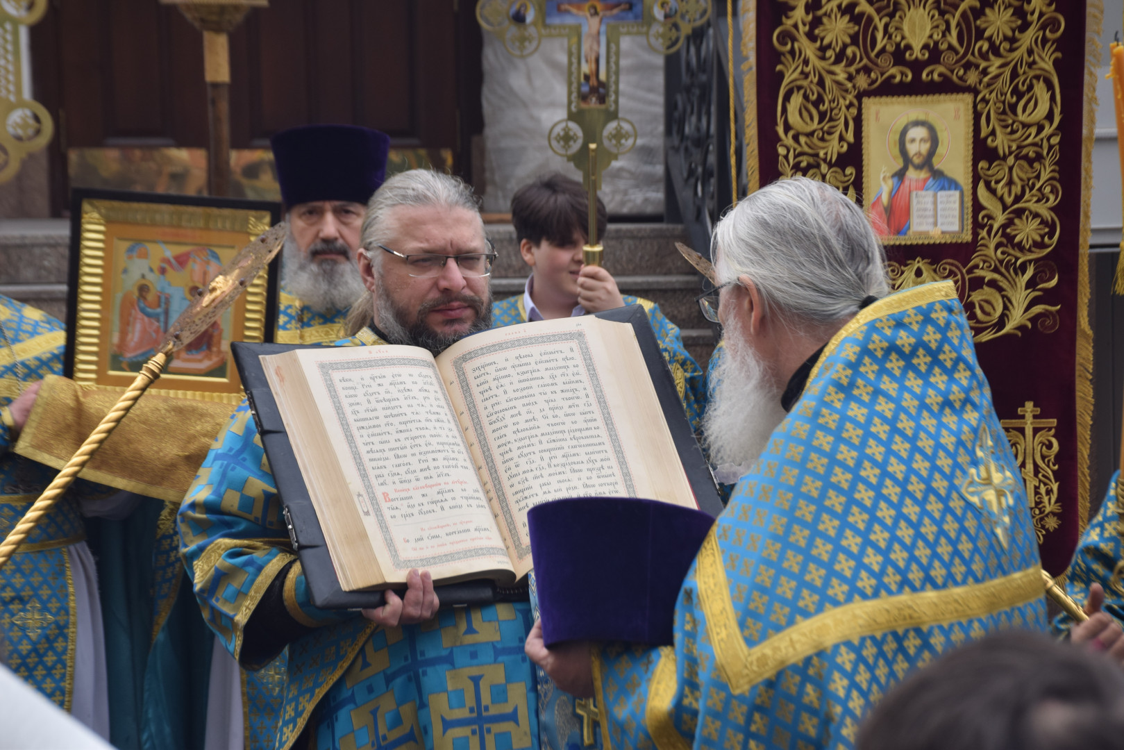 По заамвонной молитве был совершен крестный ход с иконой праздника. На четырех сторонах храма были прочитаны четыре Евангелия.