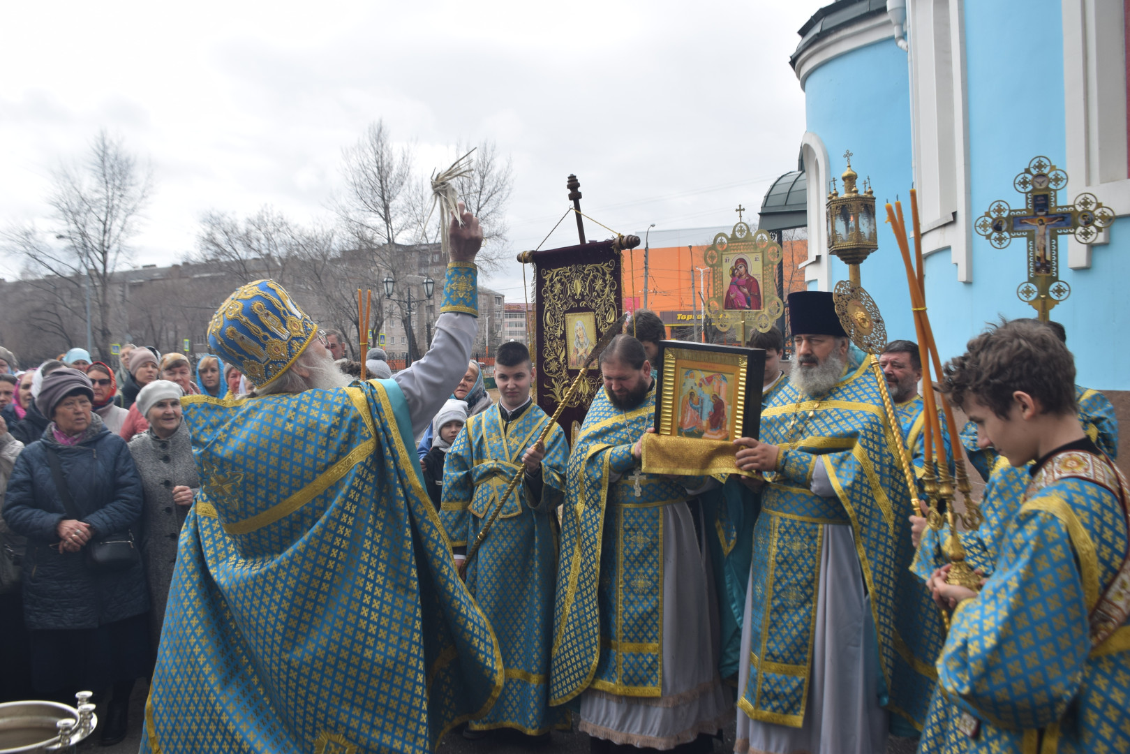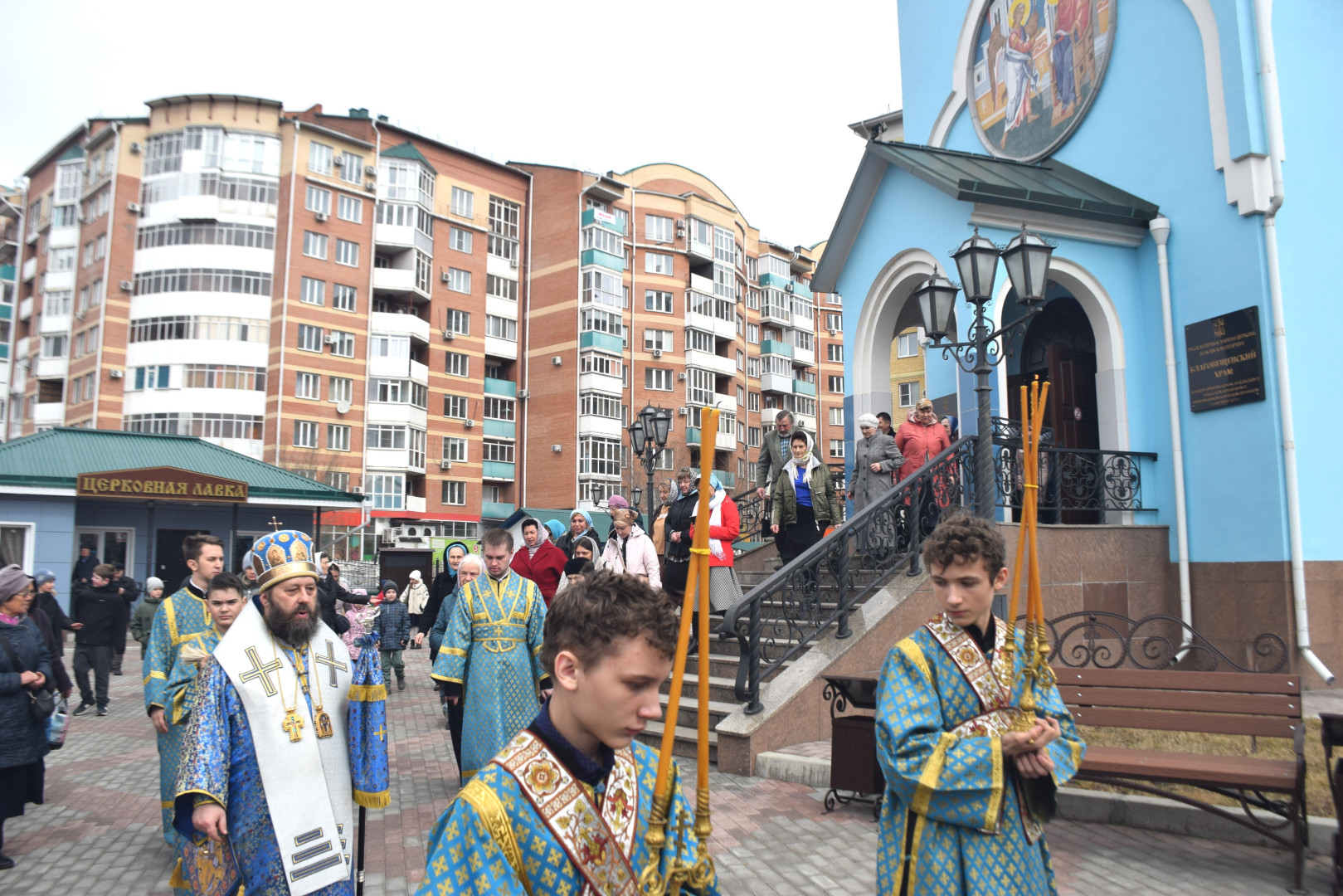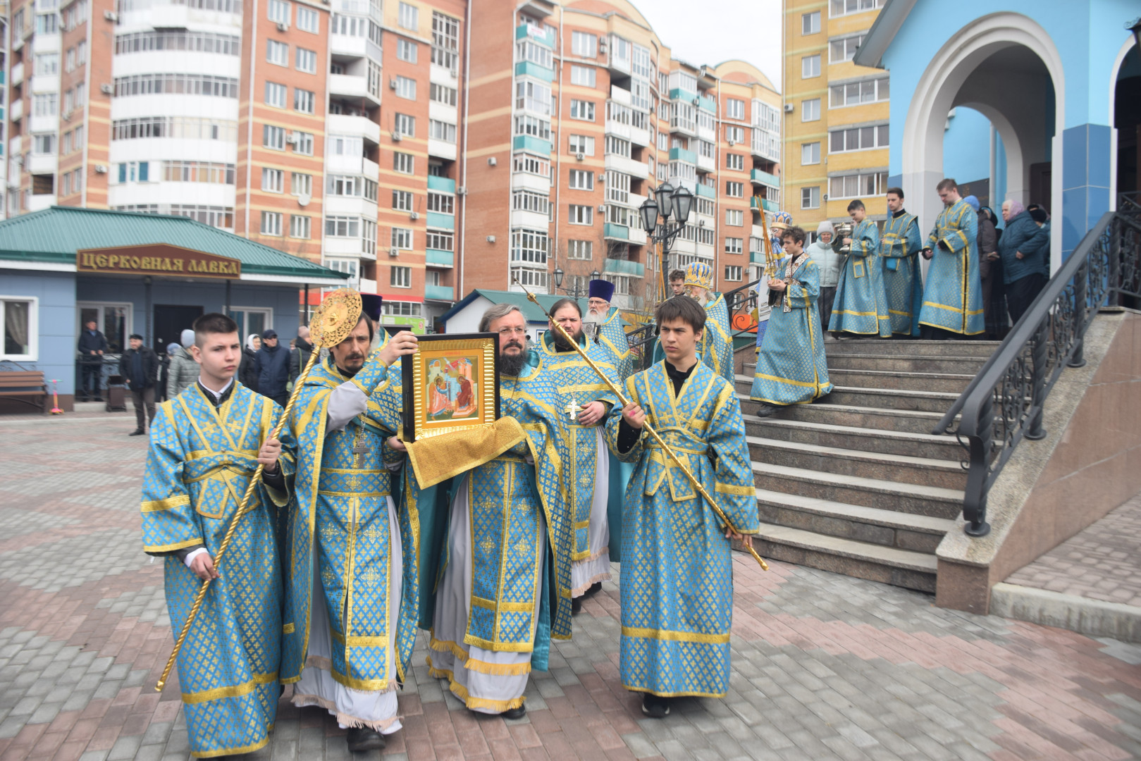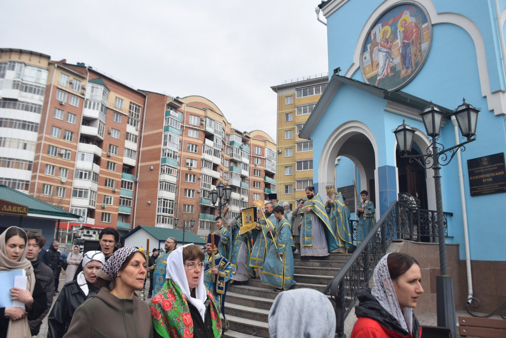 По заамвонной молитве был совершен крестный ход с иконой праздника. На четырех сторонах храма были прочитаны четыре Евангелия.
