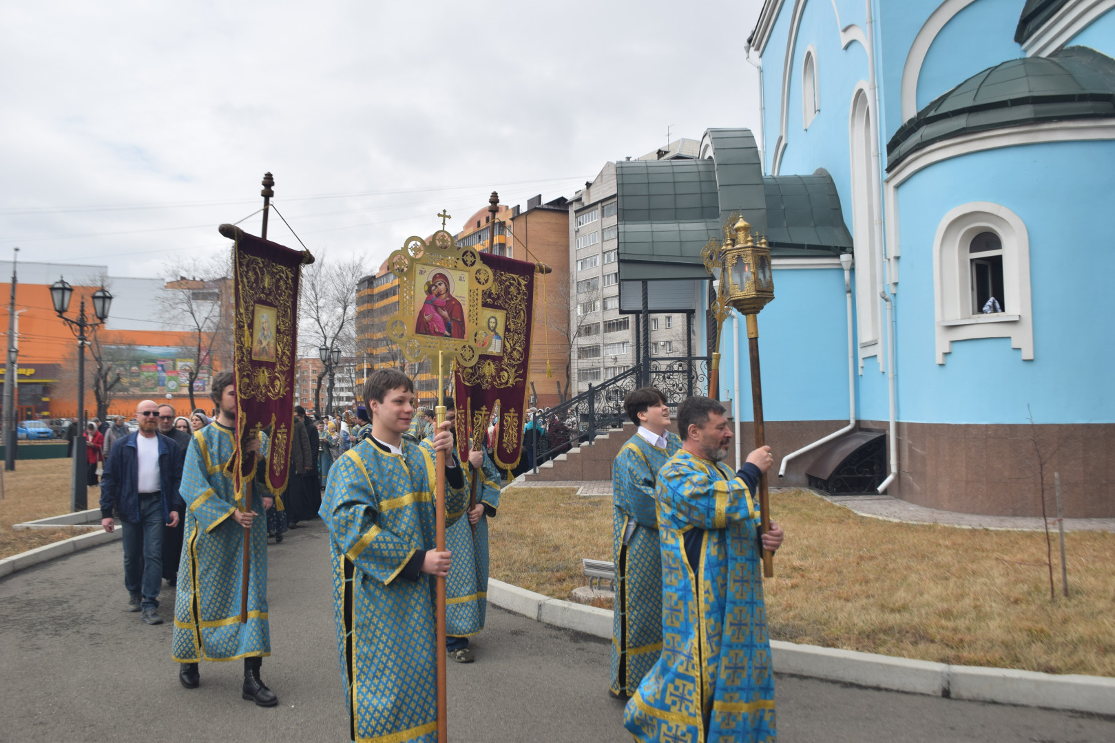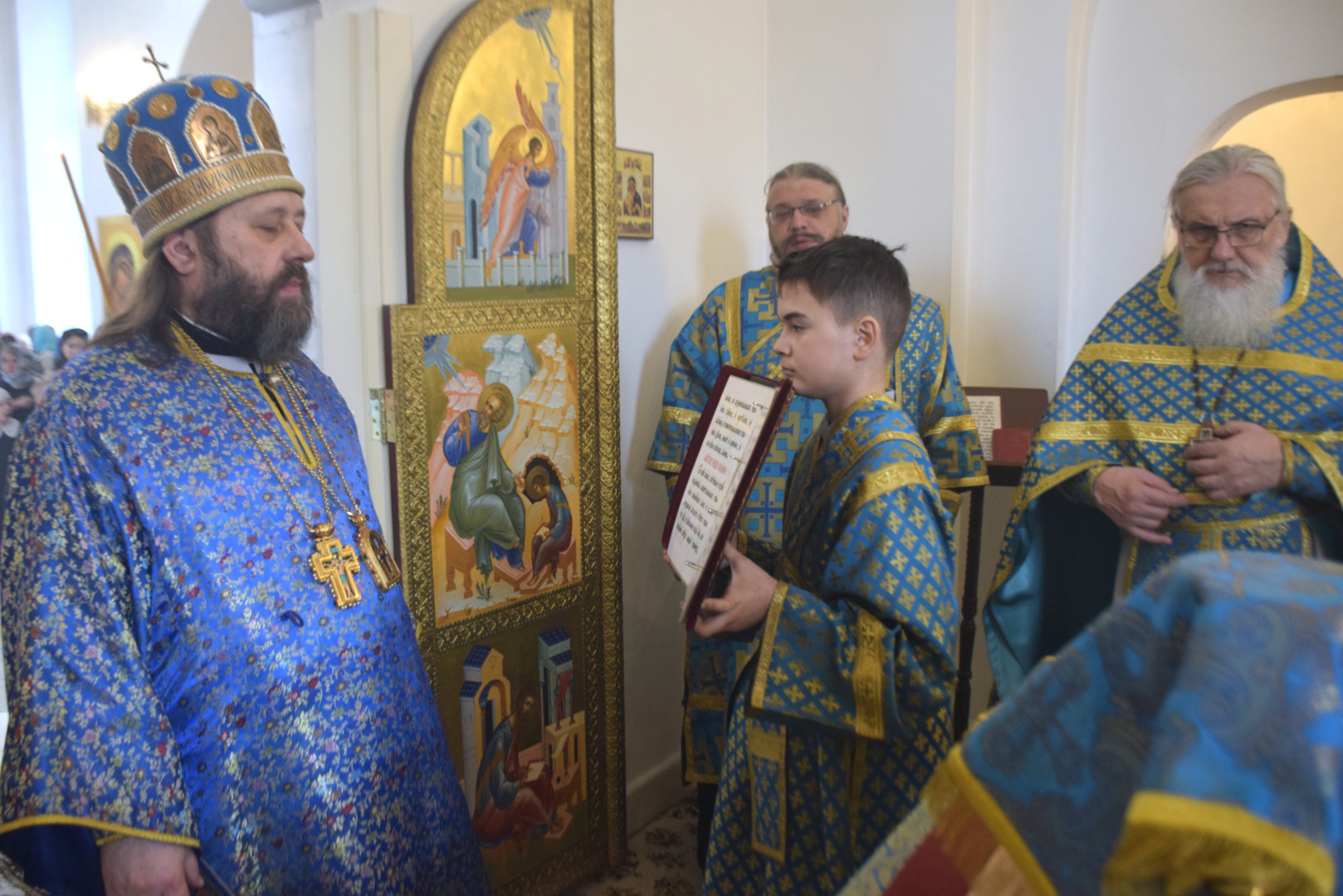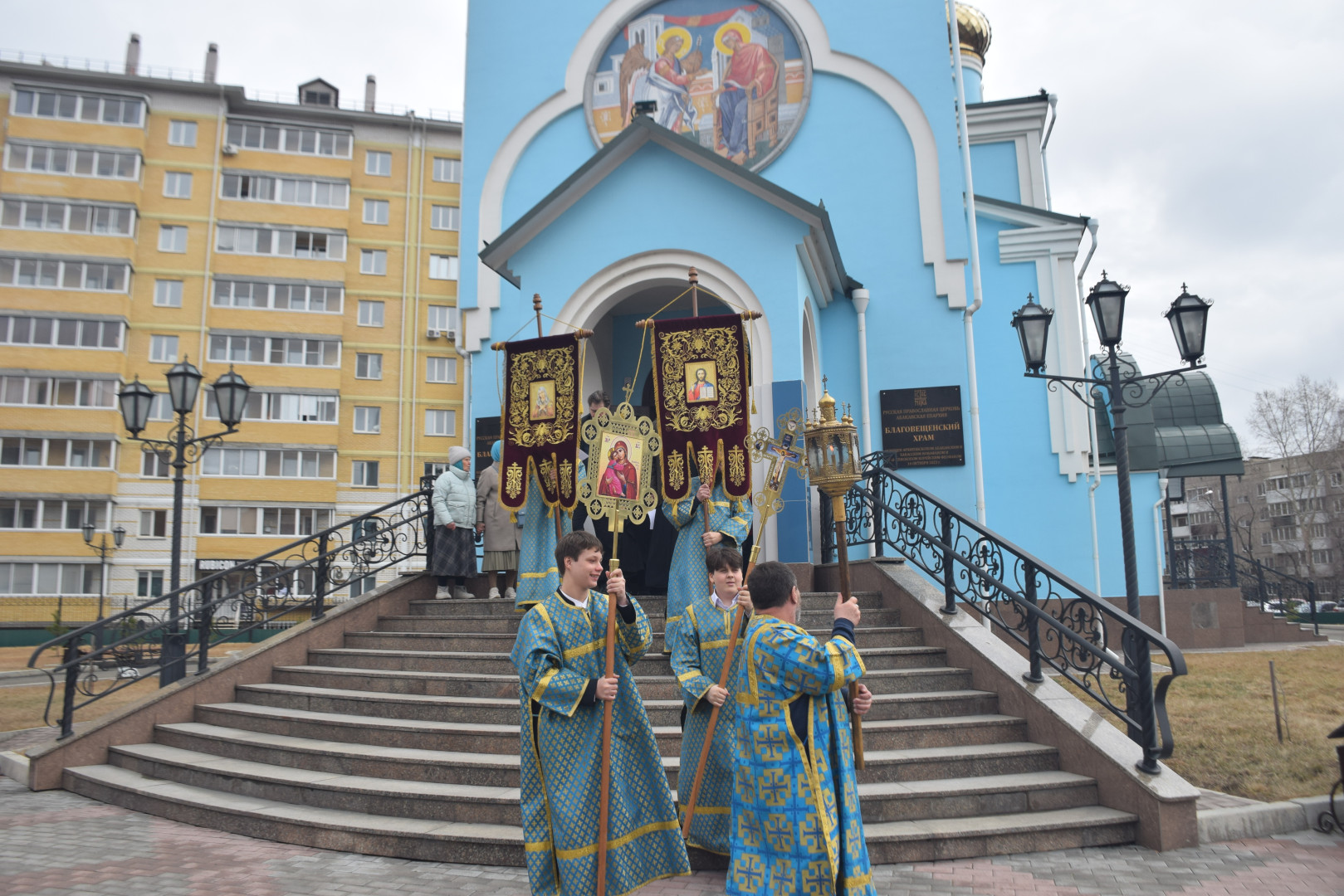 7 апреля 2026 года, в Великий Вторник, в день праздника Благовещения Пресвятой Богородицы, Преосвященный архиепископ Абаканский и Хакасский Ионафан возглавил совершение Божественной Литургии святителя Иоанна Златоуста в Благовещенском храме столицы Хакасии.