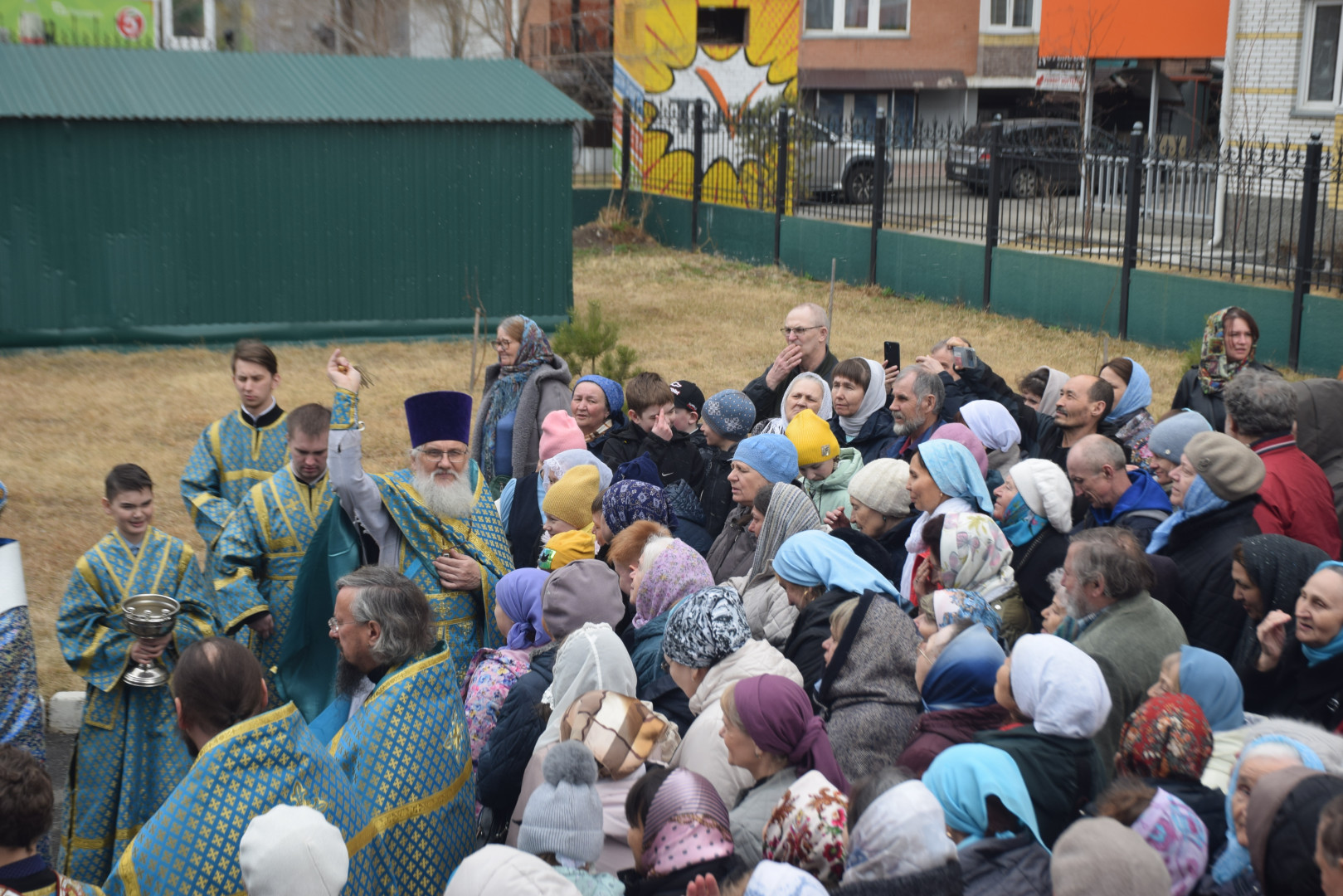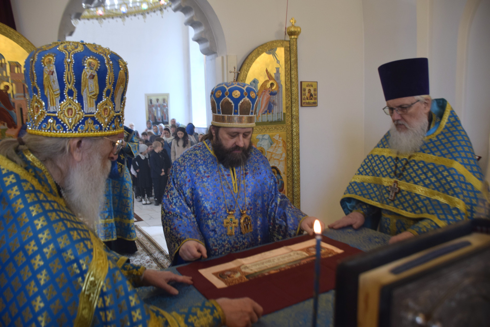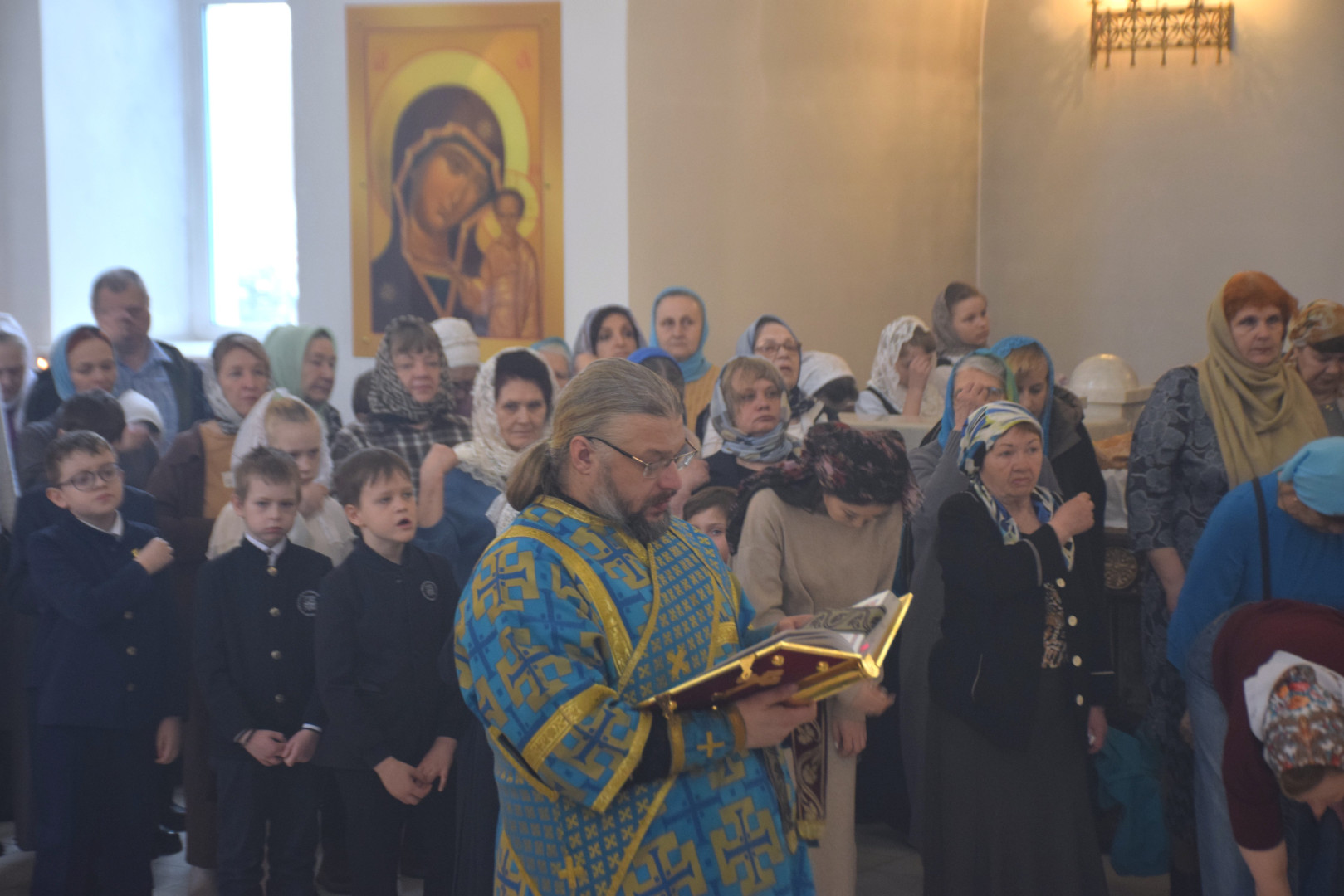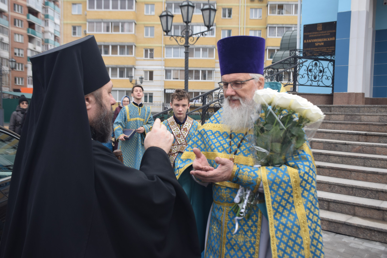 Богослужение завершилось возглашением многолетий Святейшему Патриарху Московскому и всея Руси Кириллу, Правящему архиерею, Богохранимой стране нашей, строителям и благоукрасителям храма и всем православным христианам.