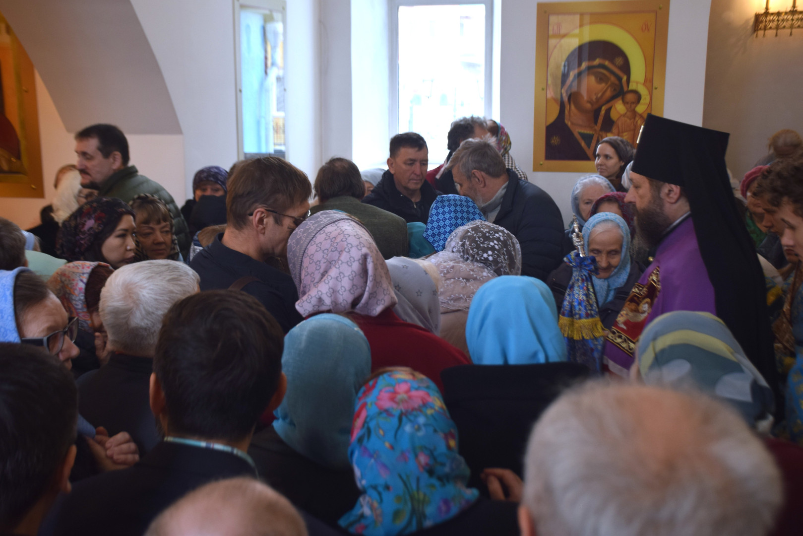Завершая богослужение, Управляющий епархией поздравил всех присутствующих и рассказал о смысле и значении празднуемого события. Архипастырь напомнил также историю строительства храма и поблагодарил руководство города Абакана, строителей и приходской актив за труды.