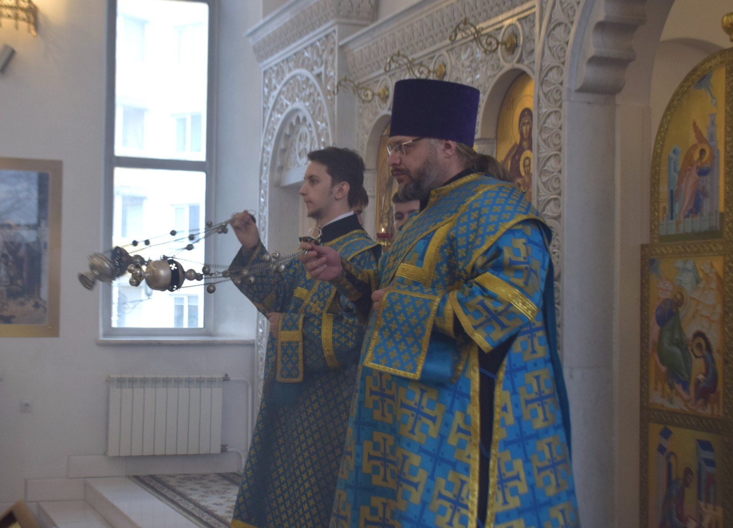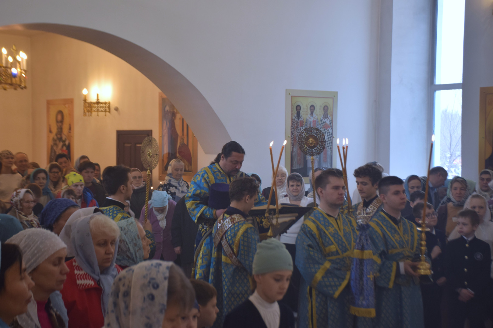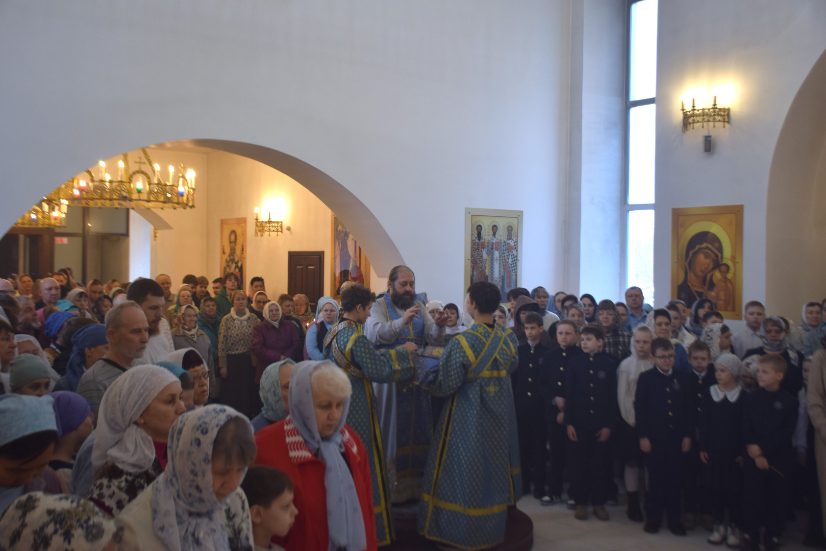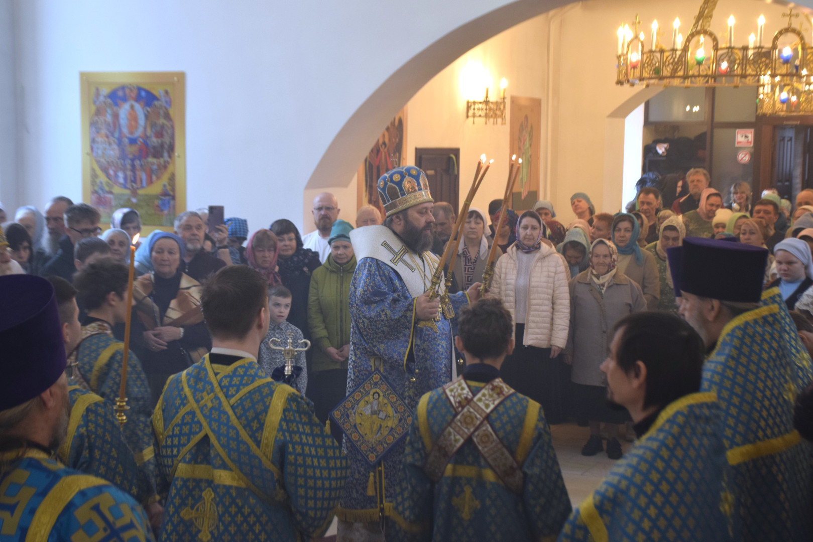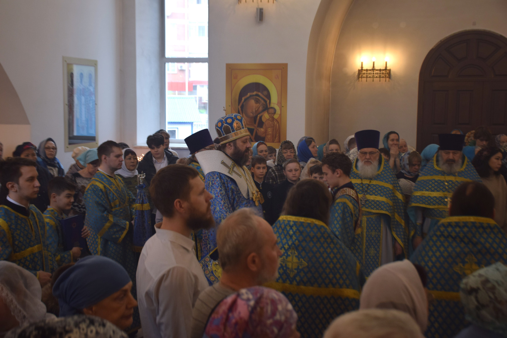 Архипастырю сослужили протоиереи Геннадий Фаст, Олег Попов, игумен Арсений (Соколов), священники Георгий Жаткин, Евгений Мотькин и Евгений Девятов. Диаконский чин составили протодиакон Андрей Ермаков, диаконы Сергий Симонов, Владислав Бойченко, Михаил Луцик и иеродиакон Нестор (Рыбин). Праздничные песнопения исполнил архиерейский хор под управлением Марии Ермаковой.