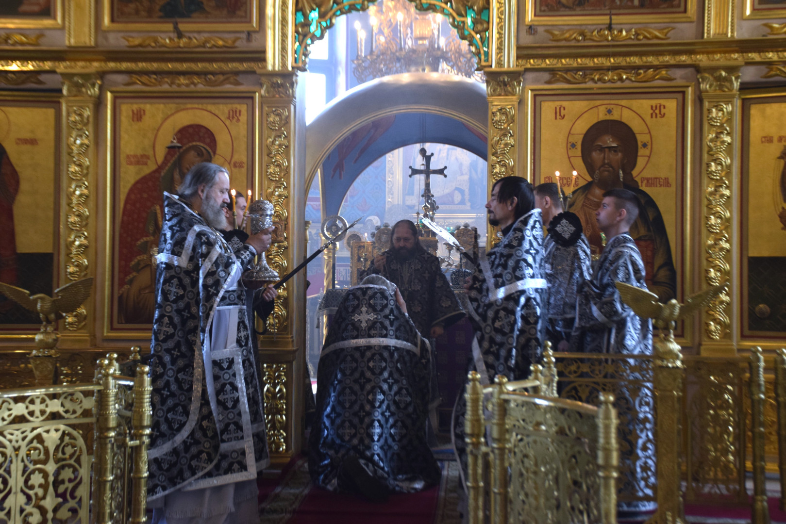 Владыке сослужили протоиереи Олег Попов, священник Георгий Жаткин и Евгений Девятов. Диаконский чин возглавил протодиакон Андрей Ермаков.
