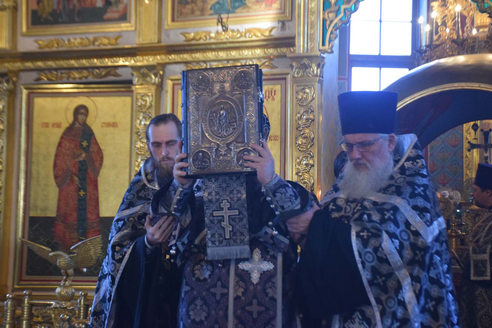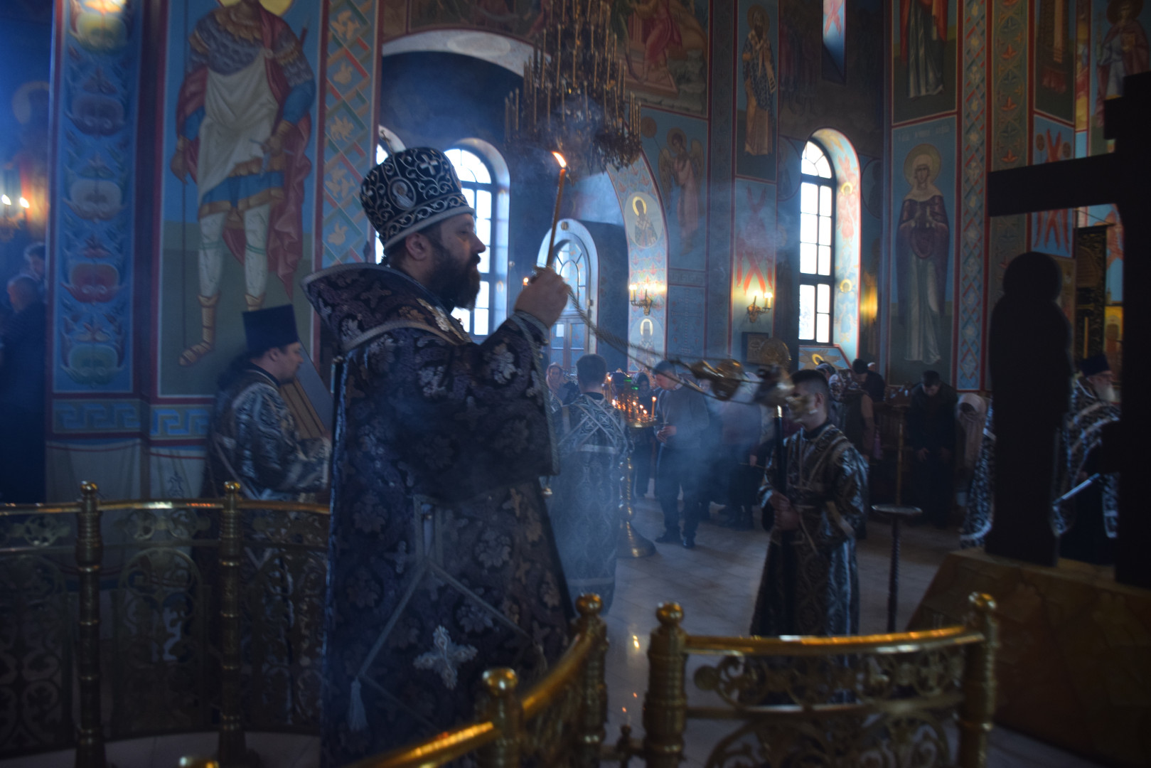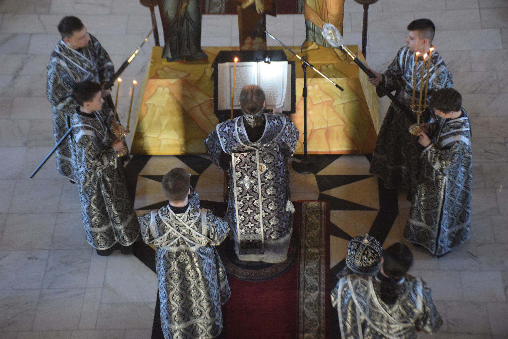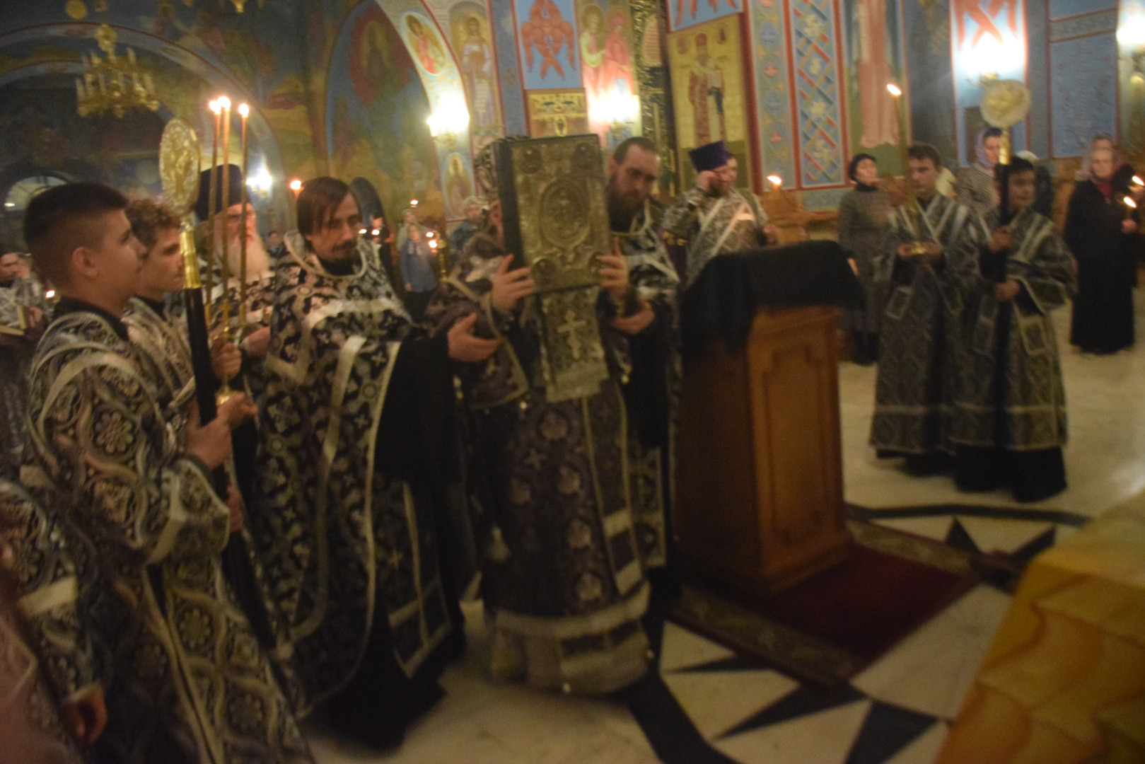 Вечером 9 апреля 2026 года, накануне Великой Пятницы, дня Распятия Господня, Преосвященный архиепископ Абаканский и Хакасский Ионафан в сослужении соборного духовенства и при молитвенном пении архиерейского хора совершил в Спасо-Преображенском кафедральном соборе Последование святых и спасительных Страстей Господа нашего Иисуса Христа — утреню с чтением двенадцати Страстных Евангелий.