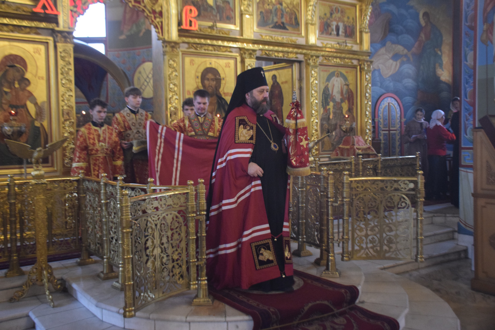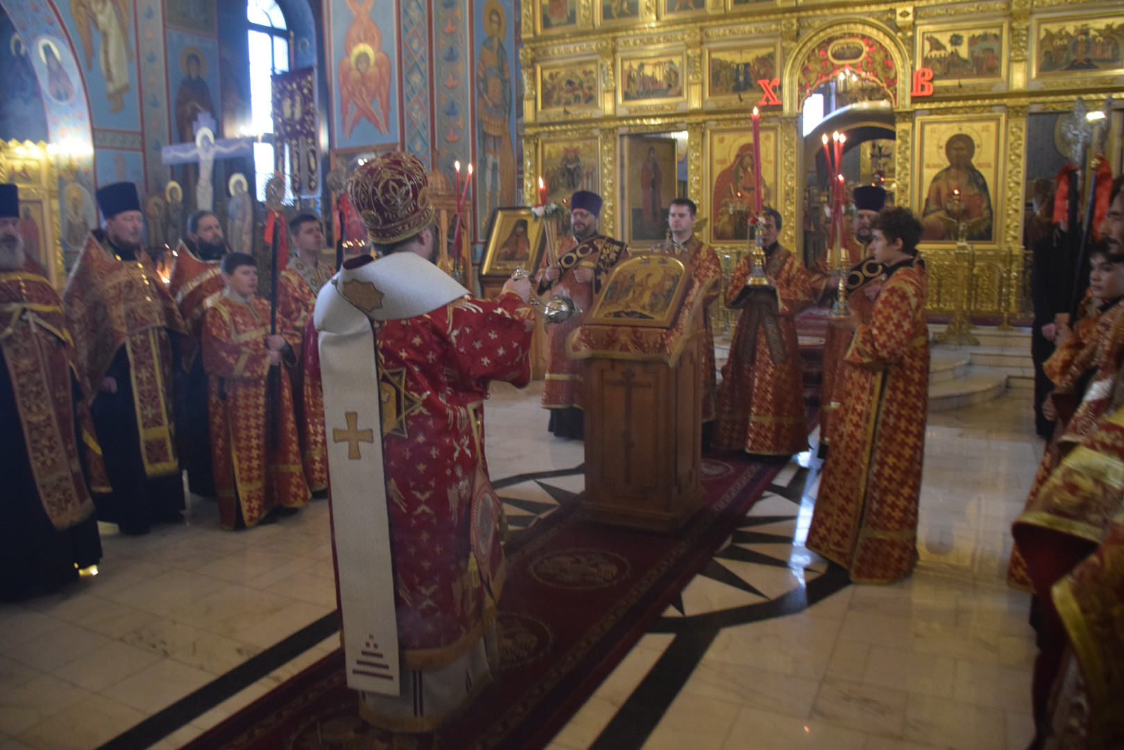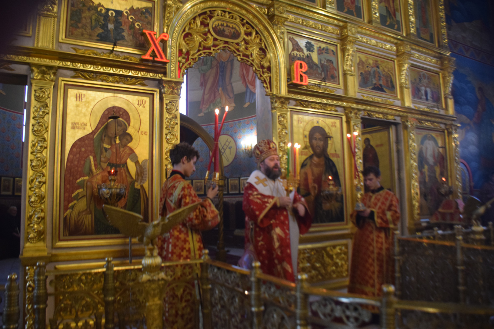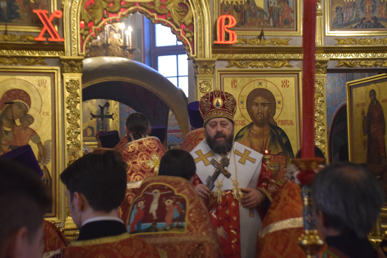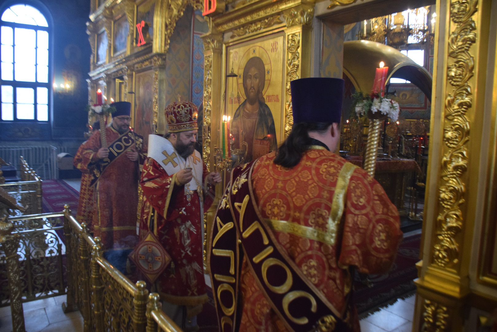 По входе архиерея и духовенства в алтарь было прочитано Евангелие, повествующее о явлении Господа ученикам в первый день Воскресения.