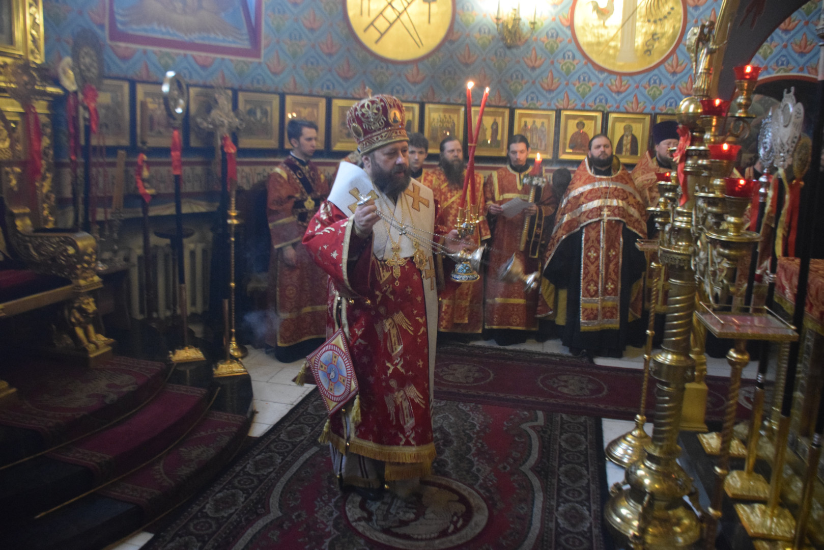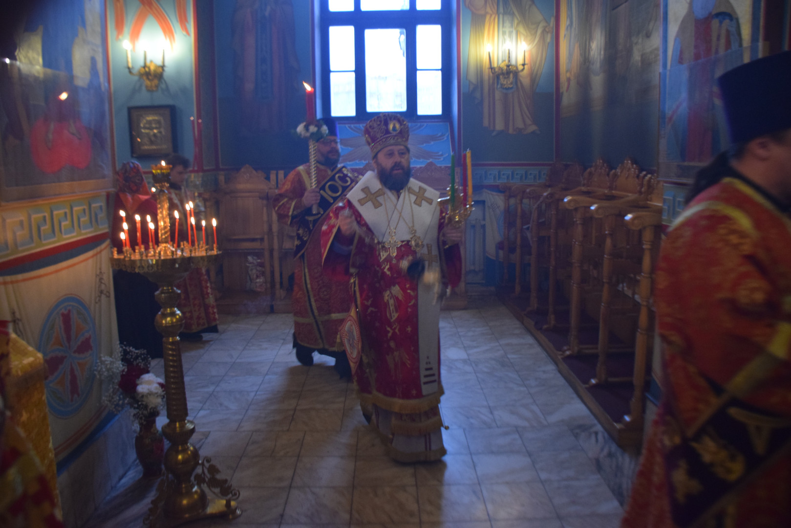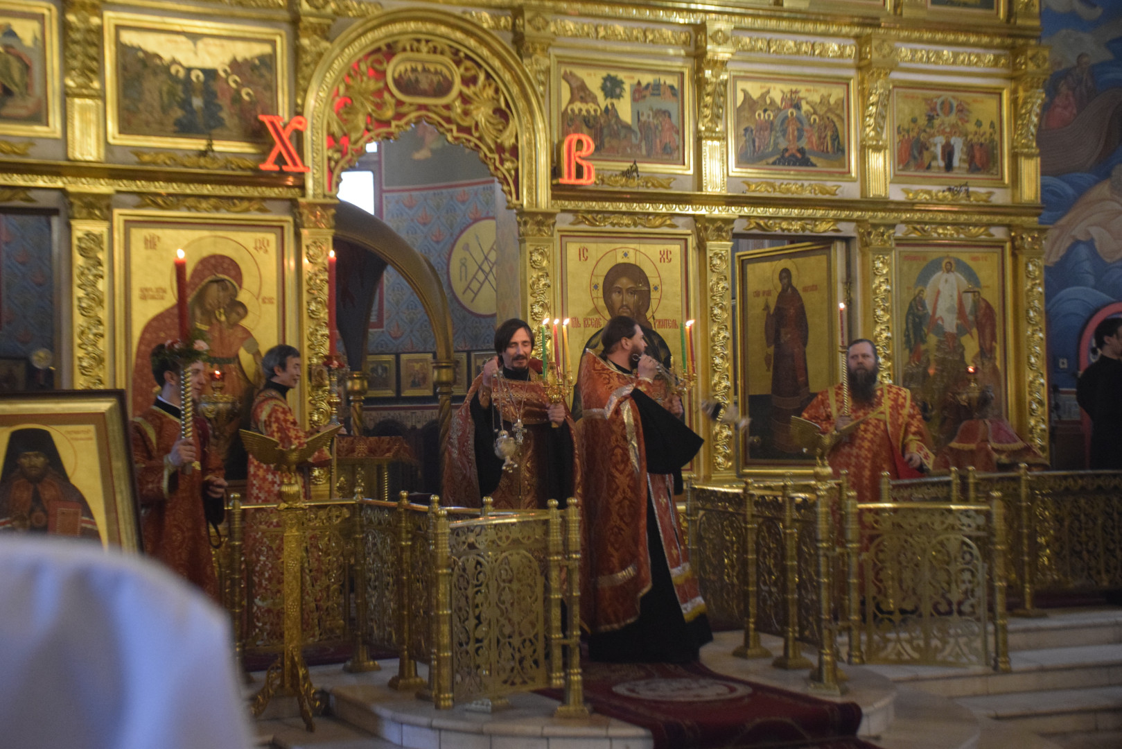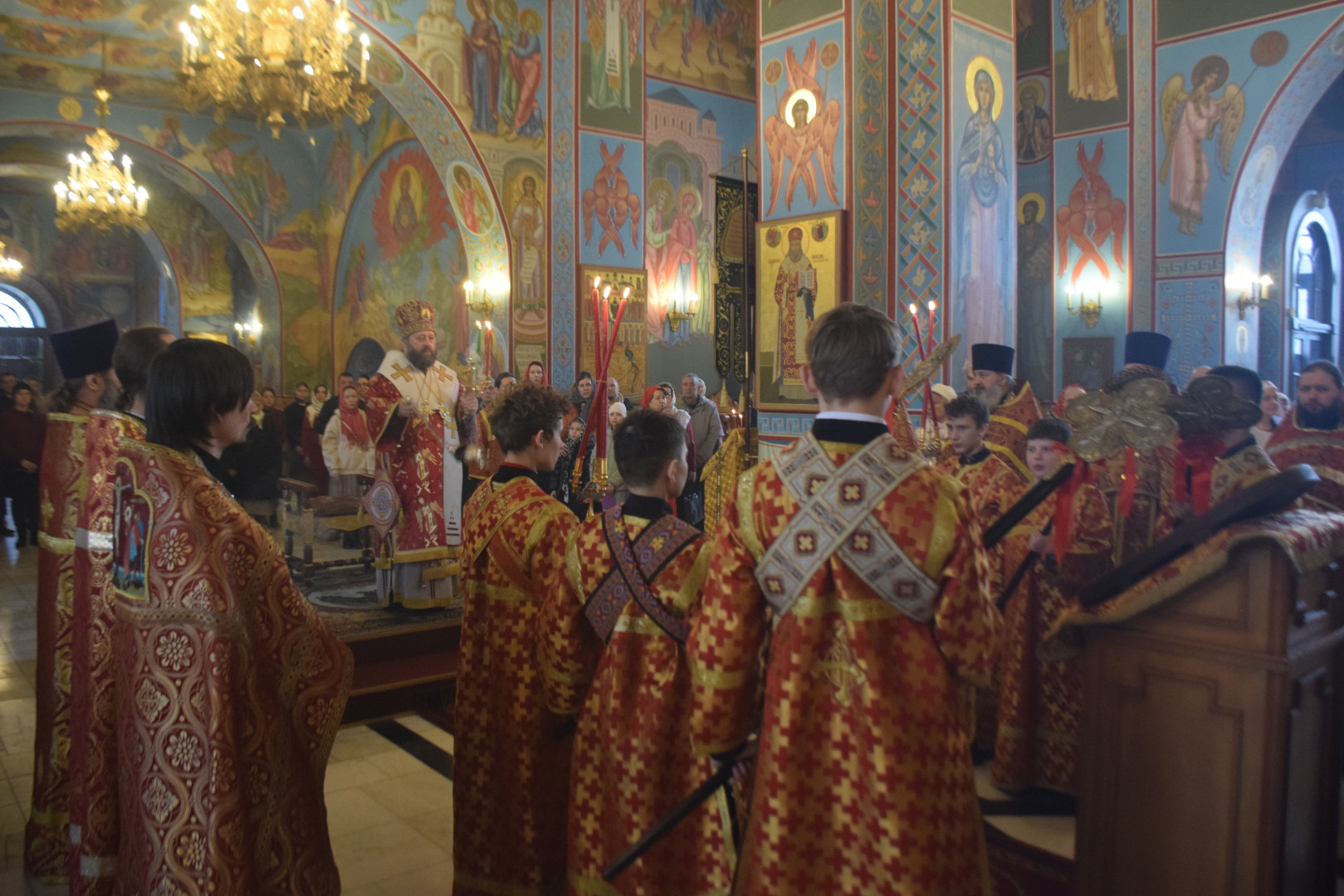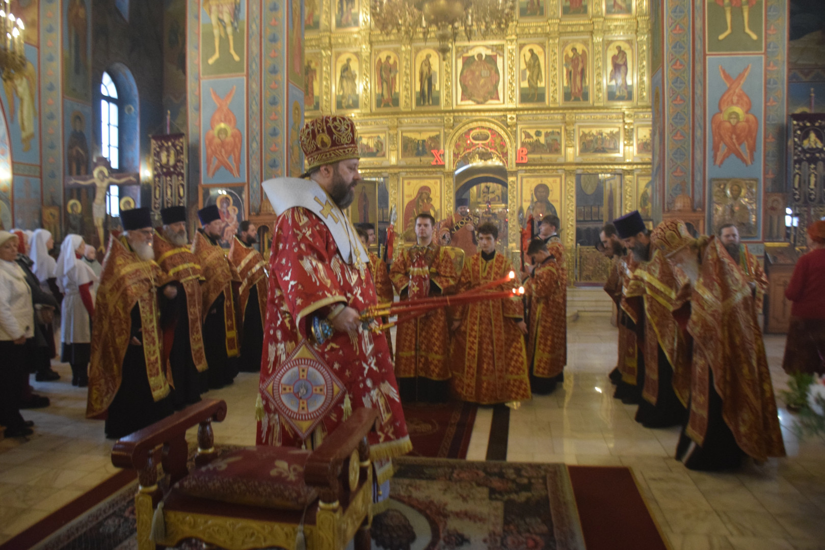 По входе архиерея и духовенства в алтарь было прочитано Евангелие, повествующее о явлении Господа ученикам в первый день Воскресения.