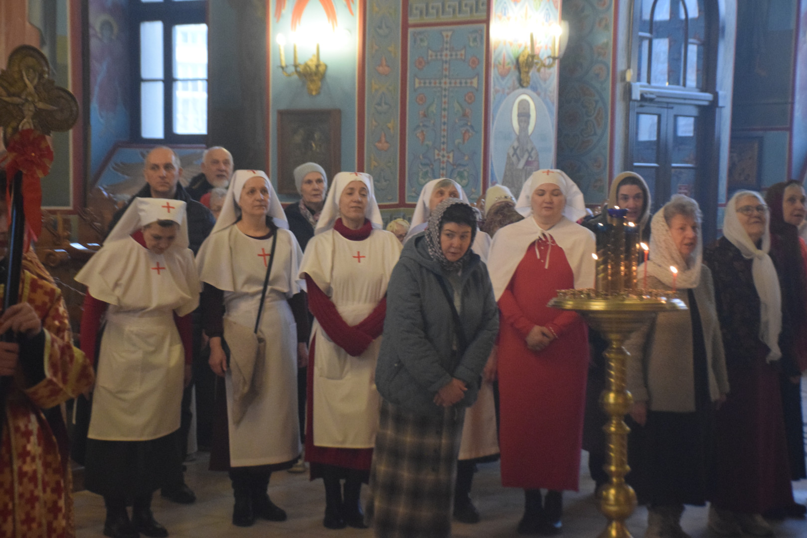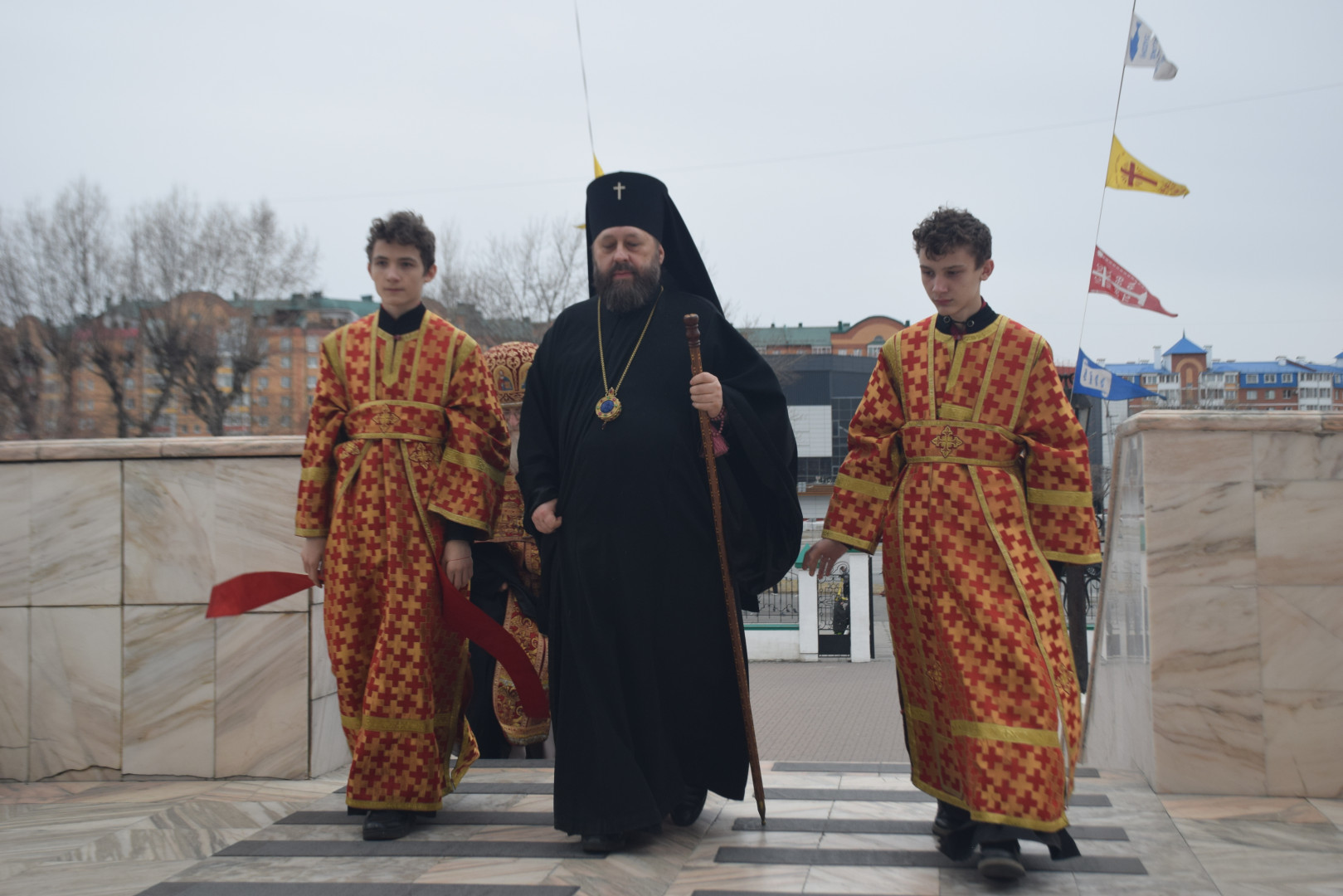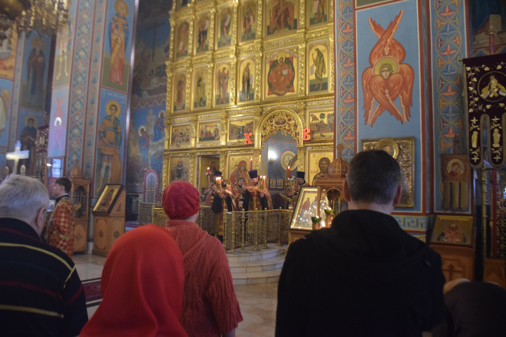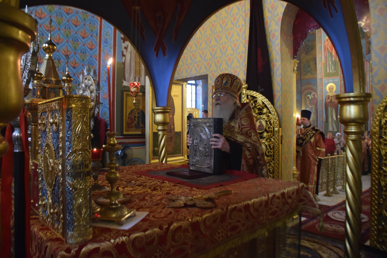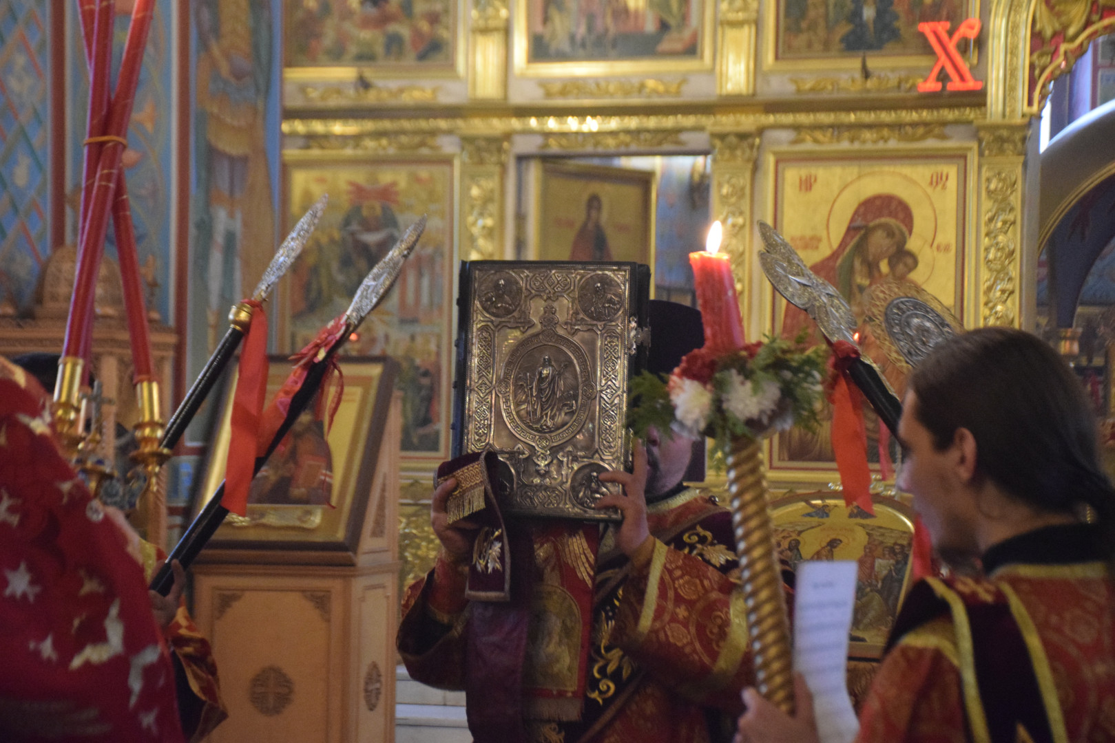 По входе архиерея и духовенства в алтарь было прочитано Евангелие, повествующее о явлении Господа ученикам в первый день Воскресения.