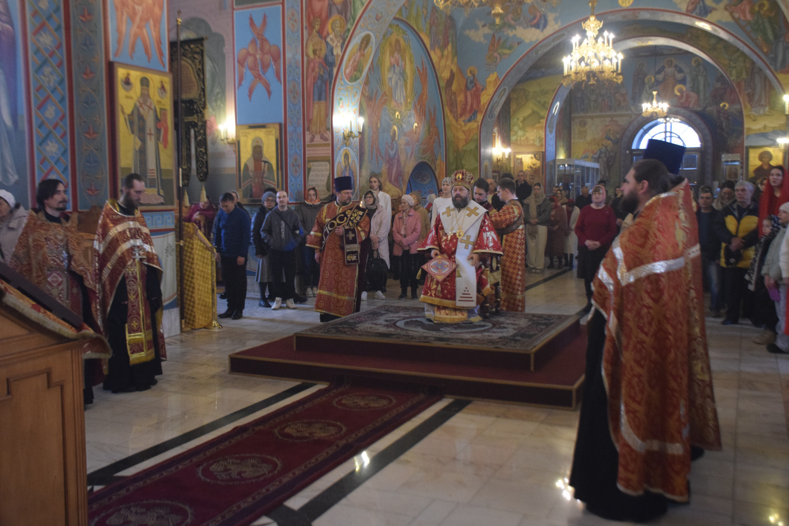 Вечером 12 апреля 2026 года, в день Праздника Пасхи — Светлого Христова Воскресения, Преосвященный архиепископ Абаканский и Хакасский Ионафан совершил вечерню Святой и Великой Недели Пасхи и утреню Светлого Понедельника в Спасо-Преображенском кафедральном соборе в г. Абакане.