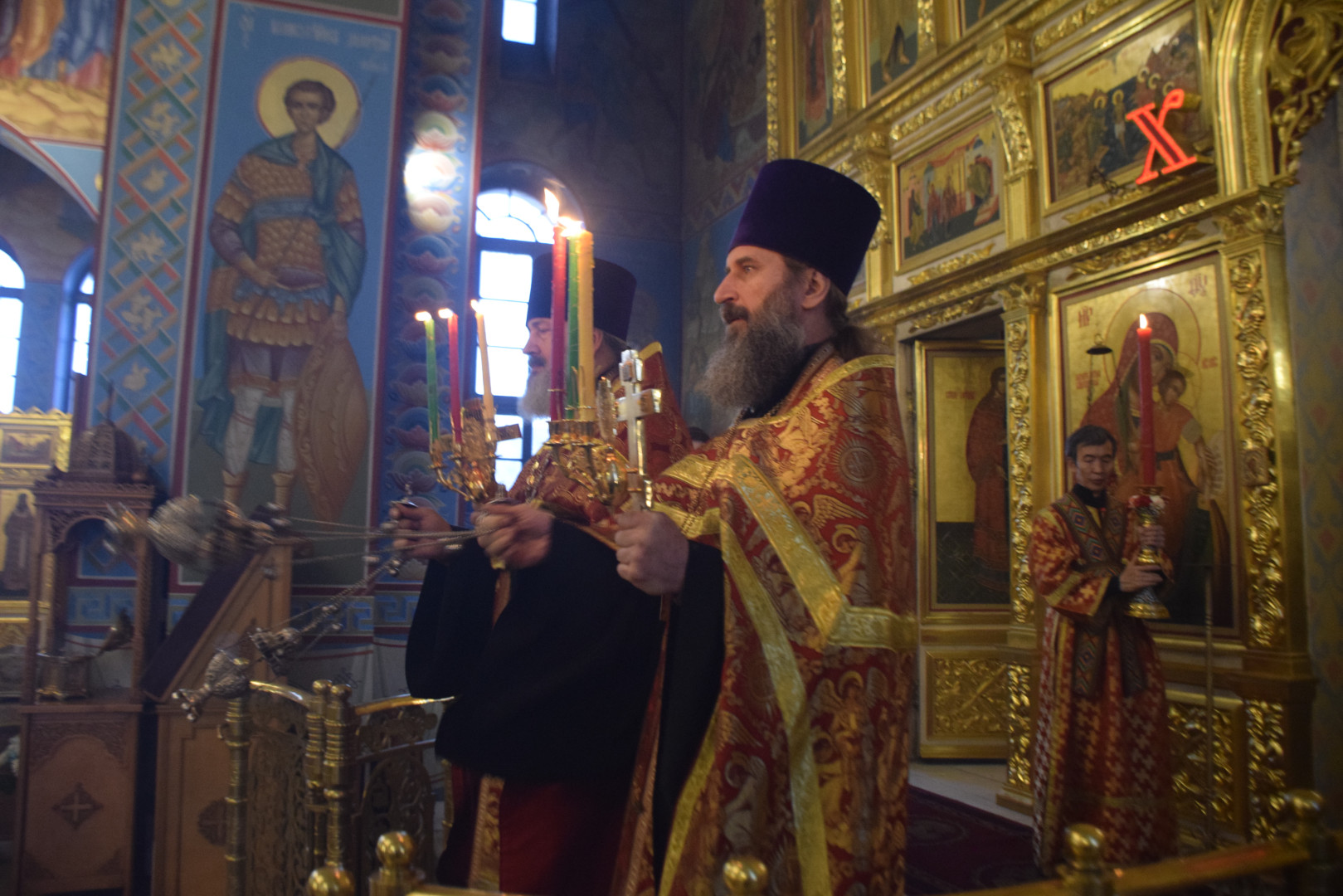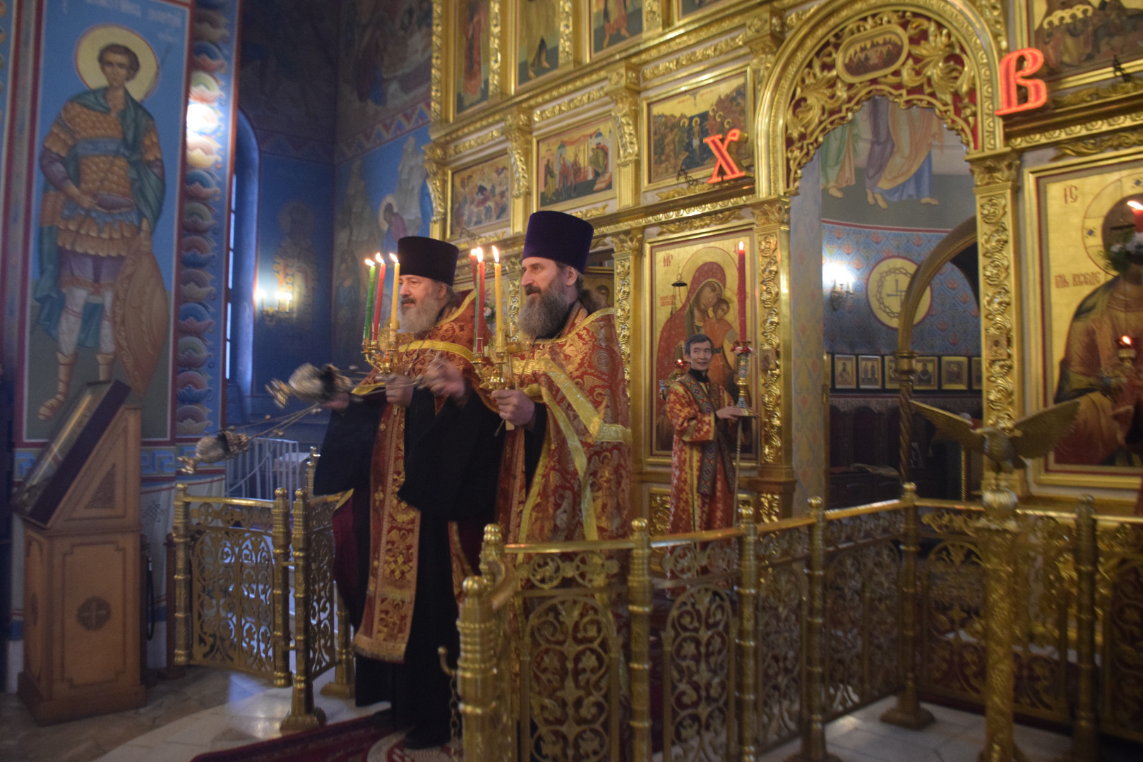 Владыке сослужили клирики Градо-Абаканского благочиния.