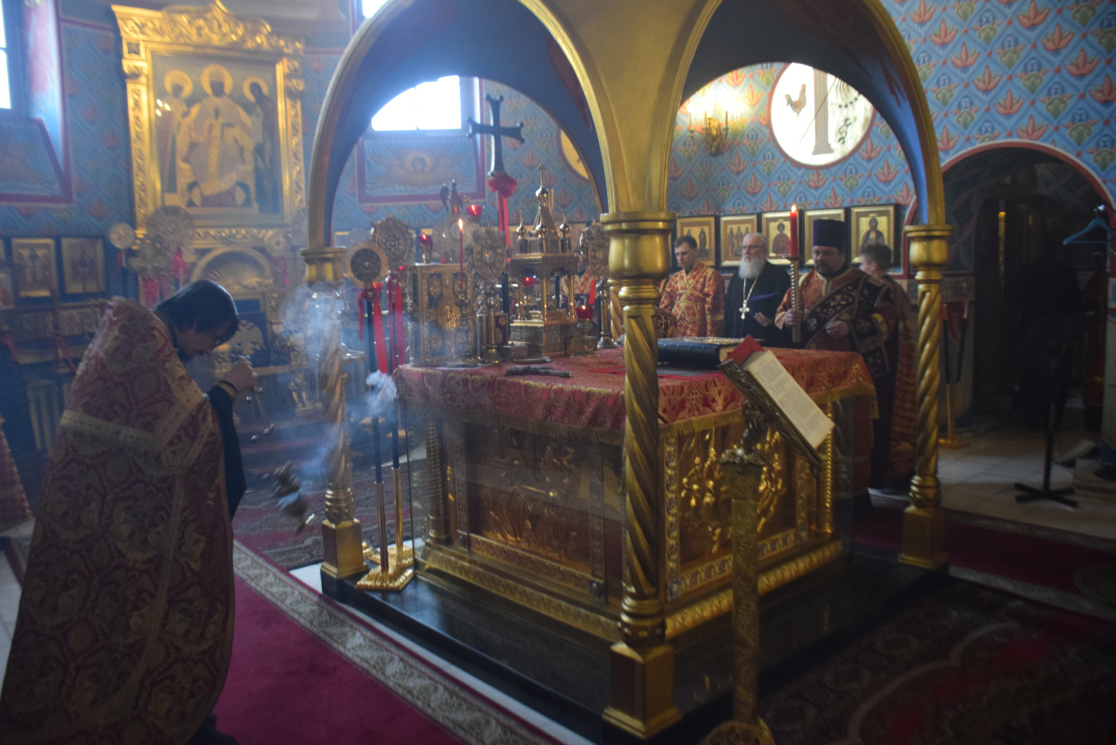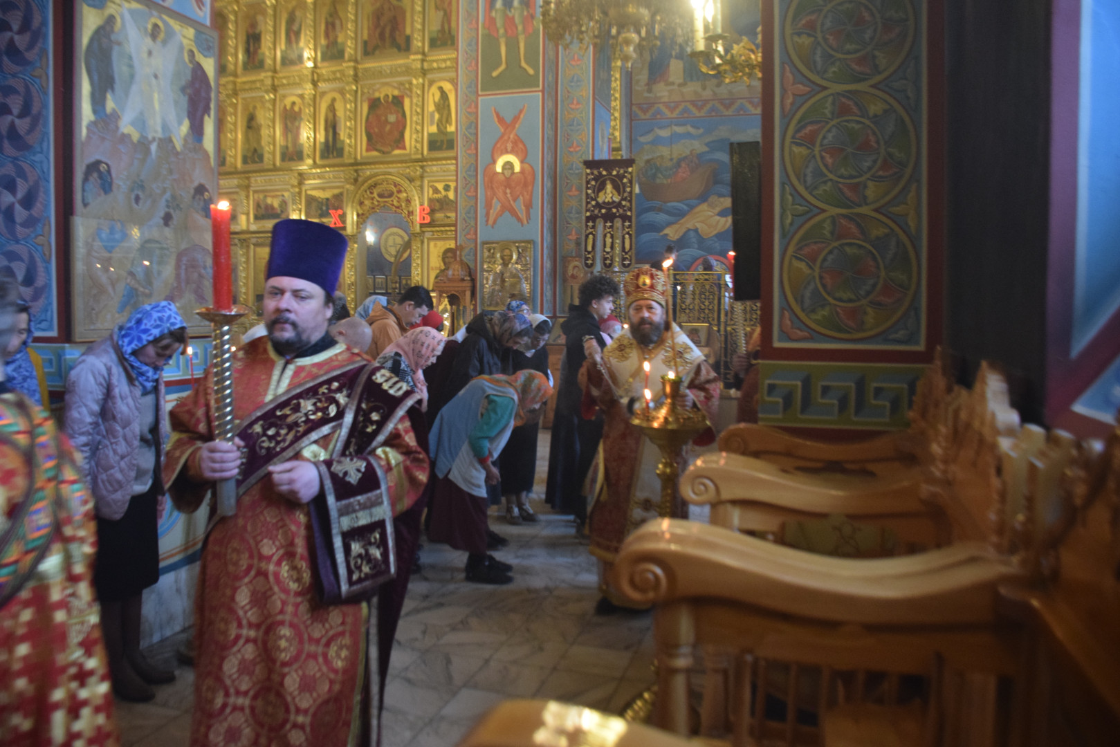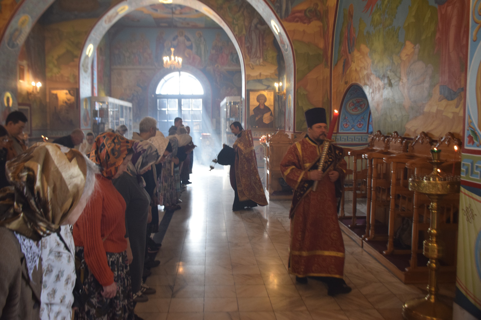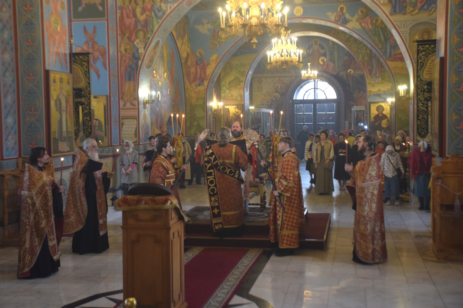 25 апреля 2026 года, накануне Недели 3-й по Пасхе, дня памяти святых жен мироносиц, праведного Иосифа Аримафейского и праведного Никодима, Преосвященный архиепископ Абаканский и Хакасский Ионафан в сослужении соборных клириков совершил Всенощное бдение с литией и освящением хлебов в Спасо-Преображенском кафедральном соборе епархиальной столицы.