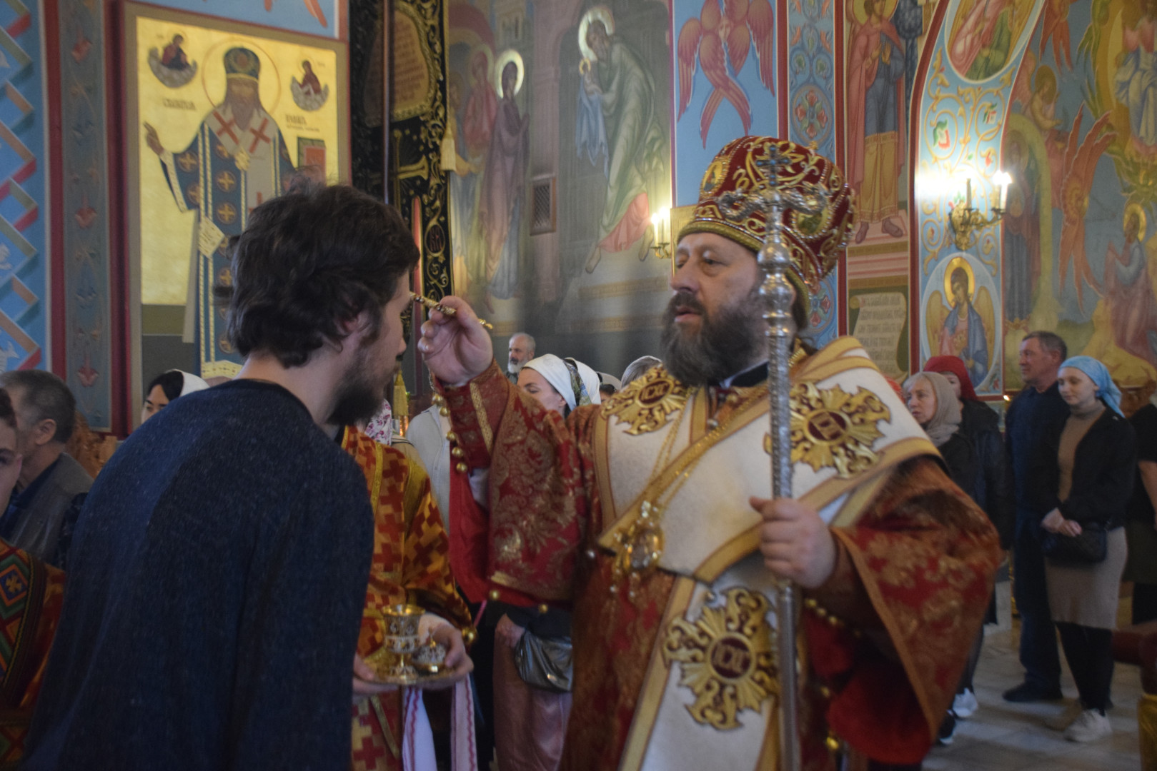 После чтения воскресного Евангелия архипастырь помазывал прихожан освященным елеем. Число подошедших к елеопомазанию составило 137 человек.