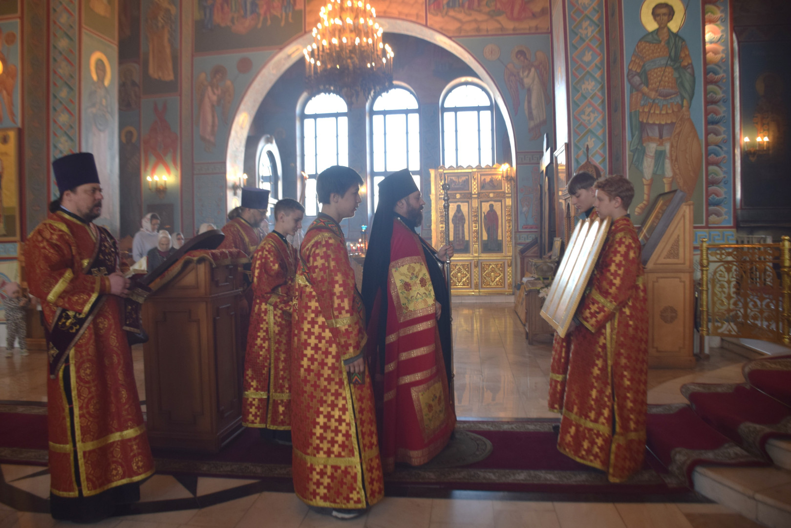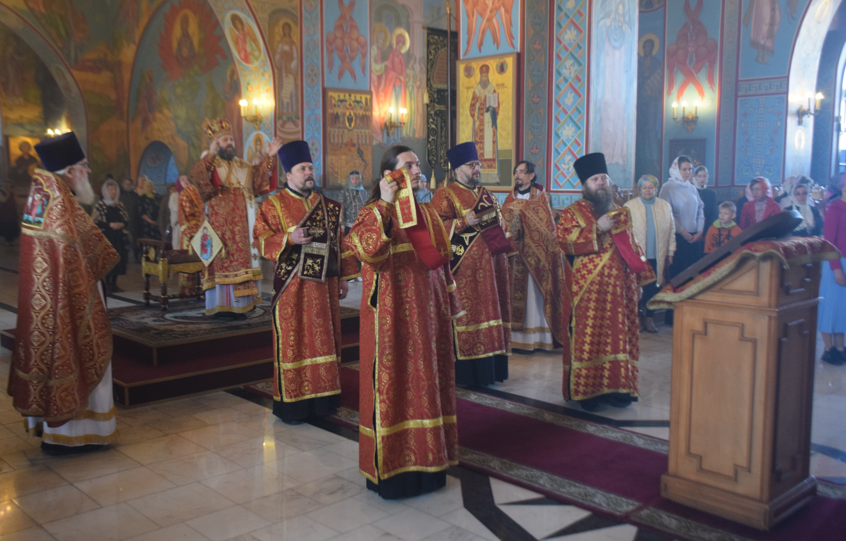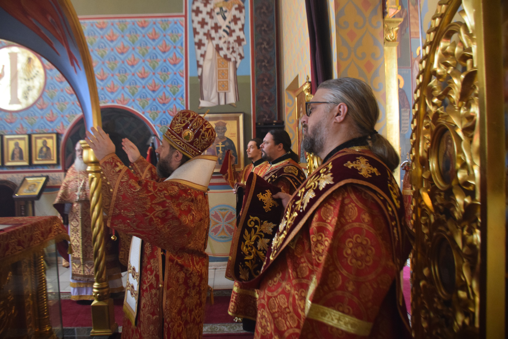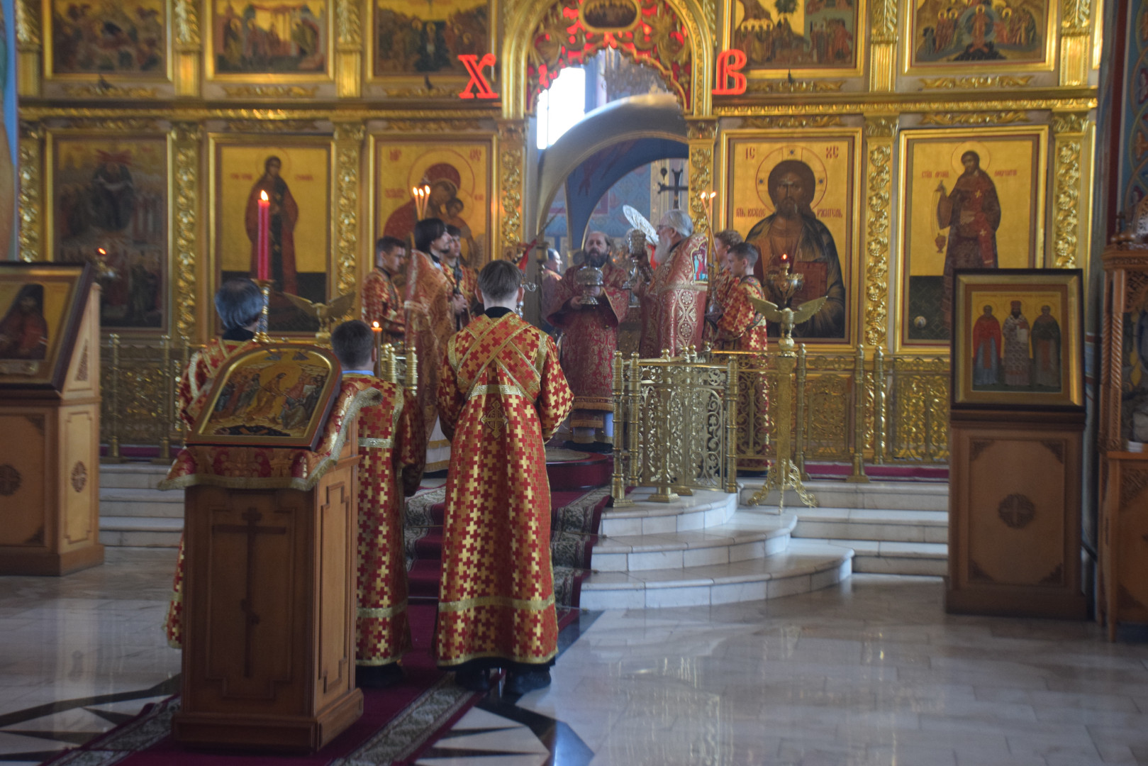 Архипастырю сослужили протоиерей Олег Попов и священник Евгений Девятов. Диаконский чин составили протодиакон Андрей Ермаков, диаконы Сергий Симонов, Владисла Бойченко и иеродиакон Нестор (Рыбин). За Литургией пел архиерейский хор под управлением Марии Ермаковой.