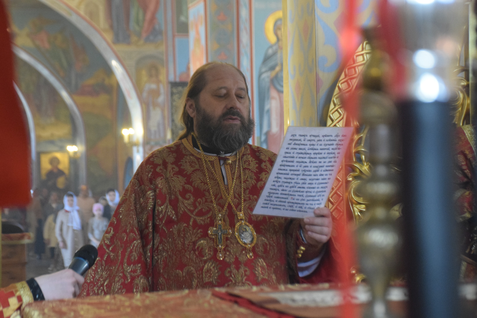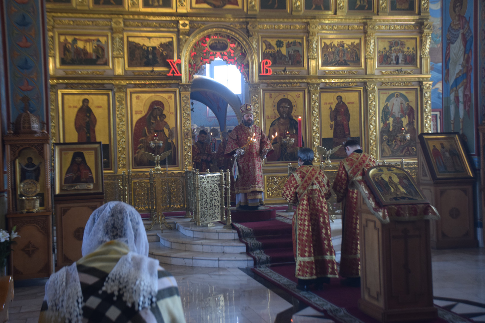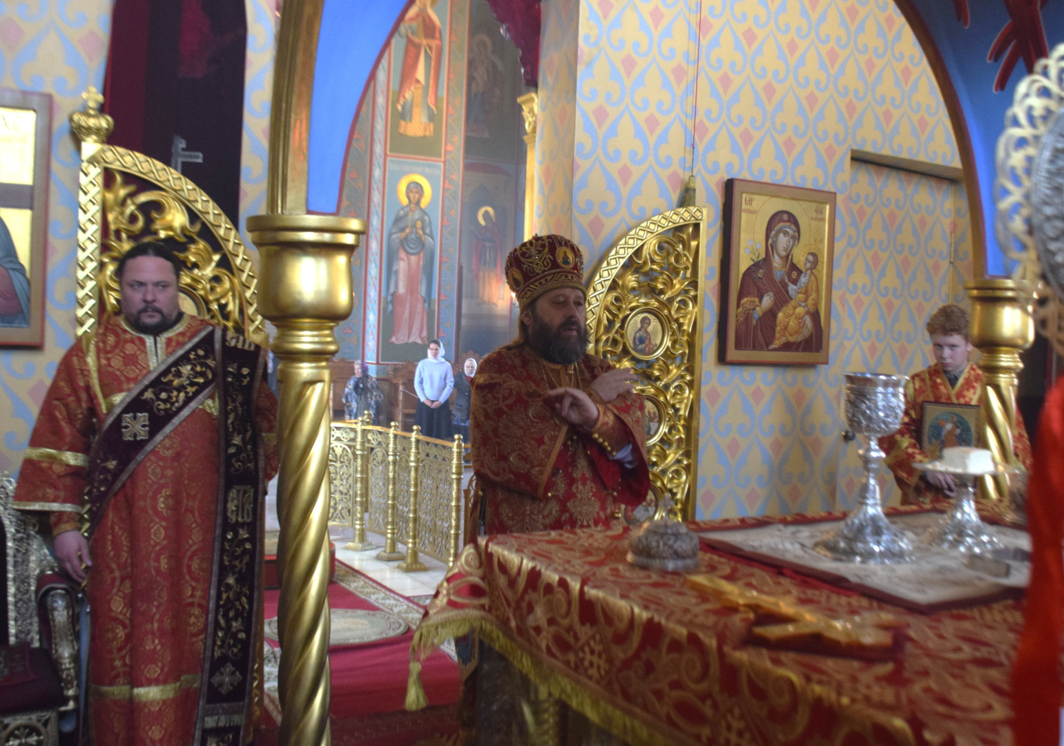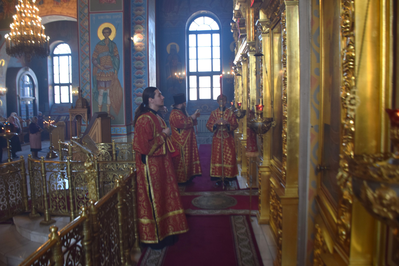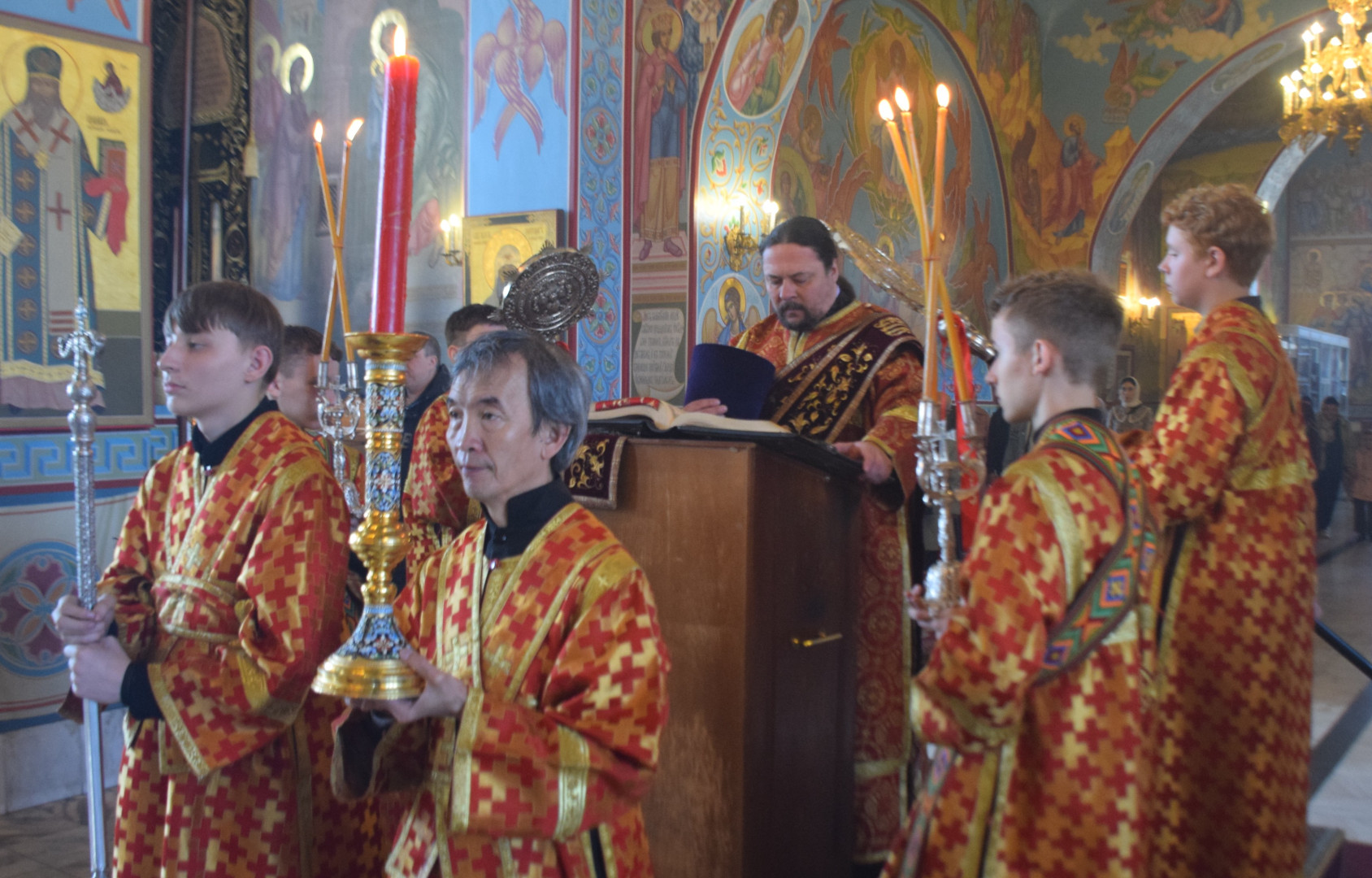 Архипастырю сослужили протоиерей Олег Попов и священник Евгений Девятов. Диаконский чин составили протодиакон Андрей Ермаков, диаконы Сергий Симонов, Владисла Бойченко и иеродиакон Нестор (Рыбин). За Литургией пел архиерейский хор под управлением Марии Ермаковой.