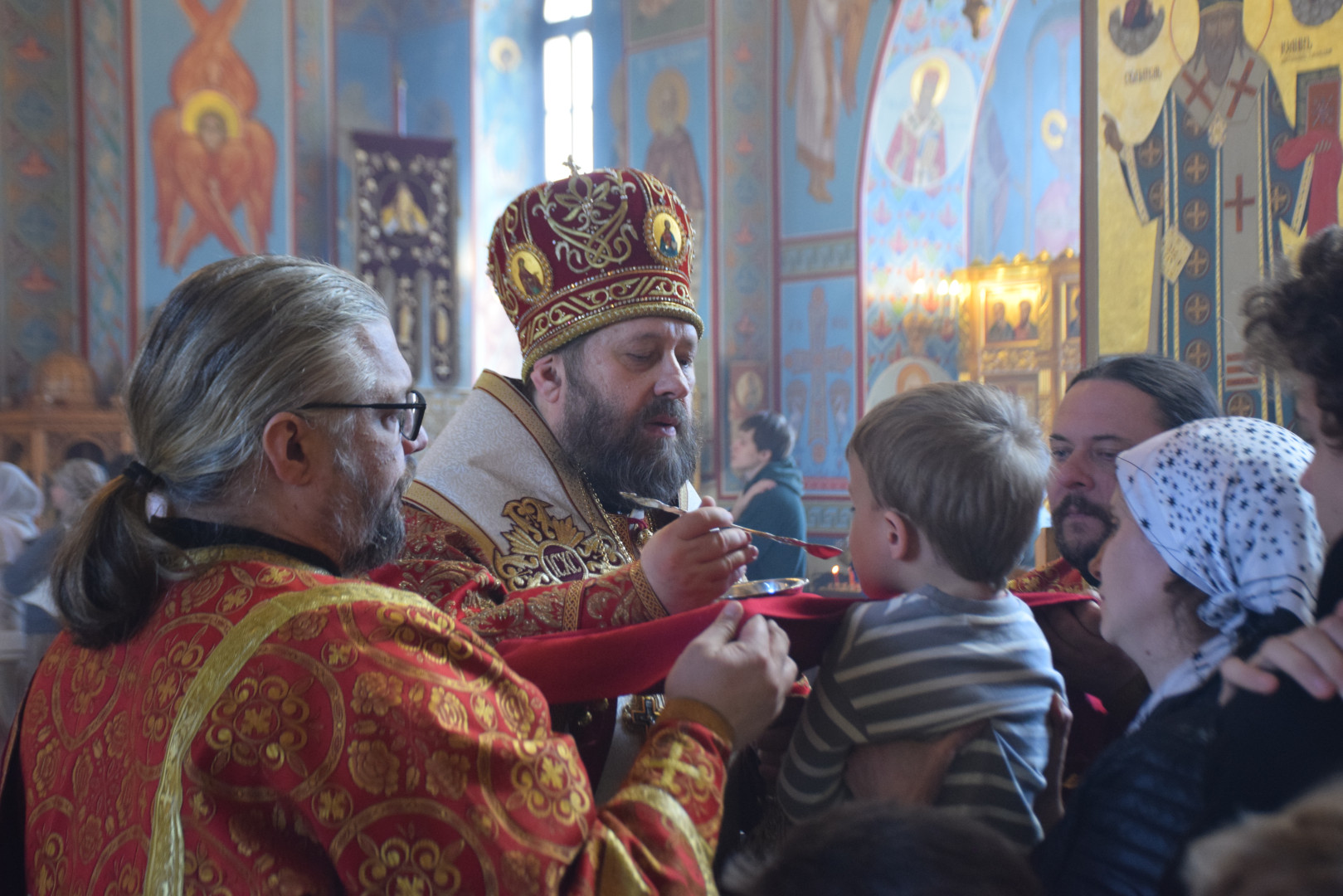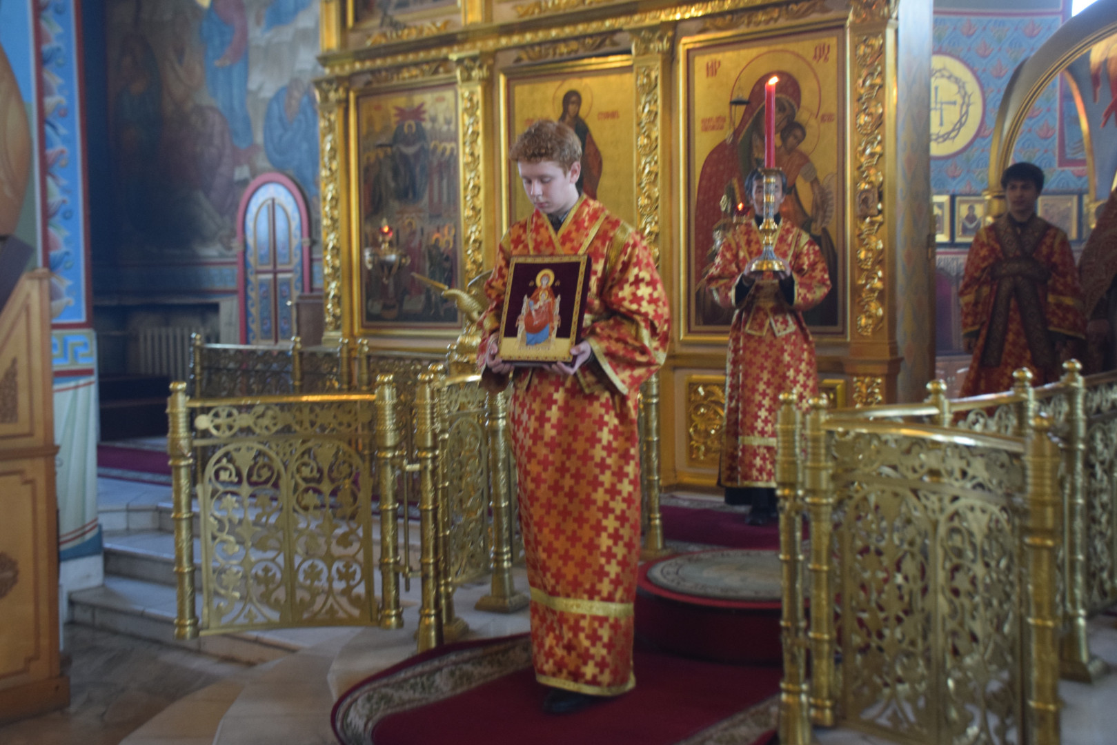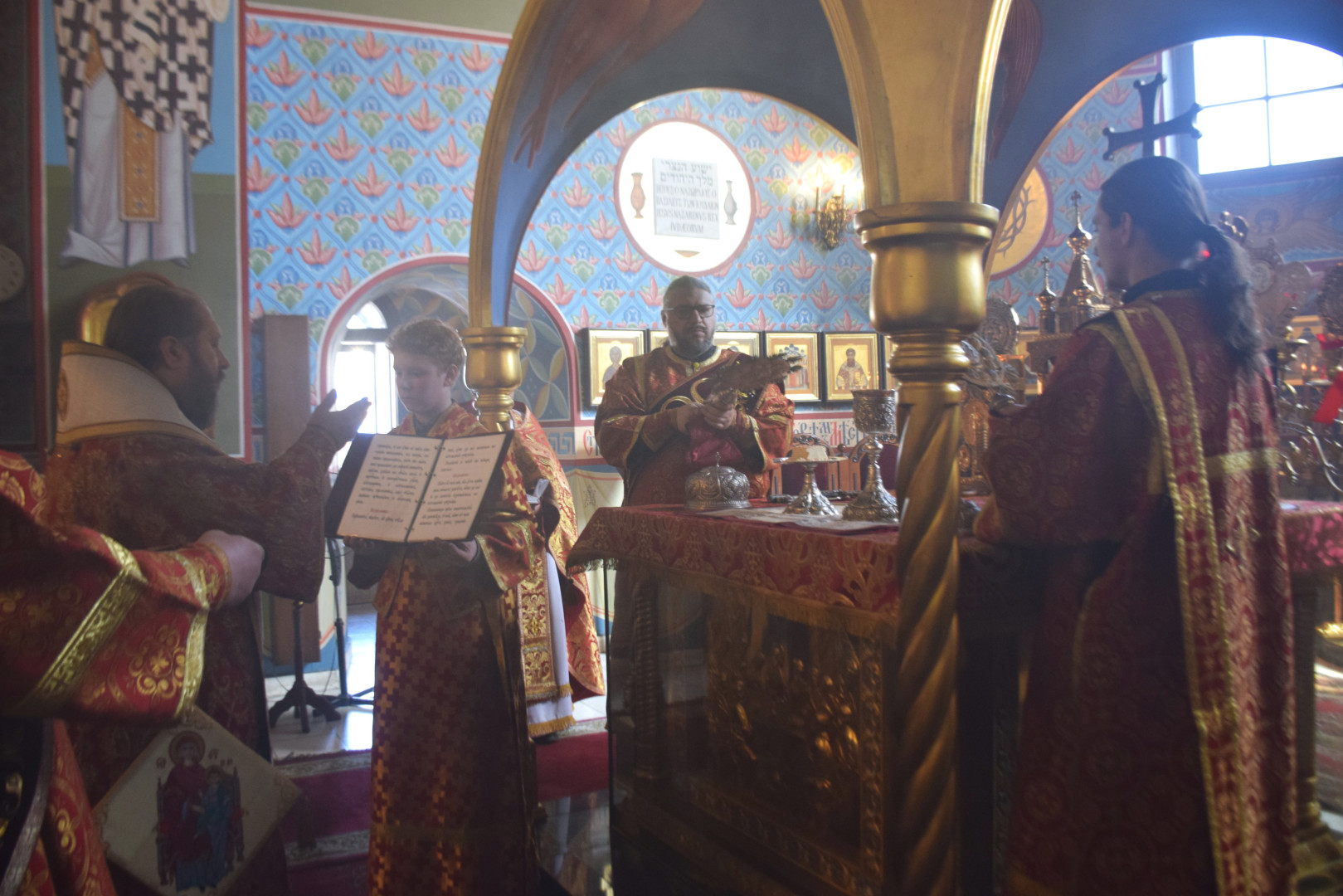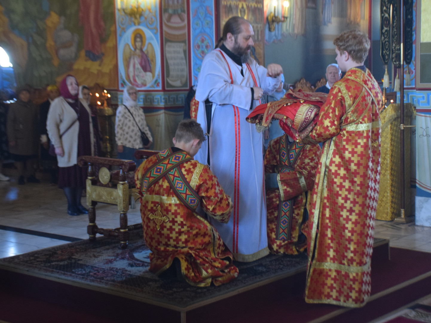 Архипастырю сослужили протоиерей Олег Попов и священник Евгений Девятов. Диаконский чин составили протодиакон Андрей Ермаков, диаконы Сергий Симонов, Владисла Бойченко и иеродиакон Нестор (Рыбин). За Литургией пел архиерейский хор под управлением Марии Ермаковой.
